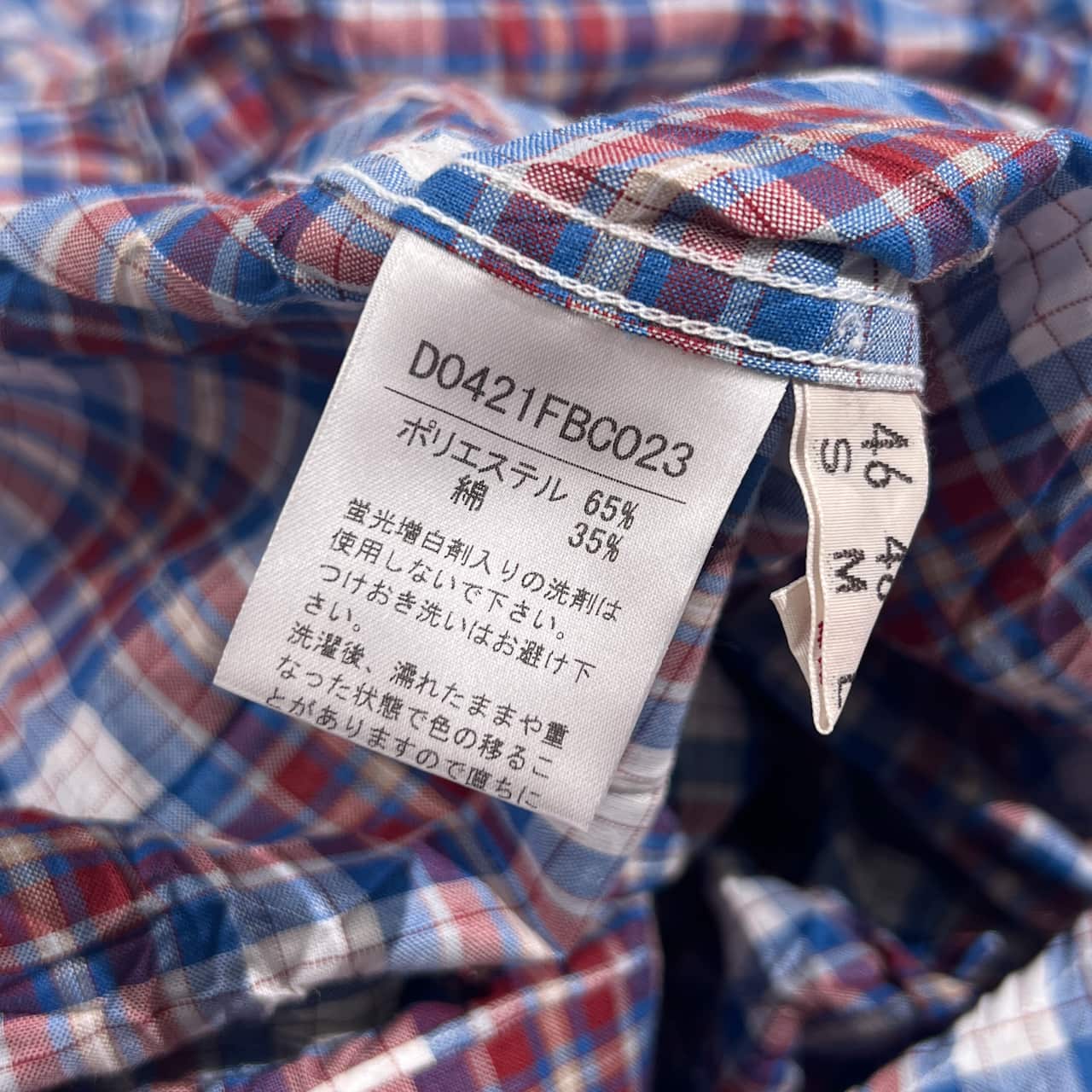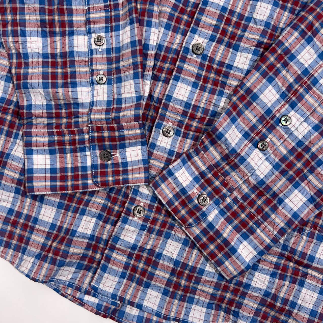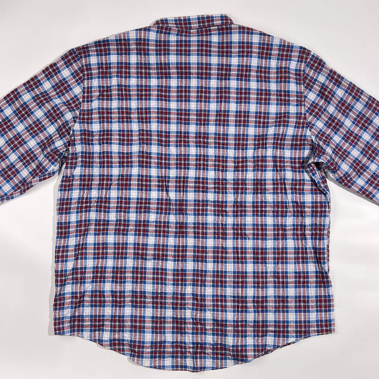 Papas パパス シワ加工 チェック柄 長袖 シャツ LL/レッド×ブルー系 メンズ