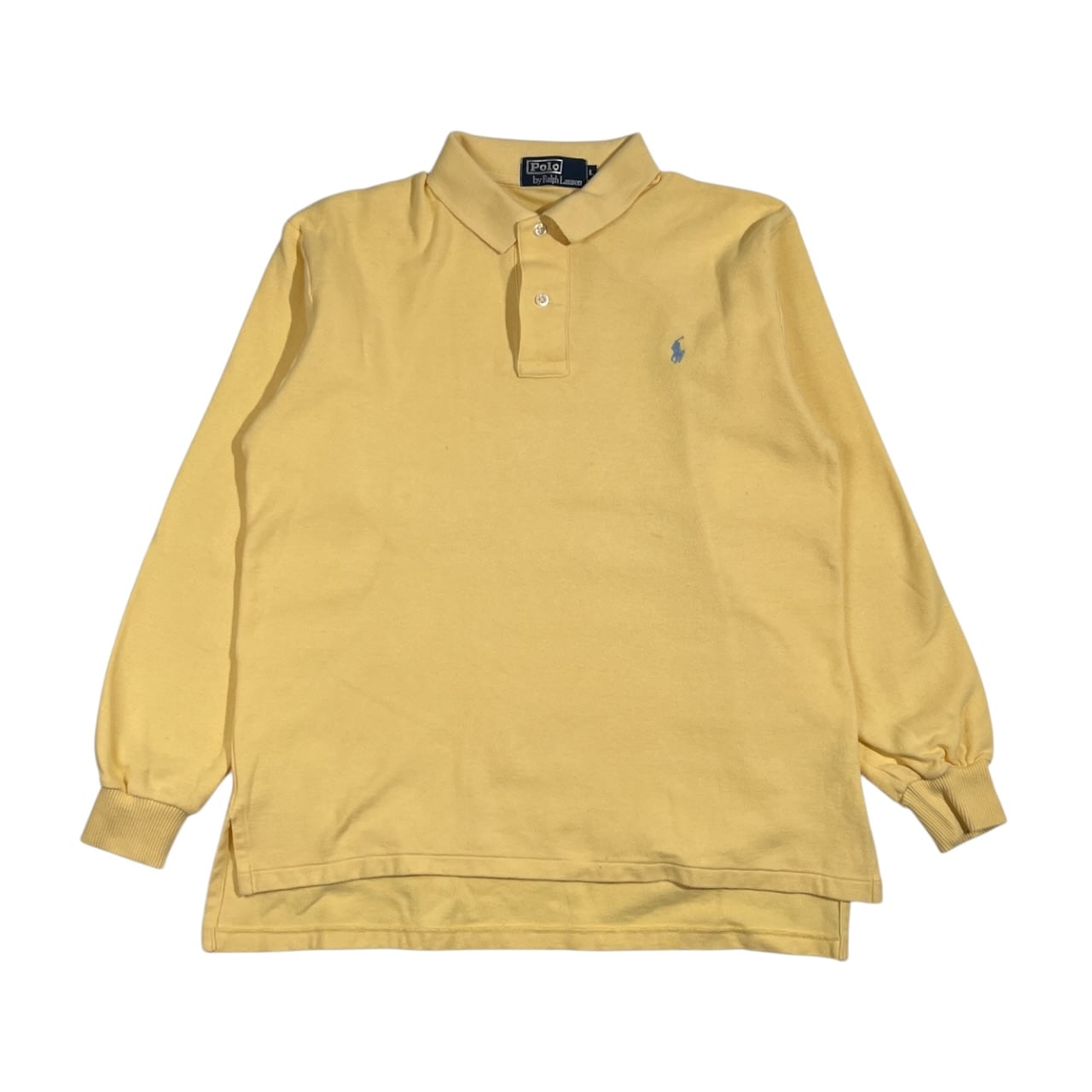 90s Polo by Ralph Lauren ラルフローレン ワンポイント 鹿子 長袖 ポロシャツ L/イエロー系 メンズ ビンテージ