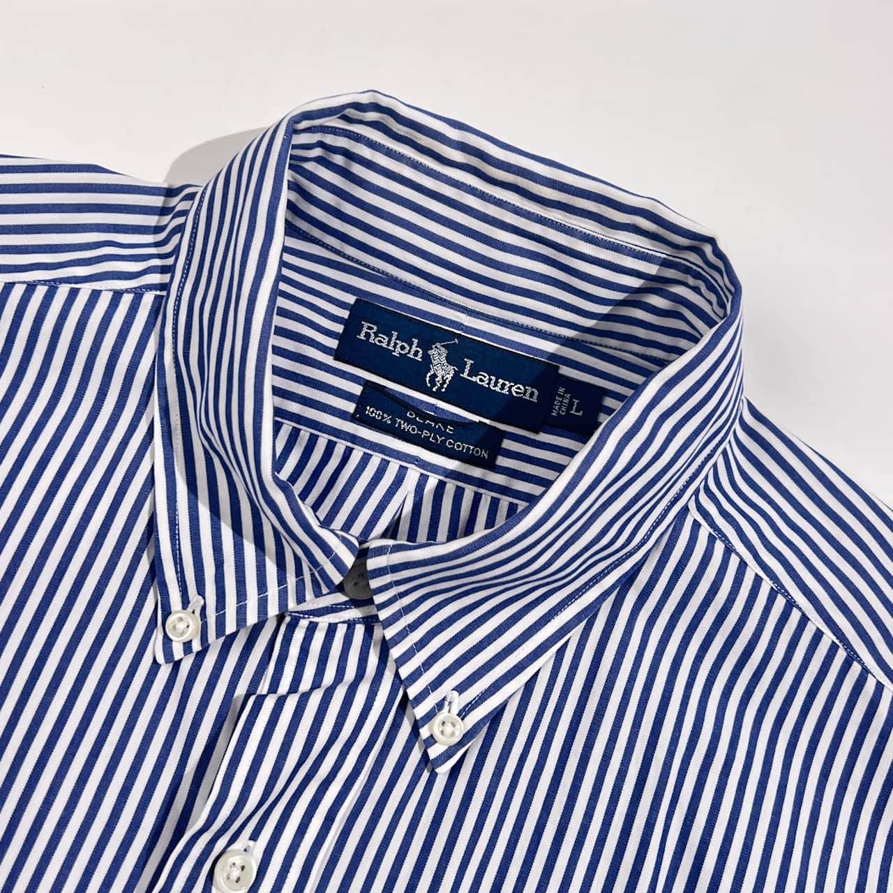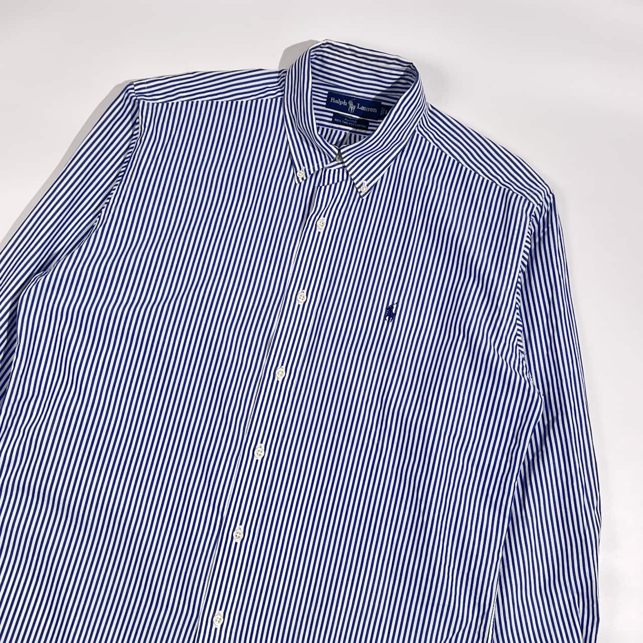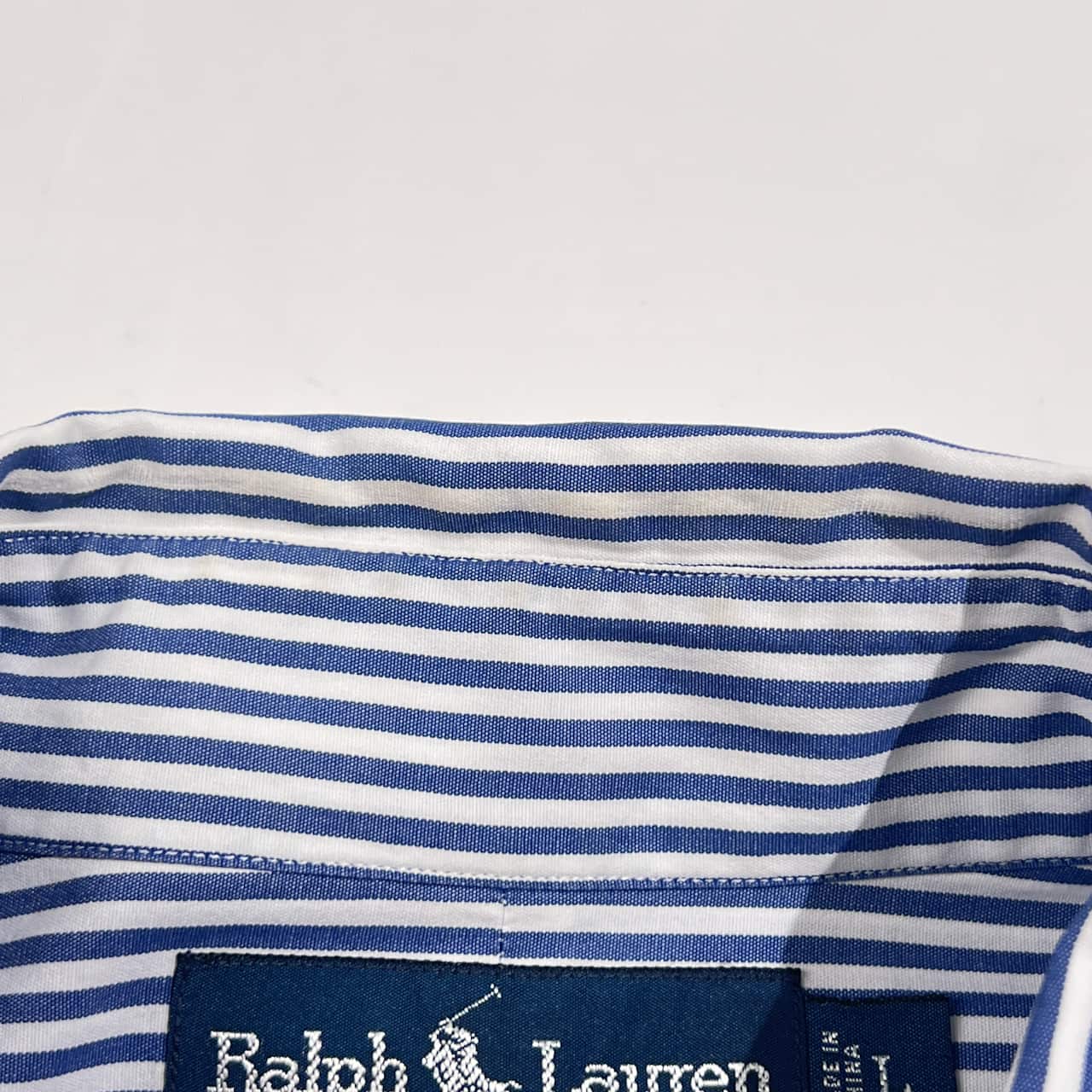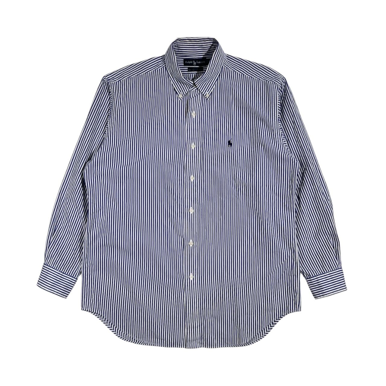 90s Ralph Lauren ラルフローレン BLAKE TWO-PLY COTTON ストライプ BD ボタンダウン 長袖シャツ L/ブルー×ホワイト系 メンズ ビンテージ
