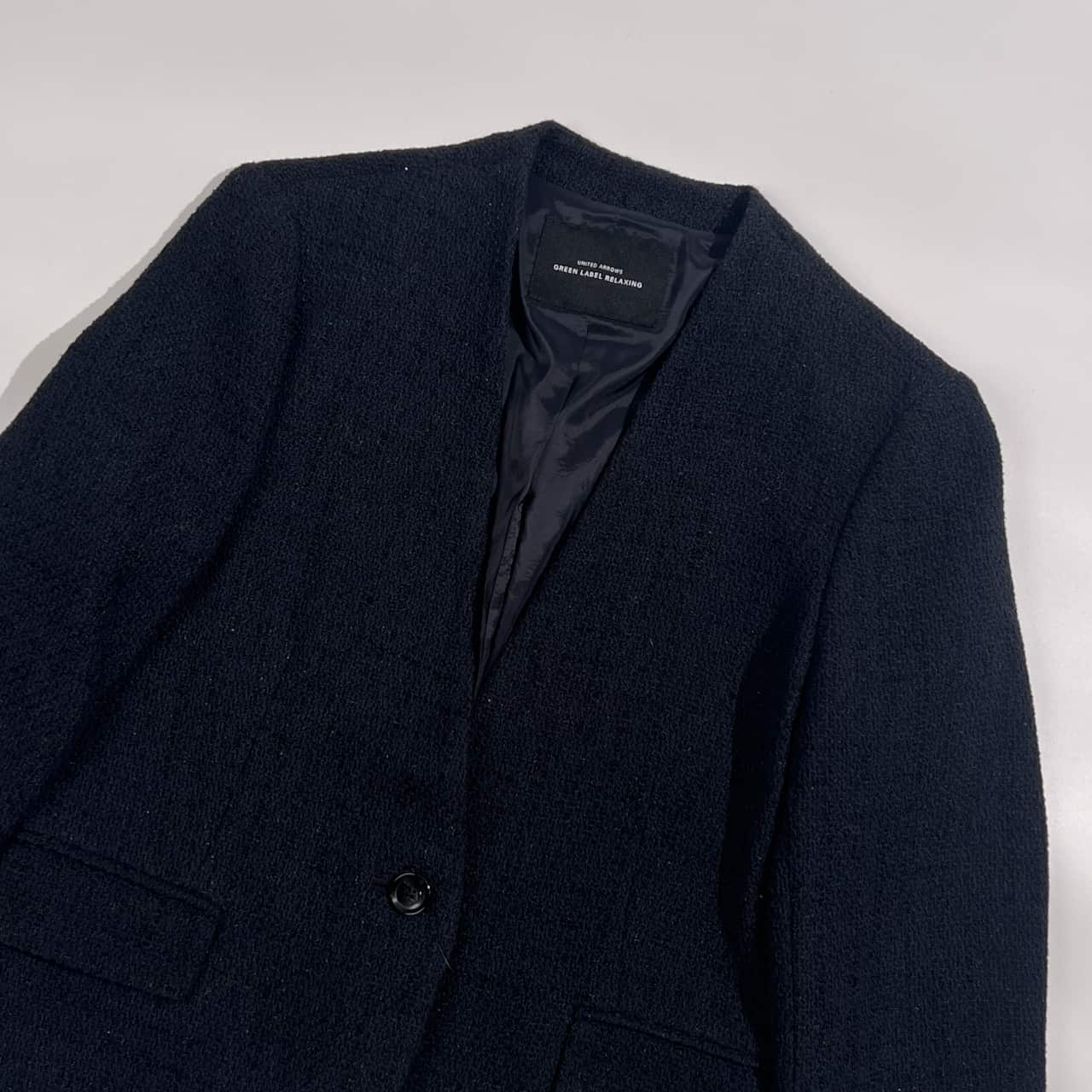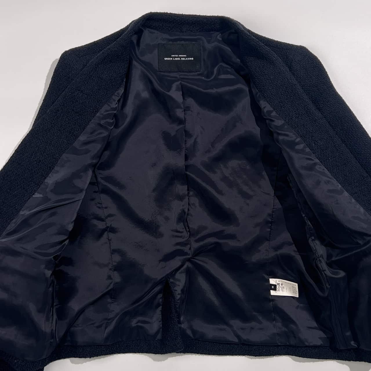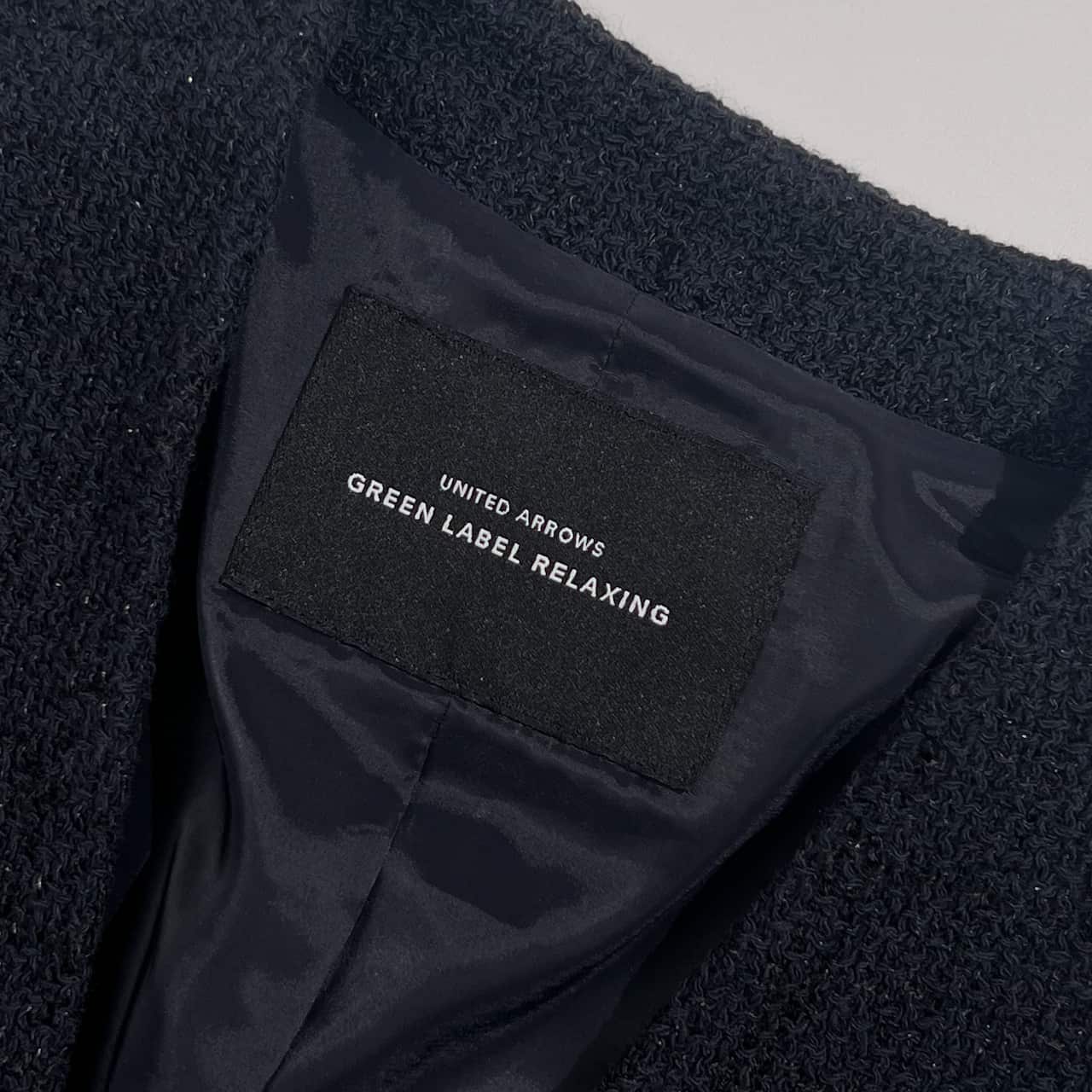green label relaxing グリーンレーベル ツイード風 ノーカラー ジャケット 40/ネイビー系 レディース