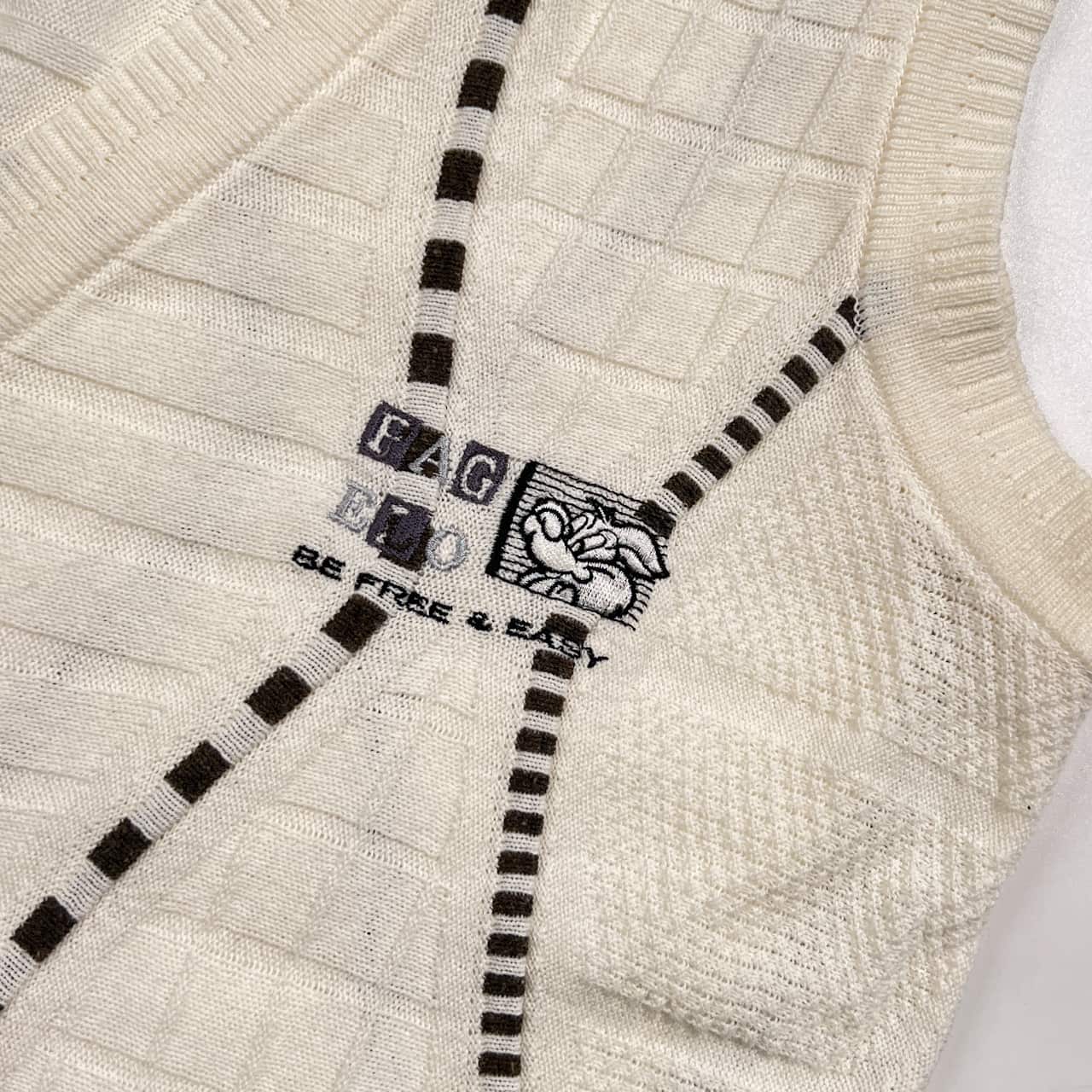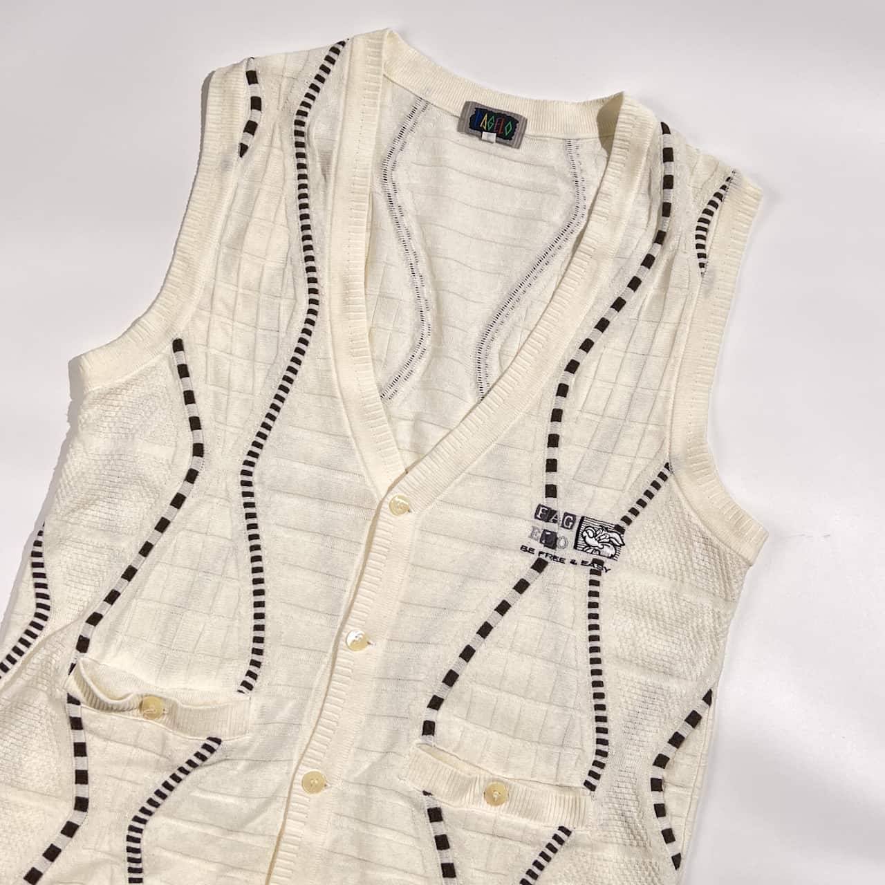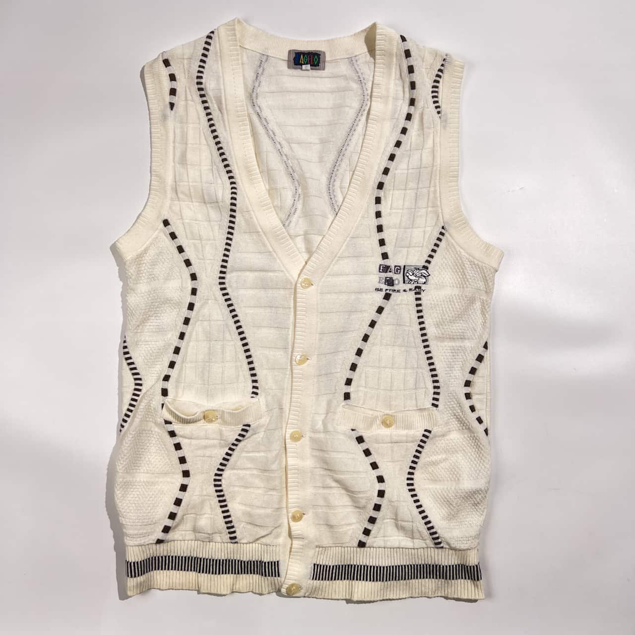 PAGELO パジェロ デザイン Vネック 前開き ニット ベスト L/ホワイト系 メンズ ゴルフ