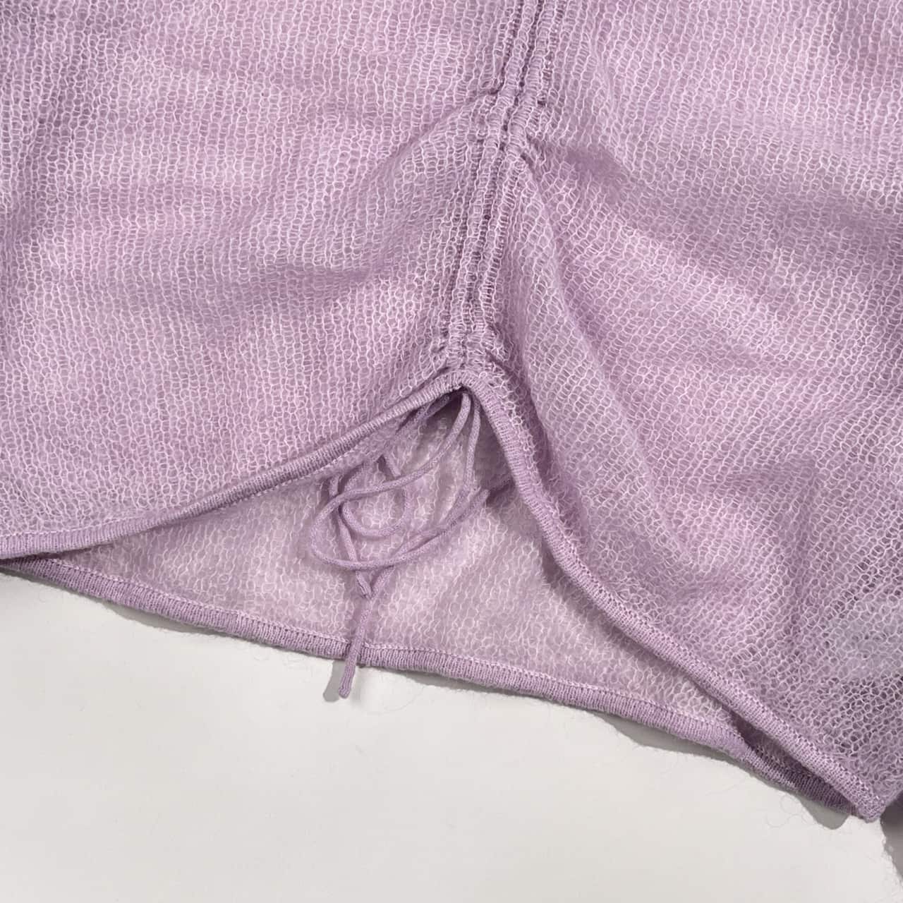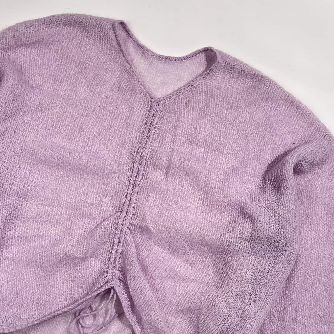 モヘヤ混 ADAM ET ROPE アダムエロペ メッシュ ギャザー ニット セーター F/ラベンダー系 レディース