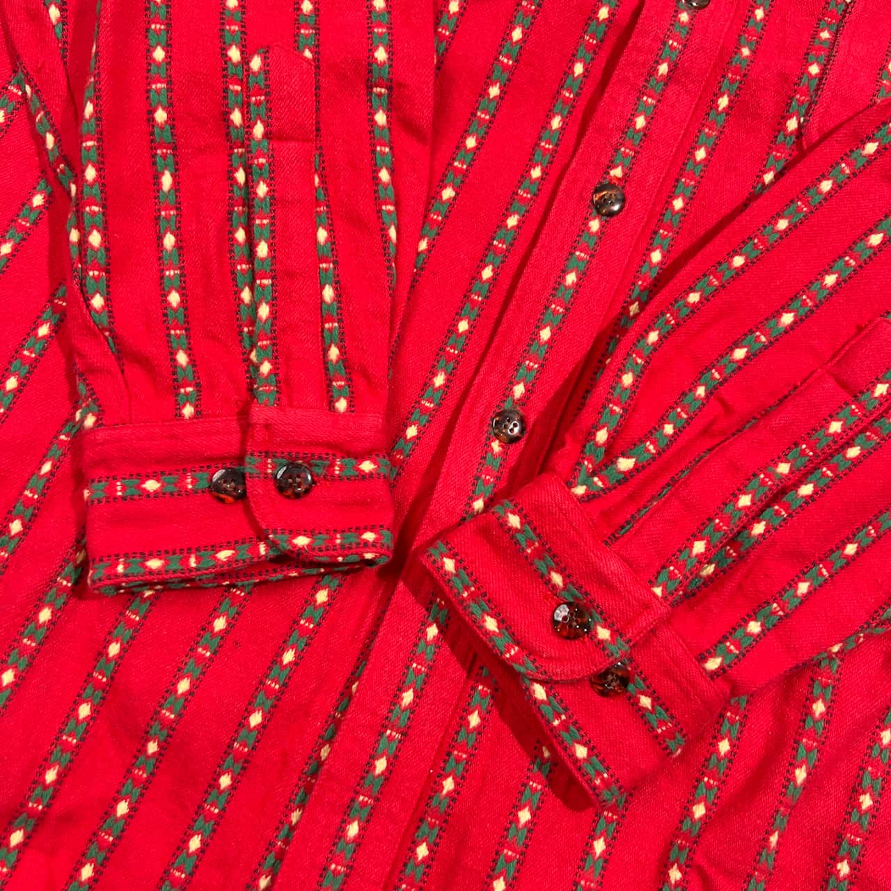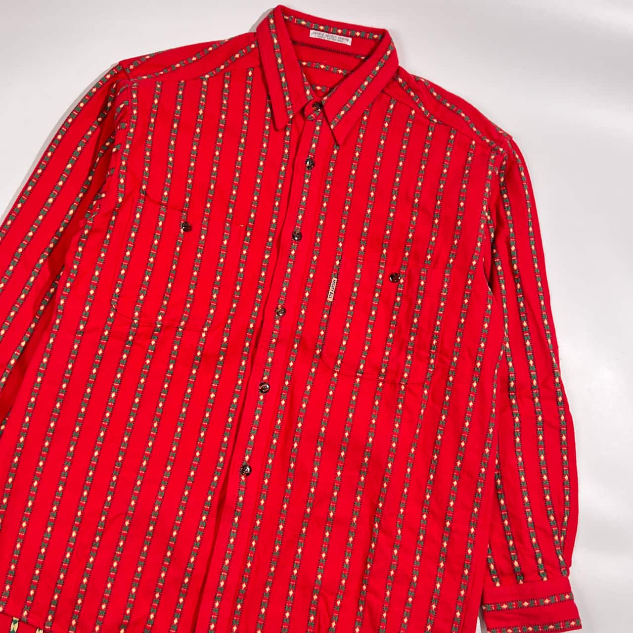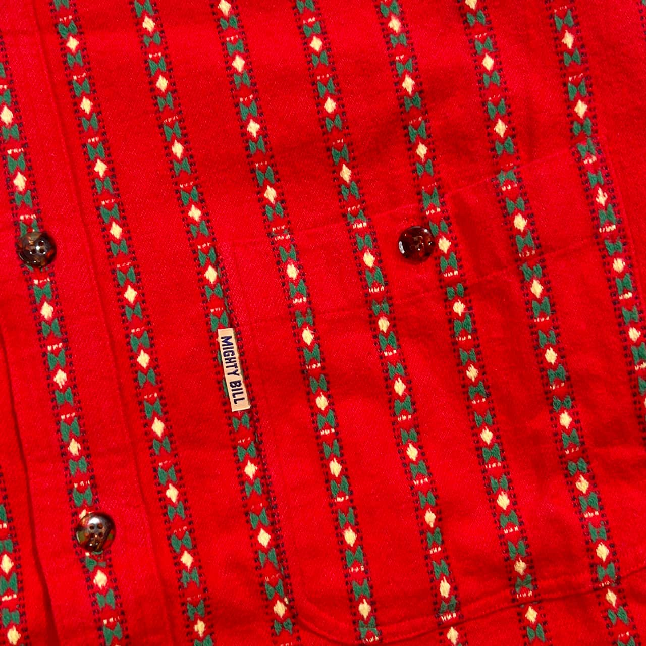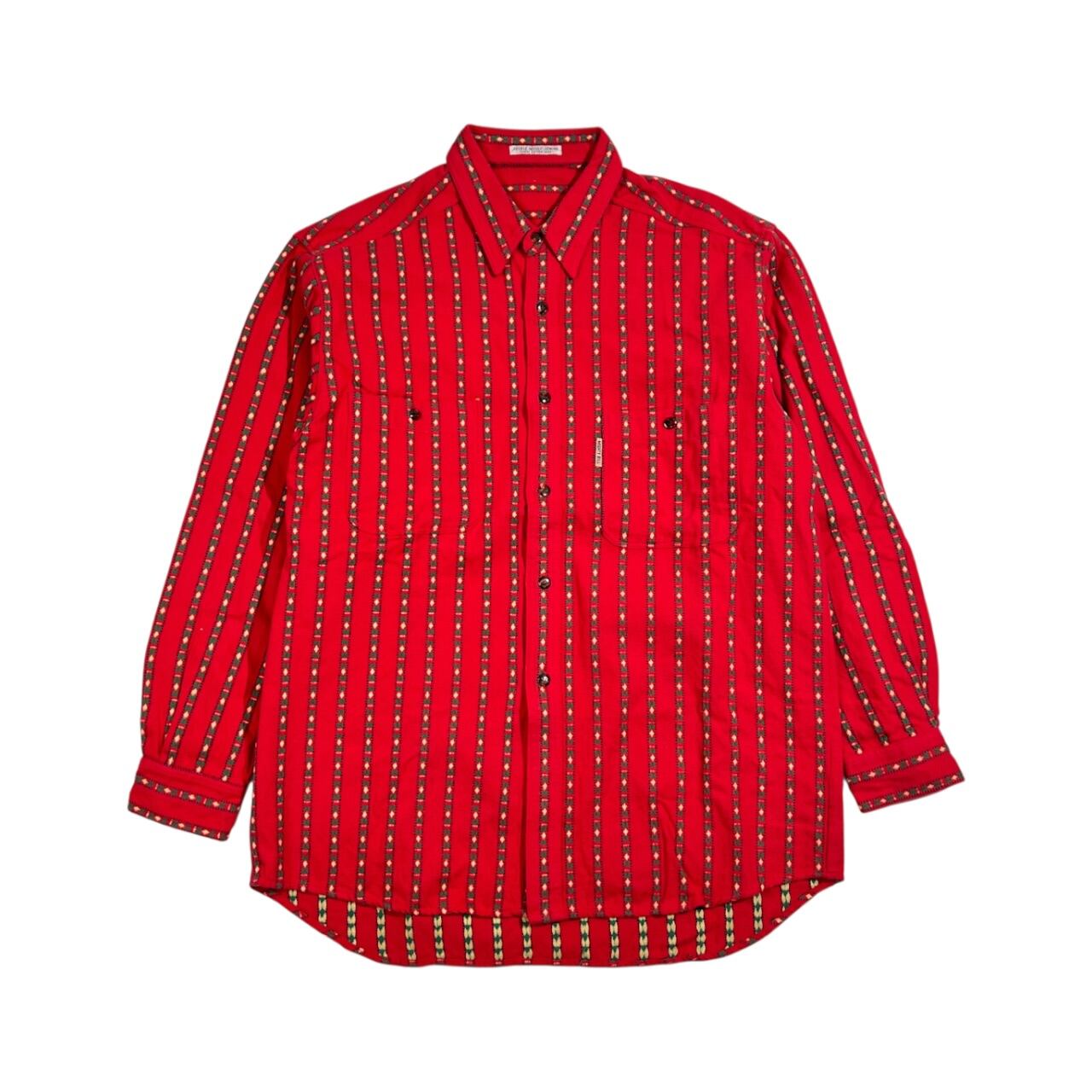 MIGHTY BILL 民族調 ネイティブ ストライプ 長袖 コットン シャツ /レッド系 メンズ DOUBLE NEEDLE SWING