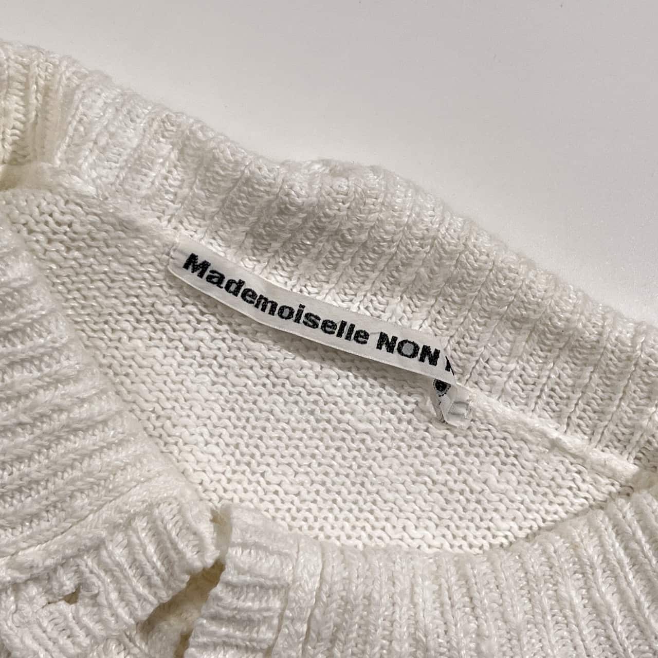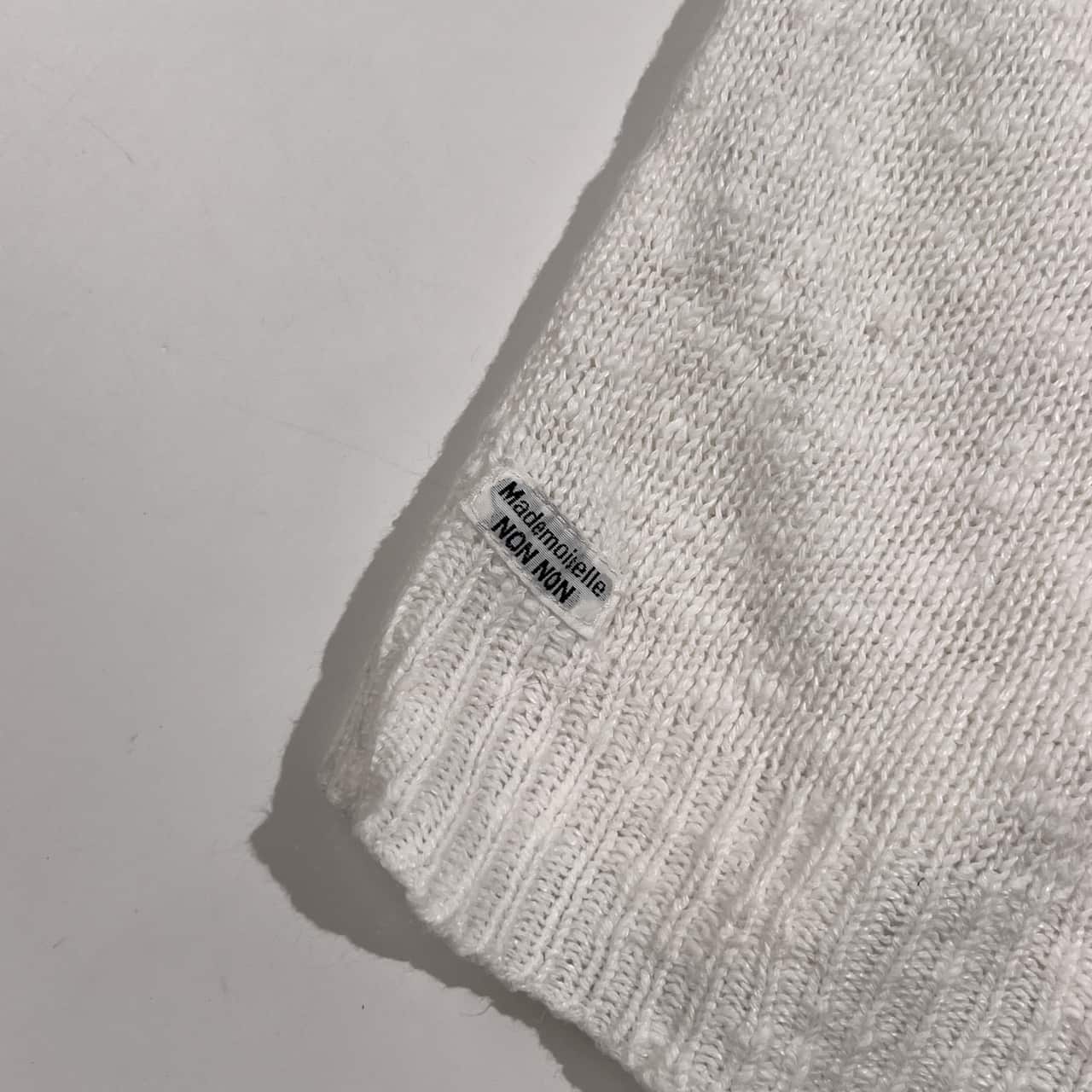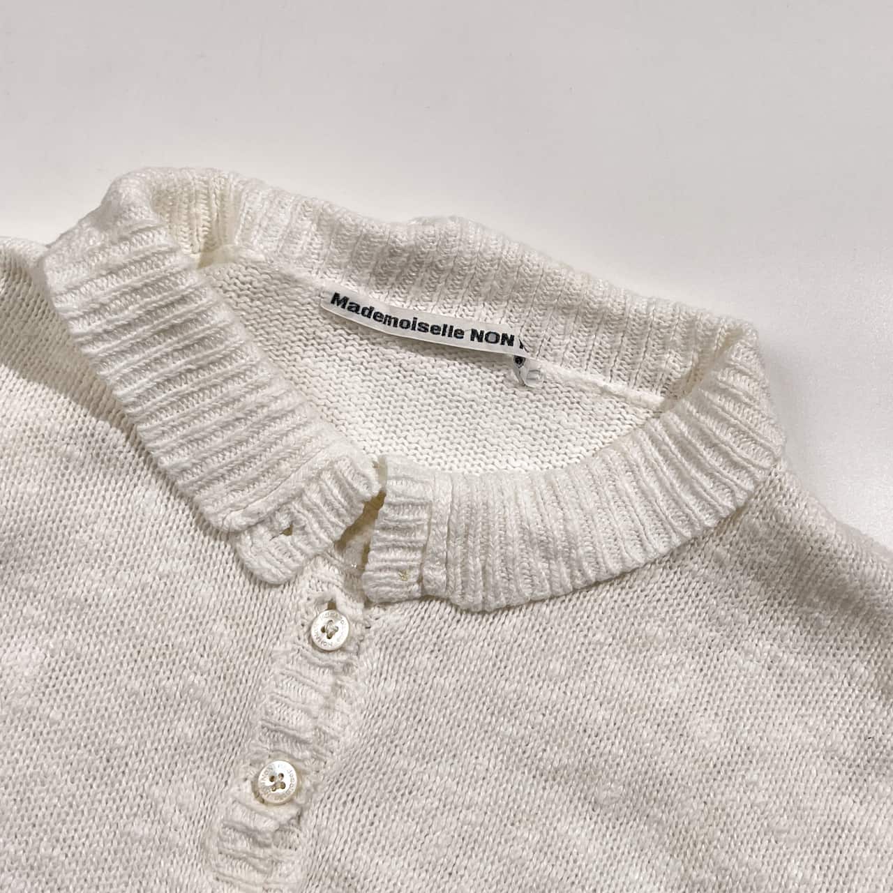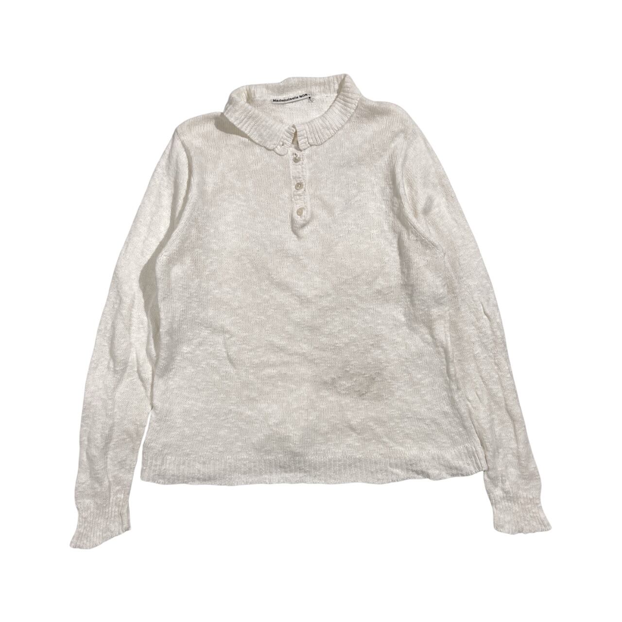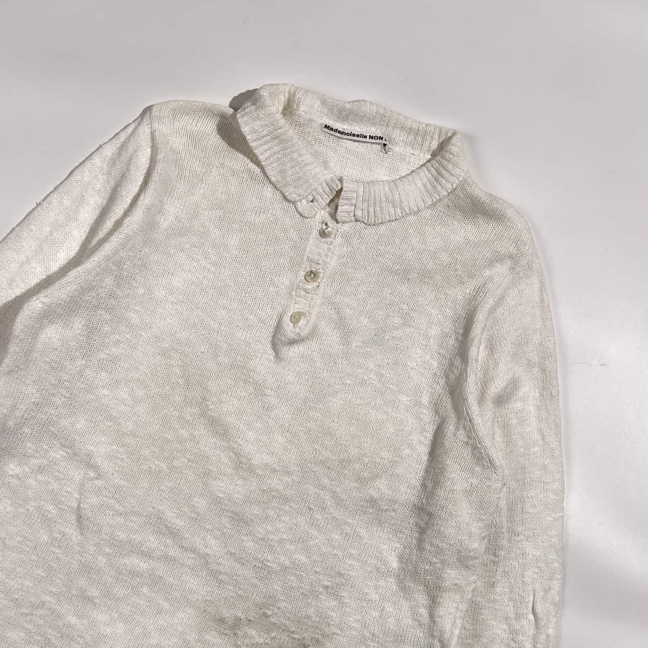リネン混 Mademoiselle NON NON マドモアゼルノンノン ヘンリーネック ニット セーター L/ホワイト系 レディース パパス