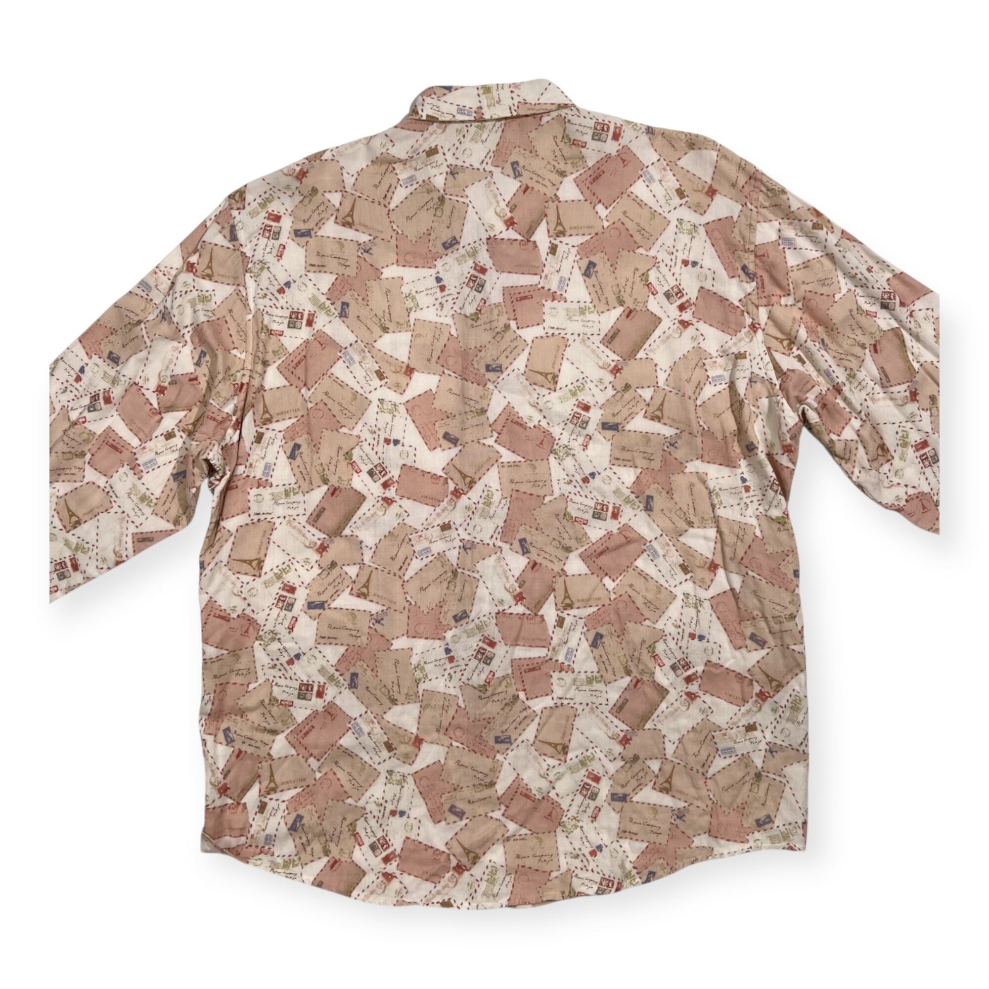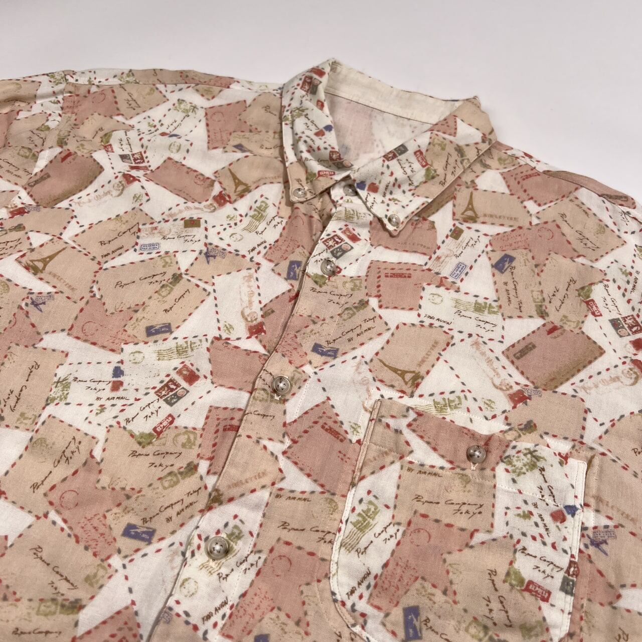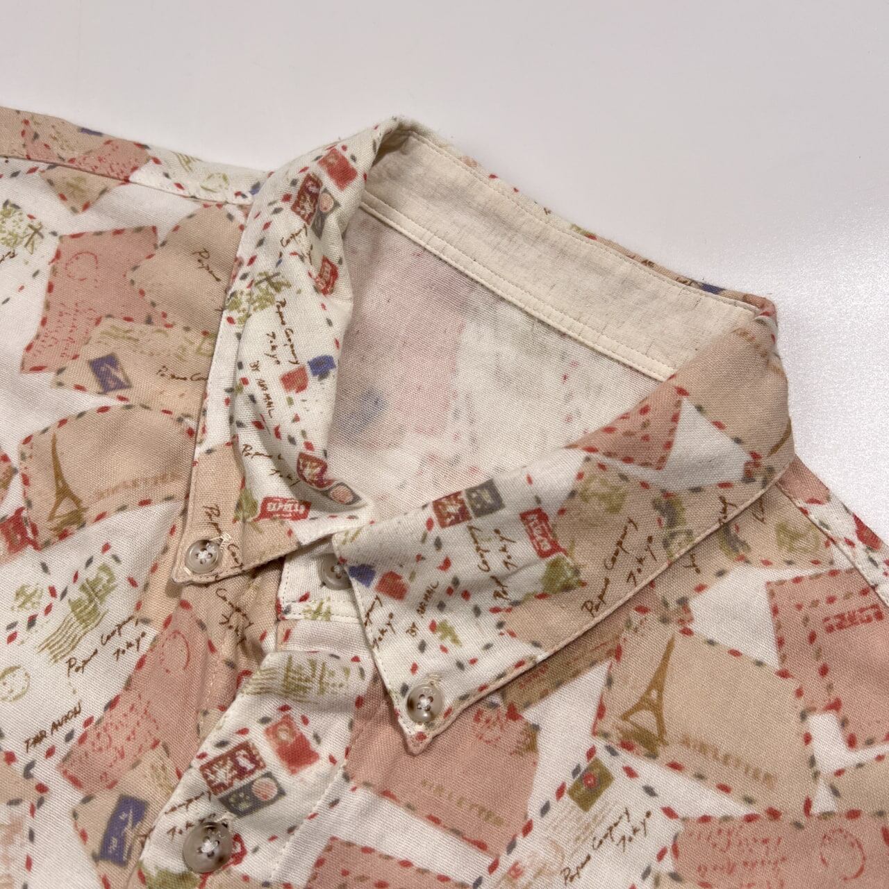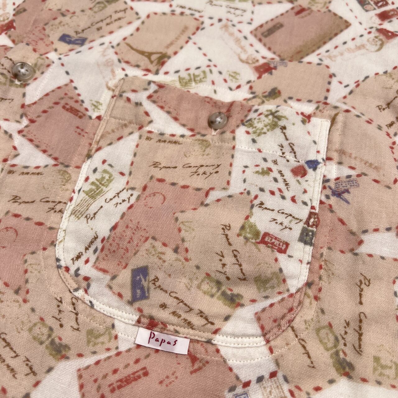 PAPAS パパス レター総柄 長袖シャツ サイズ 50 L /ホワイト×ベージュ×ピンク/メンズ/日本製
