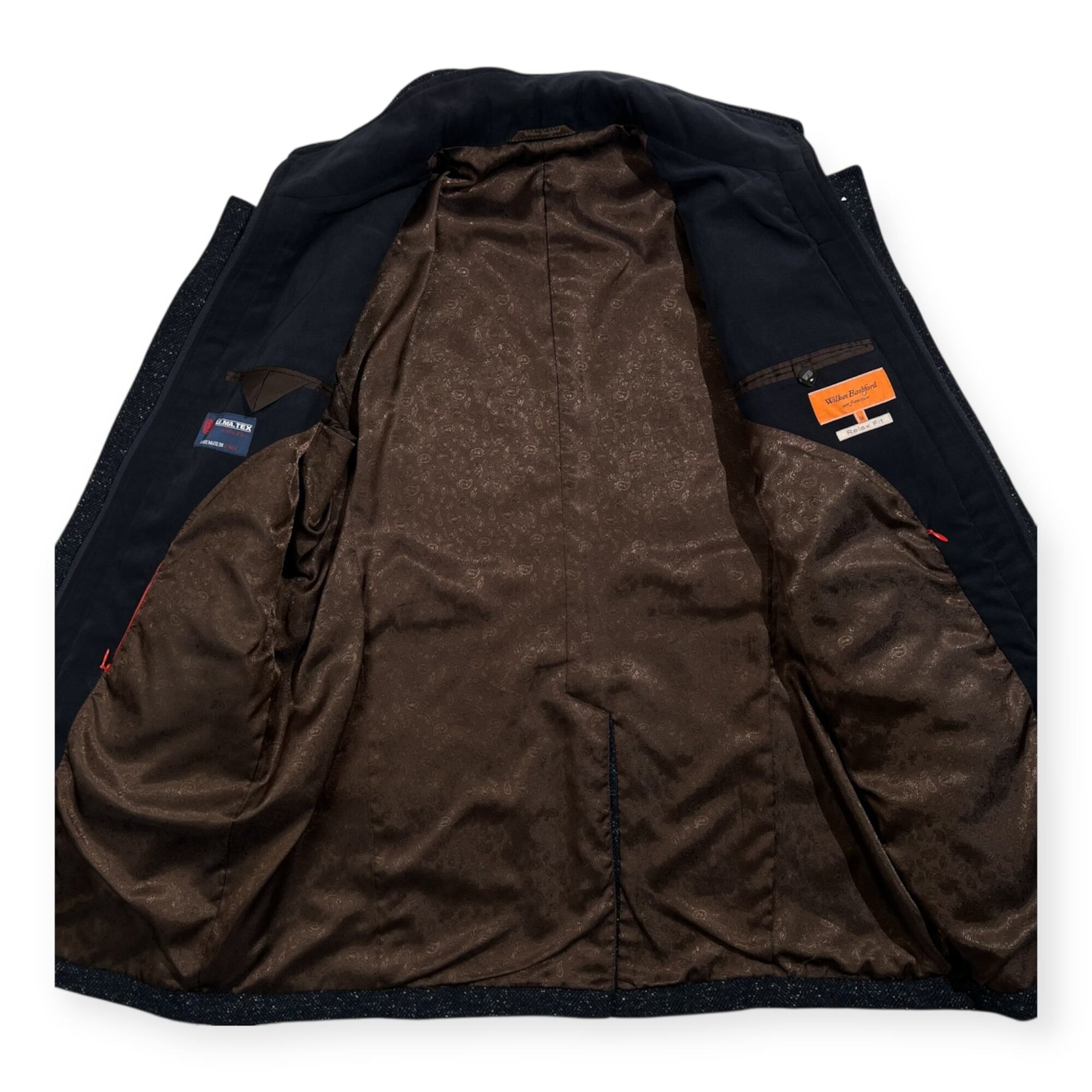 Wilkes Bashford ウィルクスヴァシュフォード ツイード ヘリンボーン コート 裏地ペイズリー サイズ M /LE.MA.TEXイタリア生地/タカキュー