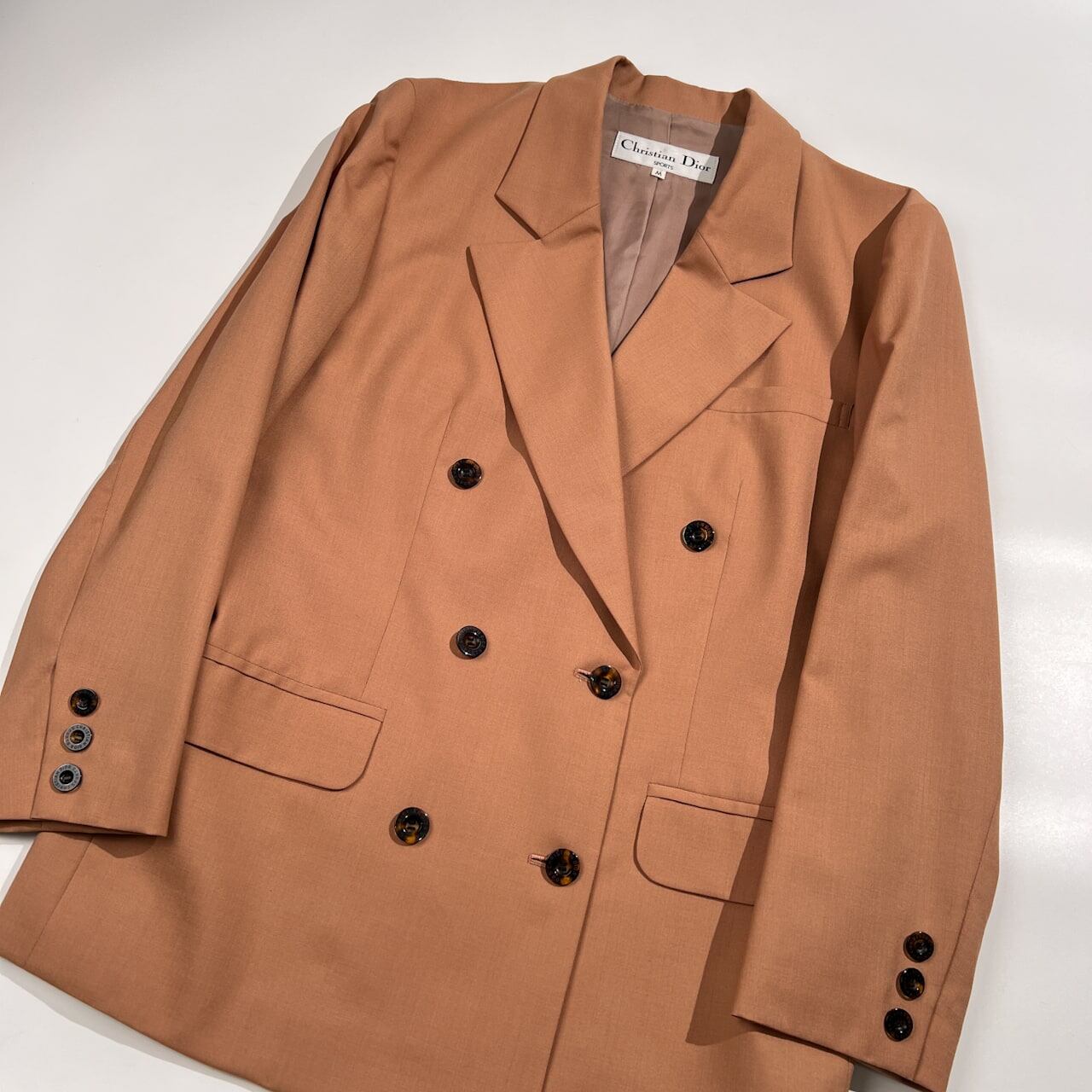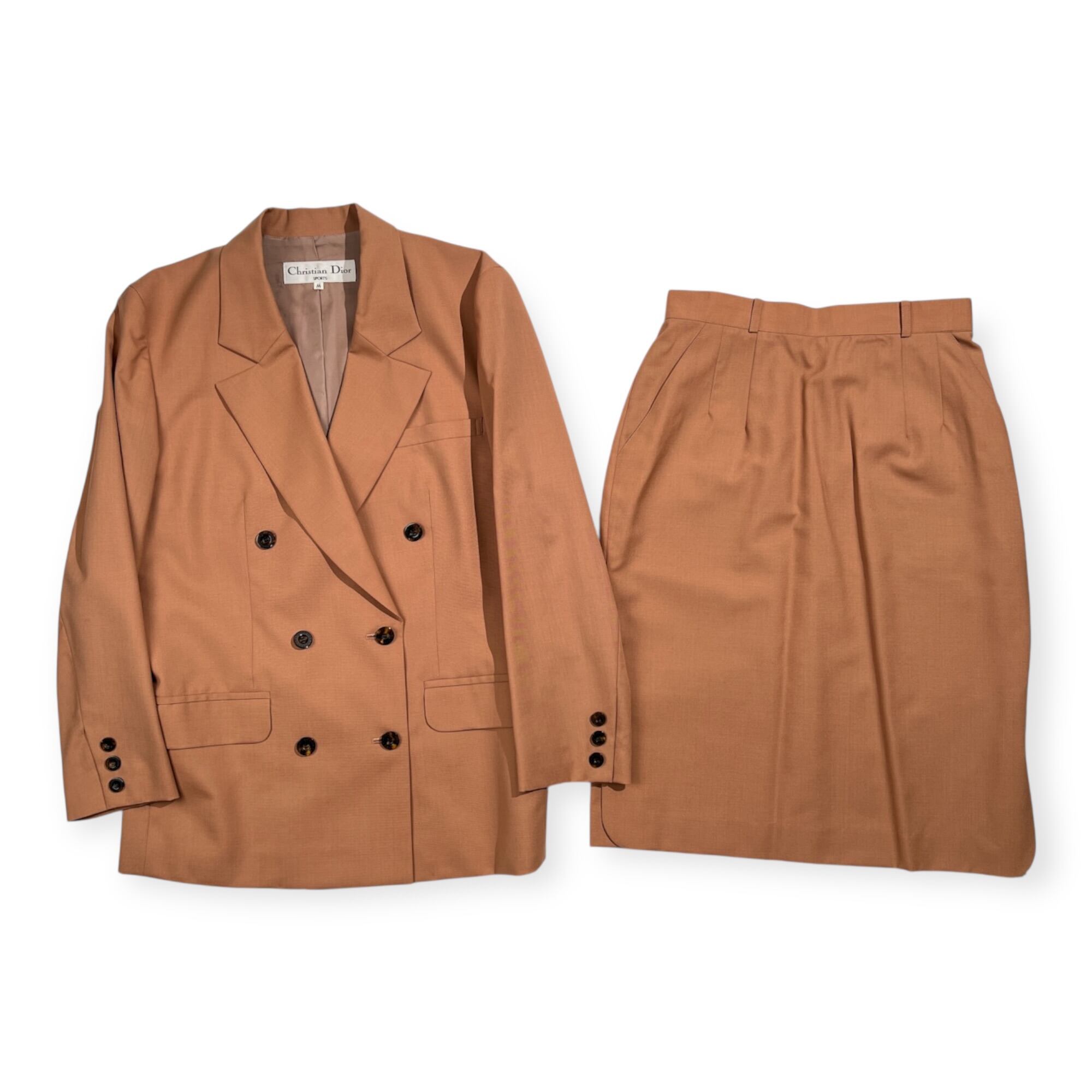 美品 Christian Dior クリスチャンディオール セットアップ スカート ダブル スーツ M /Y-TK03/オールド/ビンテージ/ピンクベージュ系