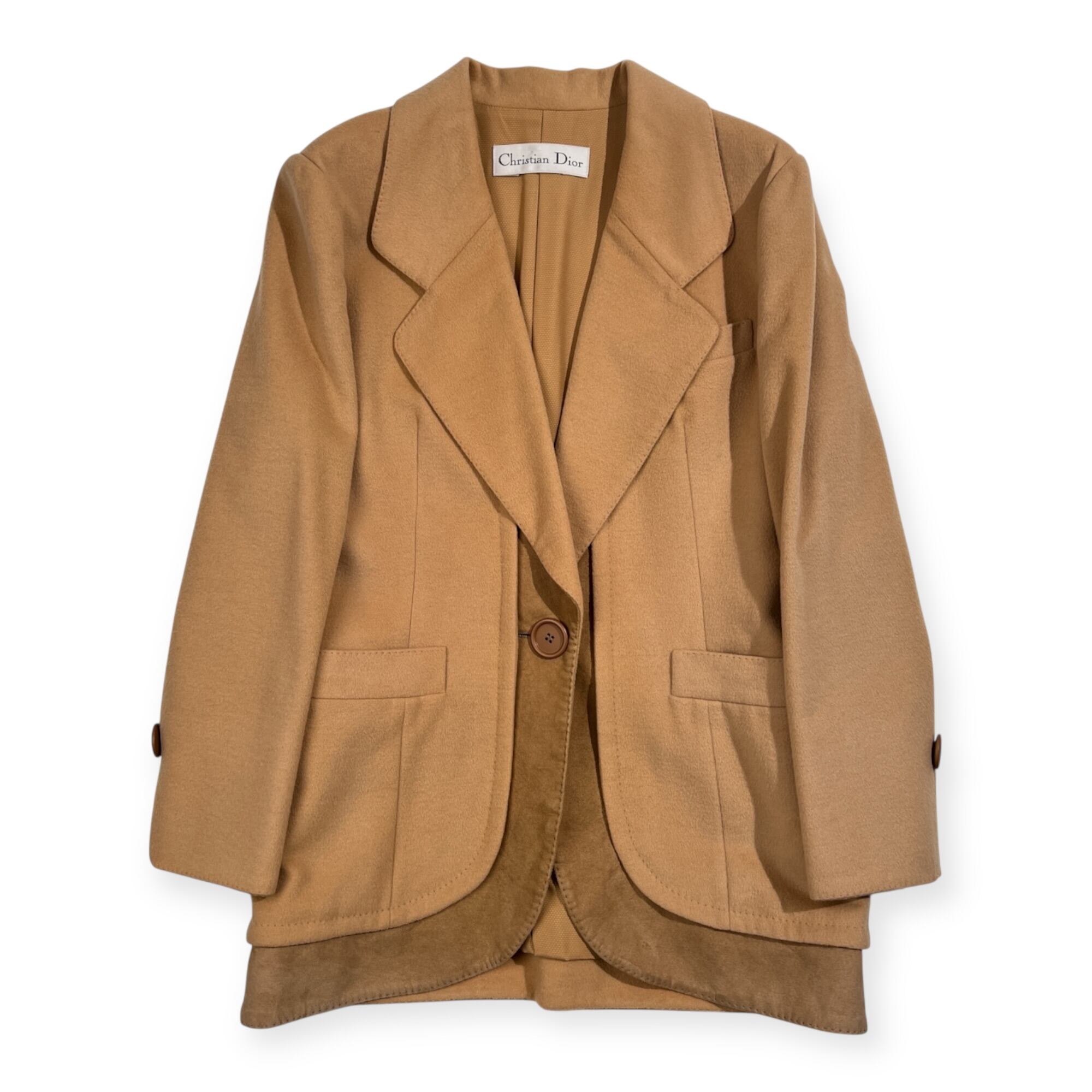 希少 レア Christian Dior クリスチャンディオール 本革 レザー 切替 カシミヤ混 セットアップ スカート スーツ/Y-TK03/上下/ビンテージ