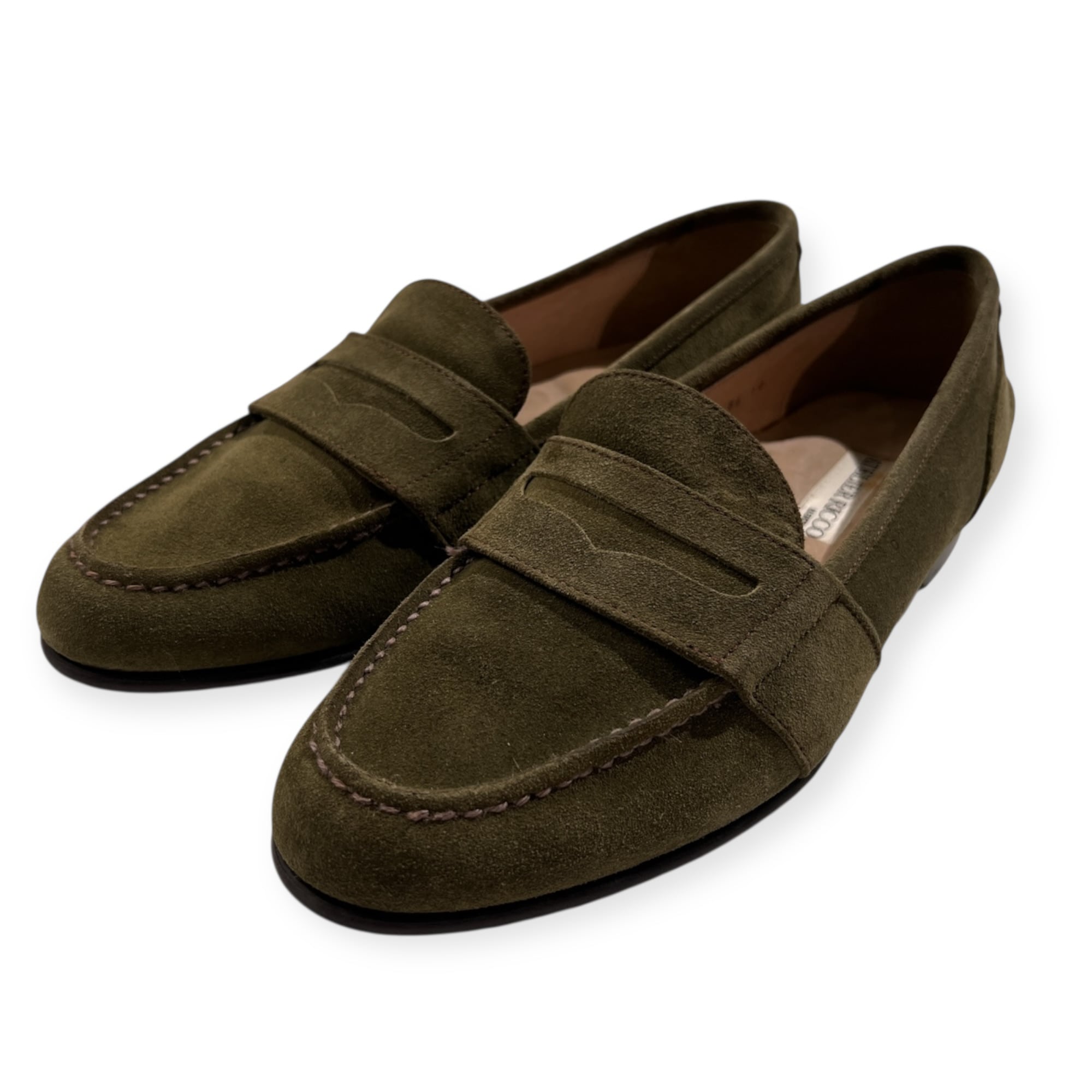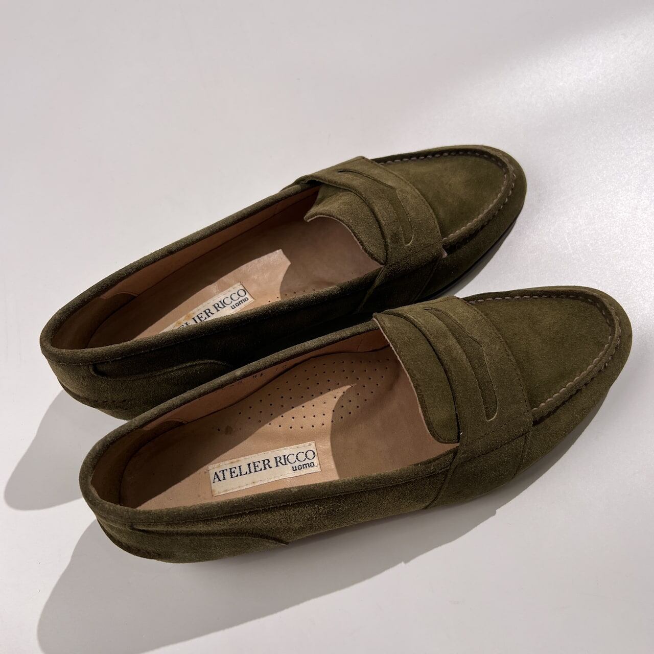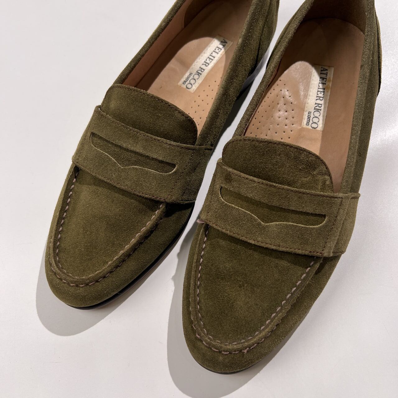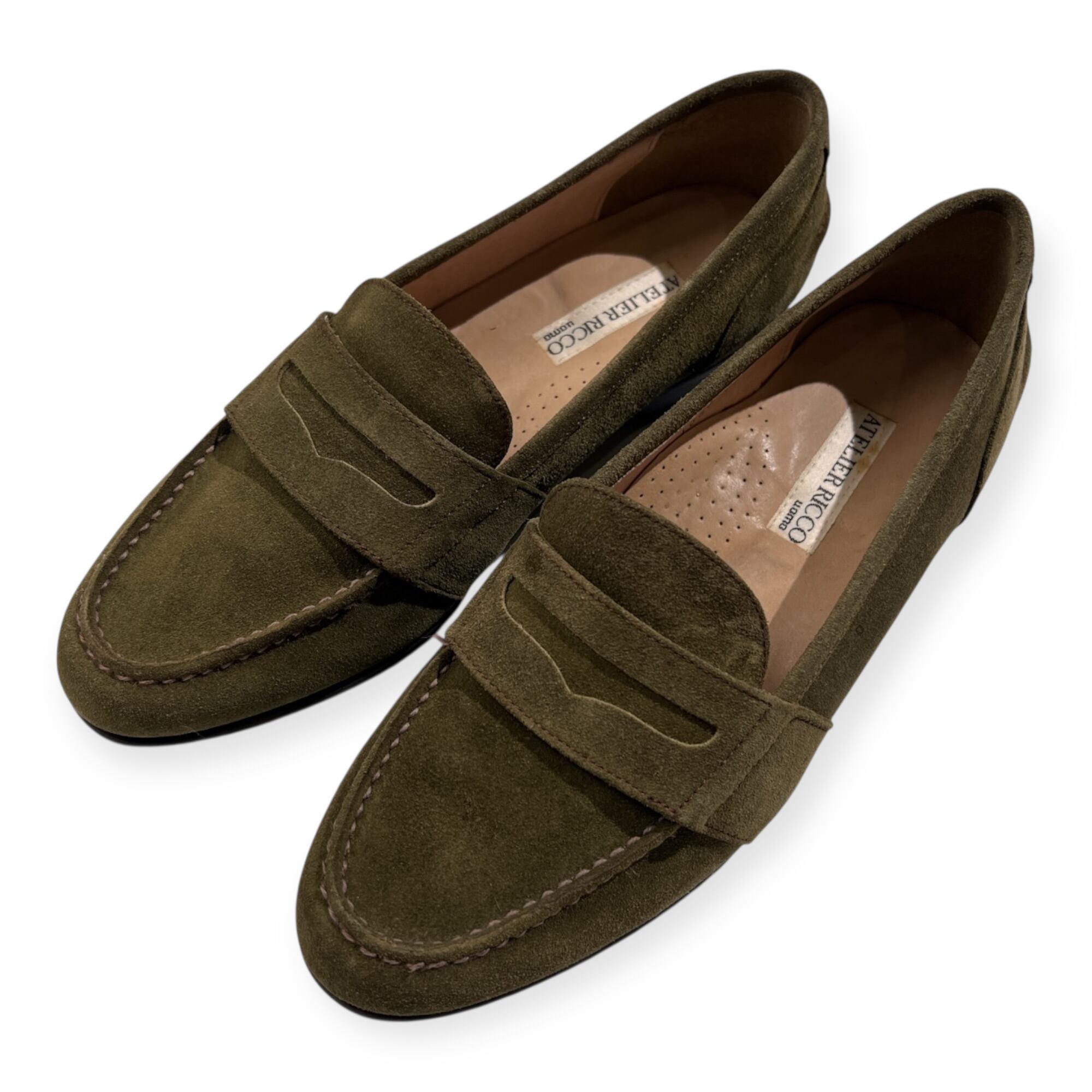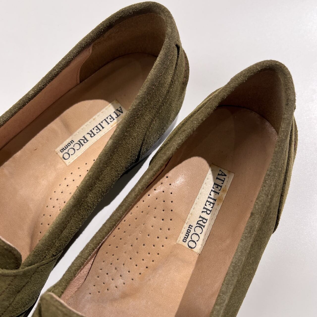 ATELIER RICCO アトリエ リコ スエード 羊革 本革 レザー ローファー 8 1/2 /26.5/グリーン系/革靴/シューズ