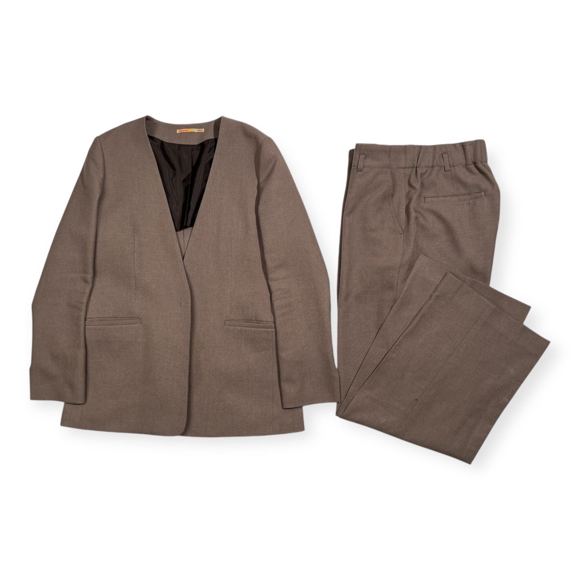 ORIHICA オリヒカ RHYME ノーカラー セットアップ スーツ ワイド スラックス サイズ M /グレージュ系/レディース/上下セット