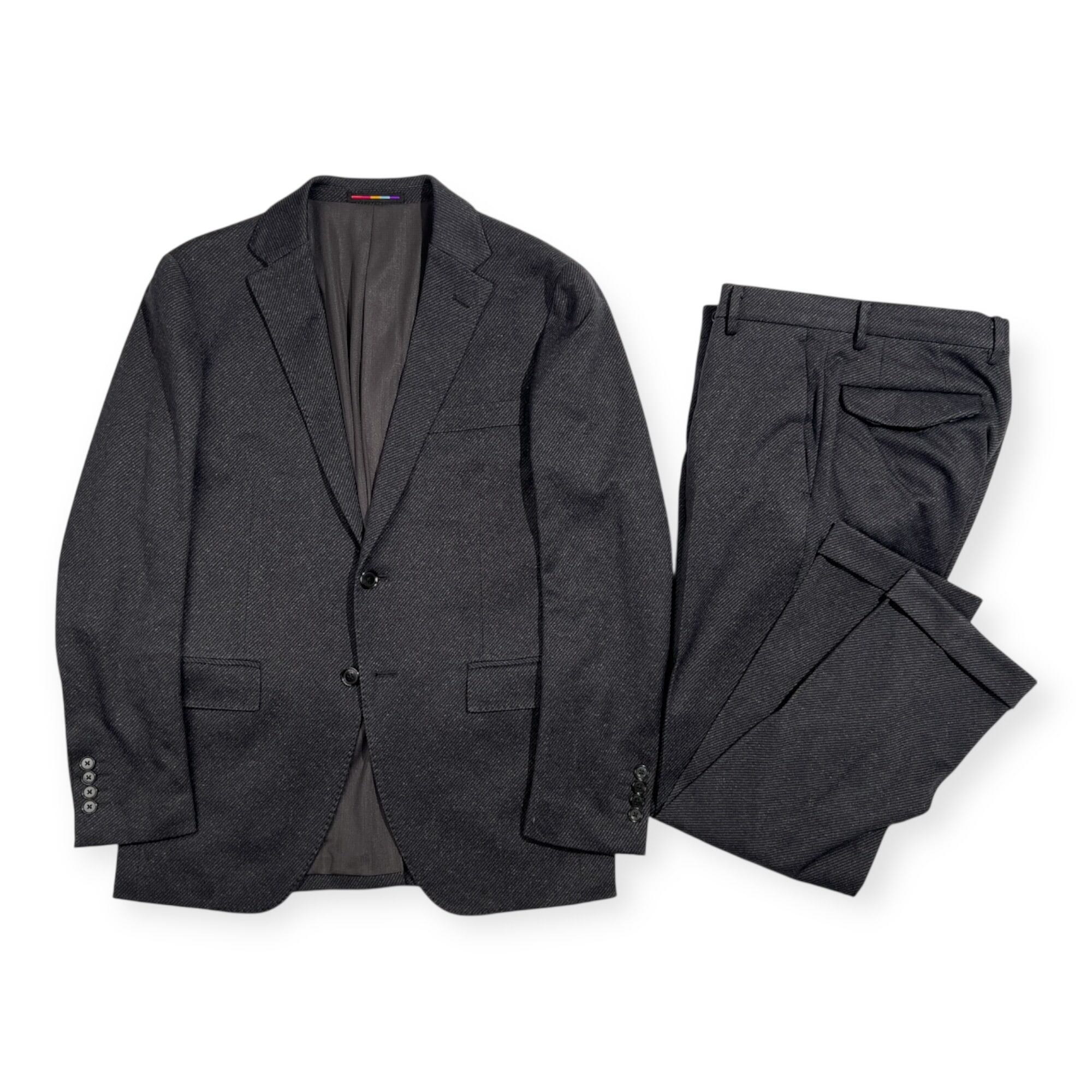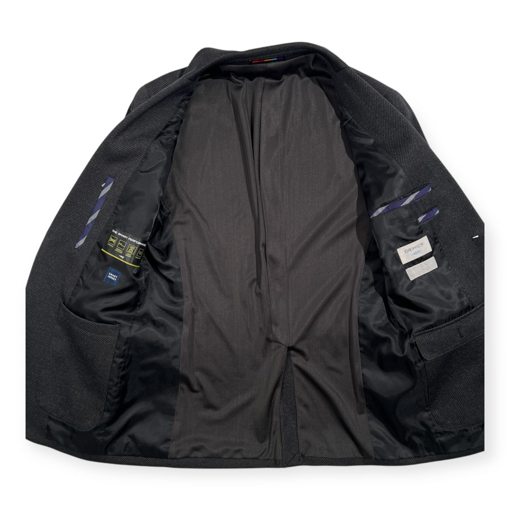 ORIHICA オリヒカ SMART JERSEY ツイード セットアップ 2B スーツ テーラード 裾ダブル スラックス S/W73 /ダークグレー