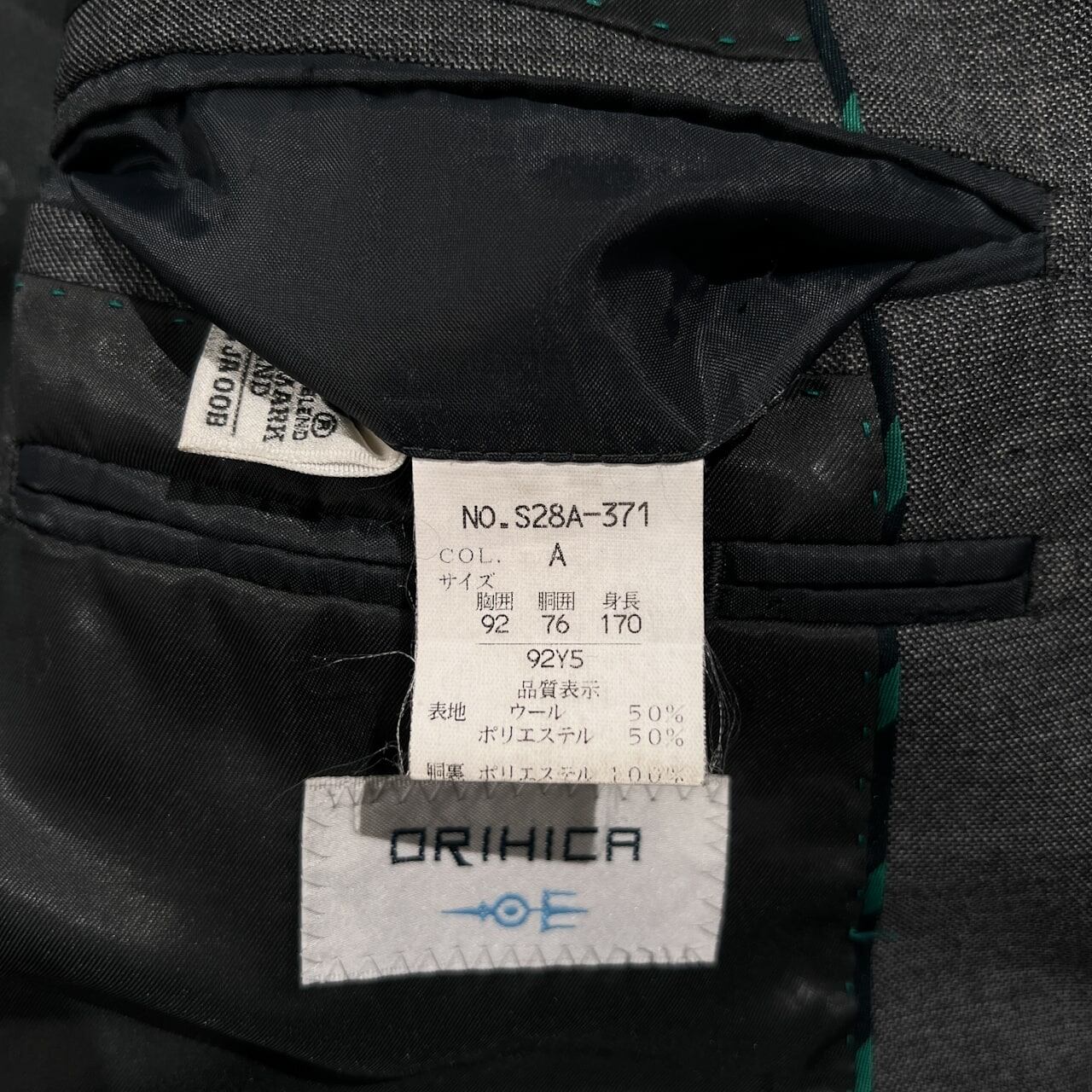 ORIHICA オリヒカ セットアップ 2B スーツ テーラードジャケット 裾ダブル スラックスパンツ サイズ 92-76-170 (92Y5) /グレー