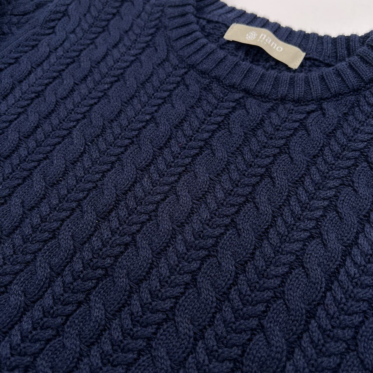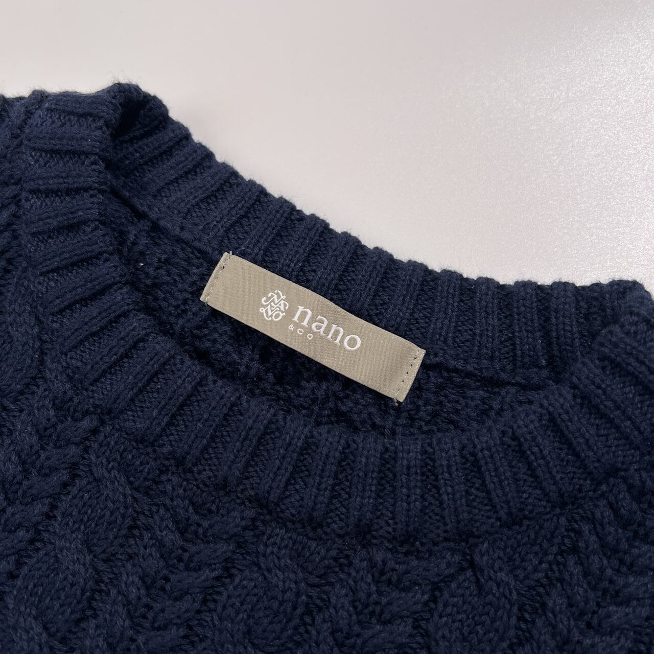 nano universe ナノユニバース ケーブル編み コットン ニットセーター サイズ S /ネイビー/男女でも
