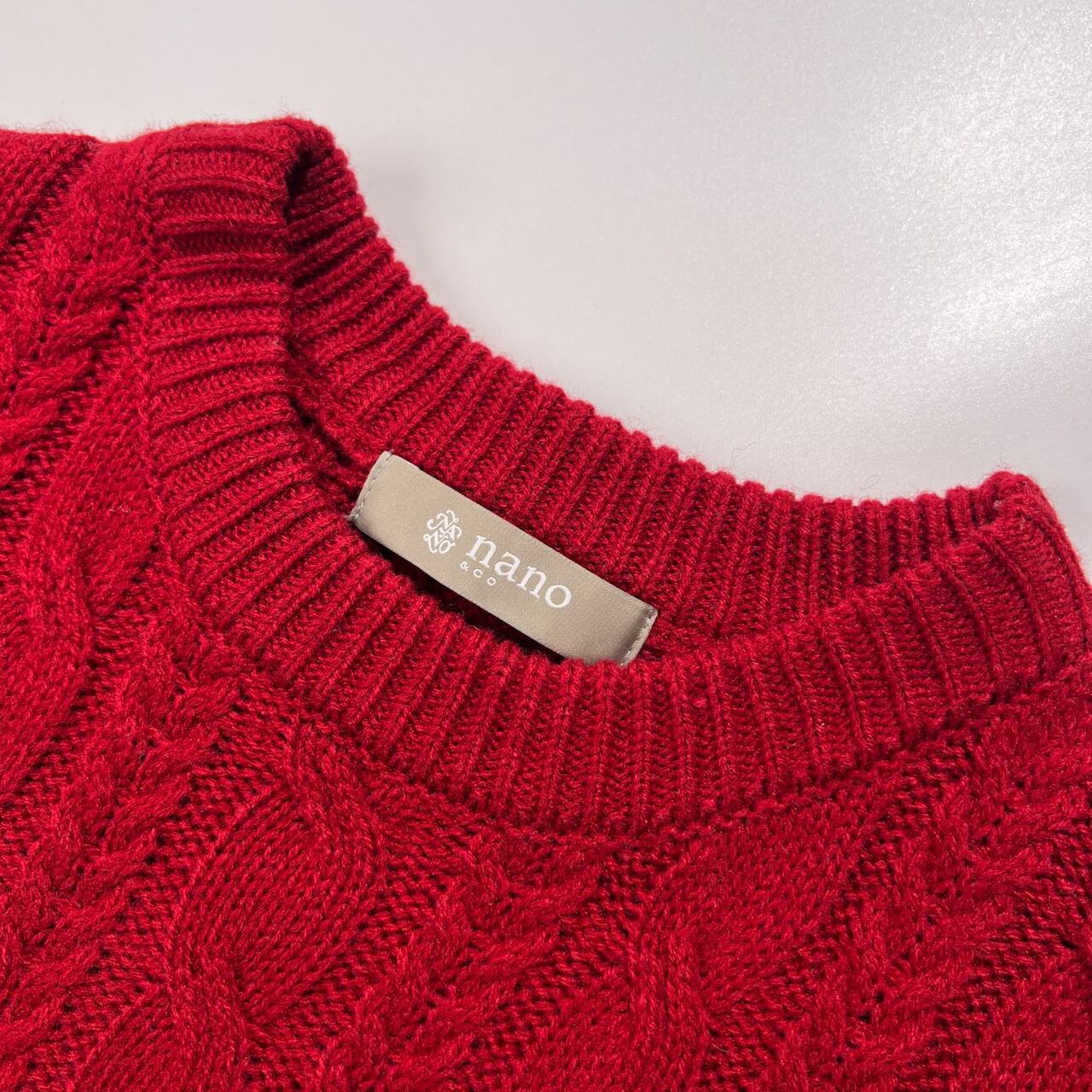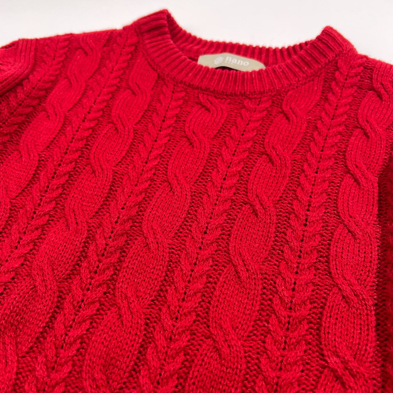 nano universe ナノユニバース ケーブル編み ウール混 ニットセーター サイズ S /レッド/男女でも