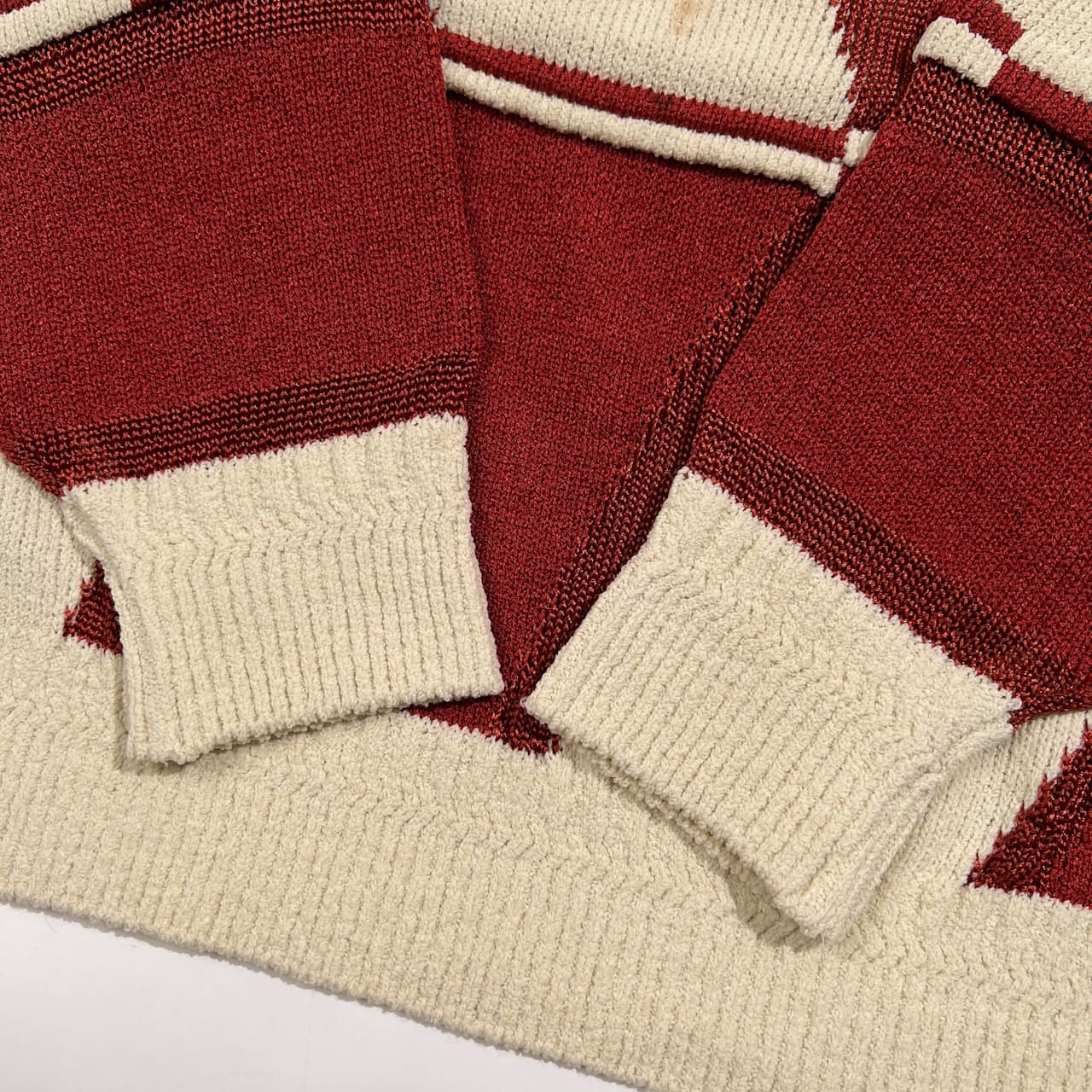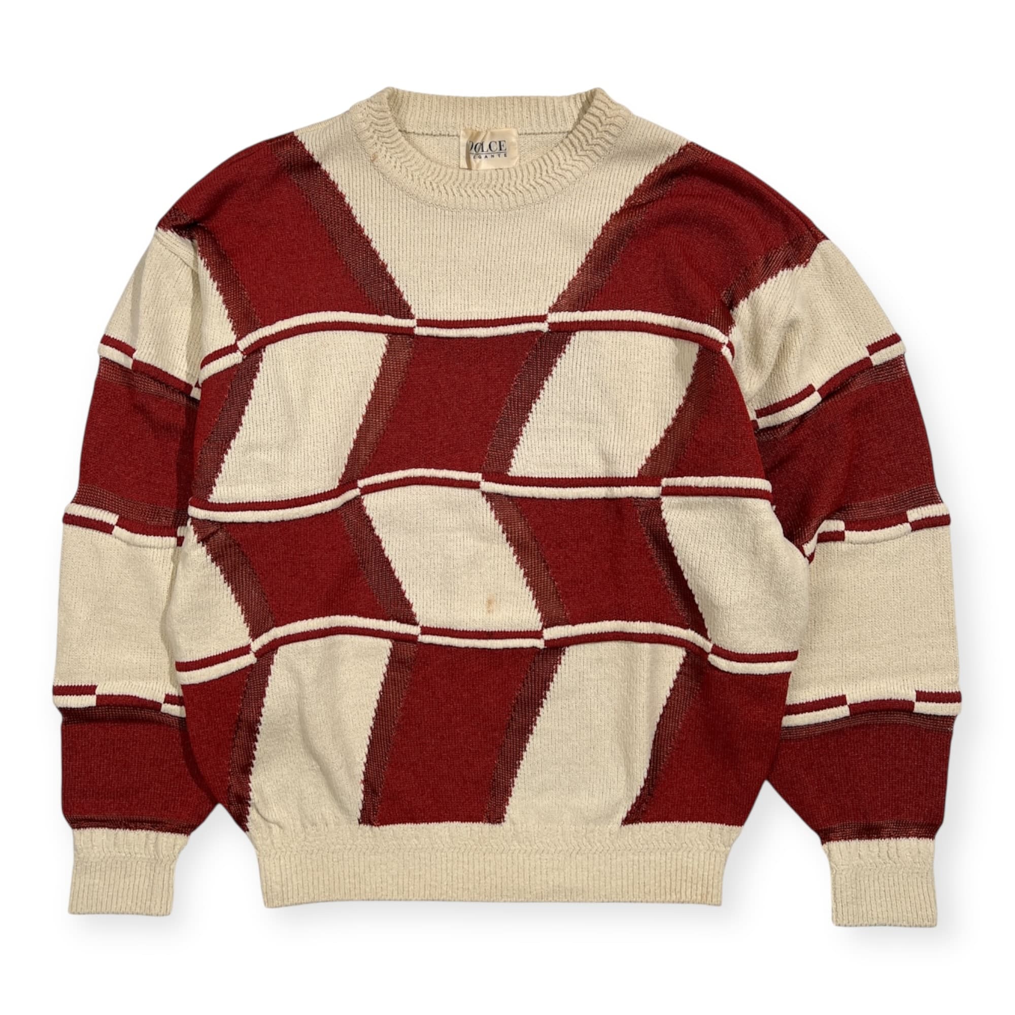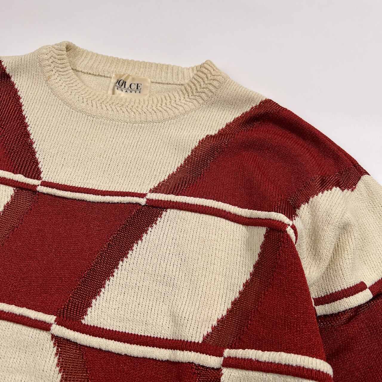 DOLCE ELEGANTE ドルチェ デザイン編み 3D ニット セーター 48 /レッド系×アイボリーホワイト系/メンズ/日本製/ワールド