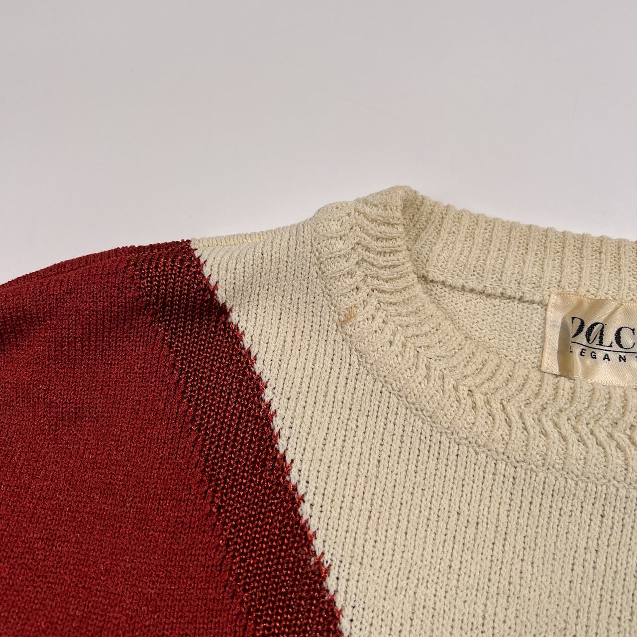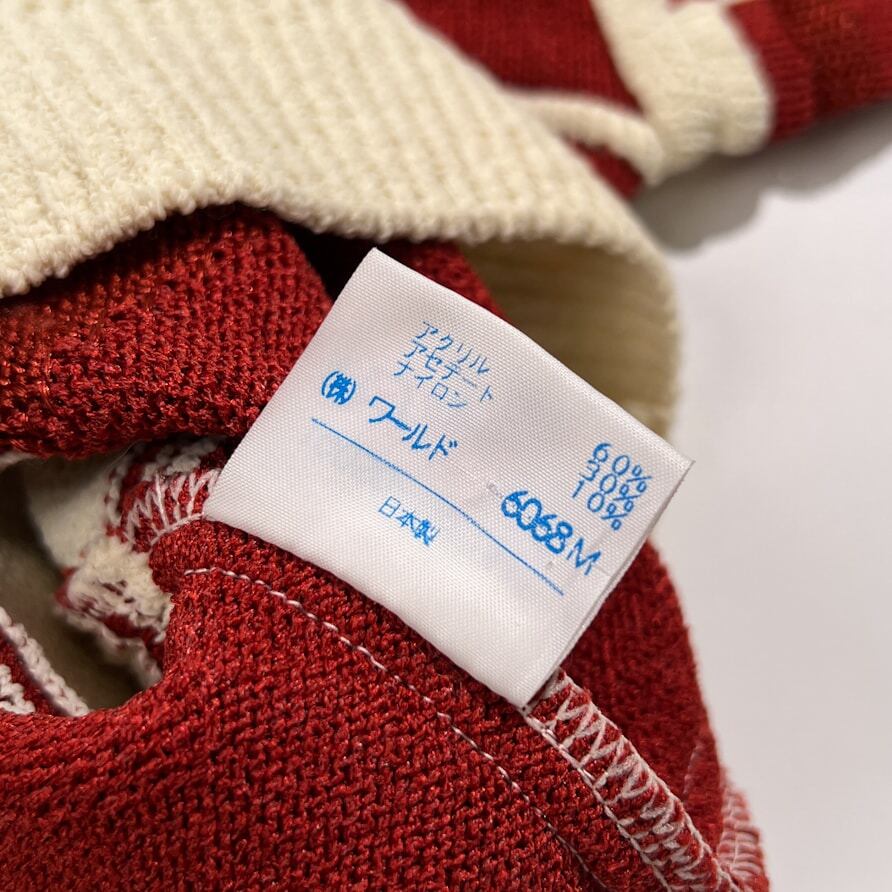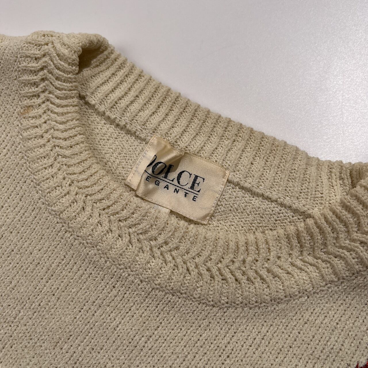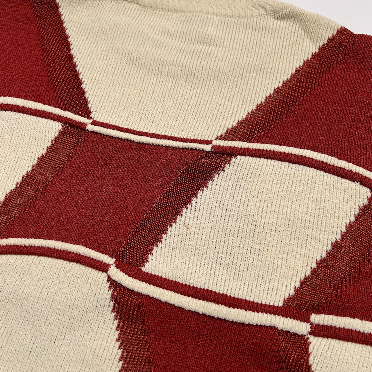 DOLCE ELEGANTE ドルチェ デザイン編み 3D ニット セーター 48 /レッド系×アイボリーホワイト系/メンズ/日本製/ワールド