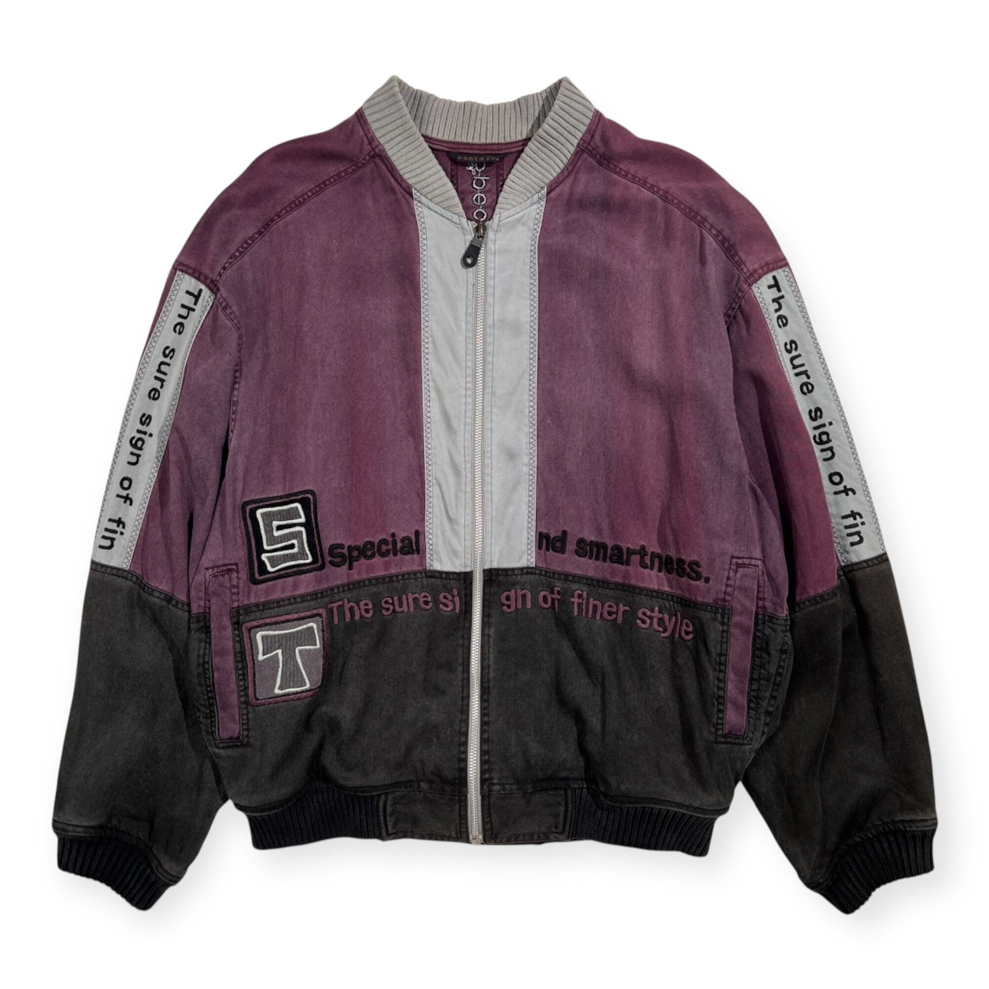 Santa fe サンタフェ 刺繍デザイン テンセル100% ジップアップ ジャケット ブルゾン サイズ 04 /パープル系/メンズ/日本製