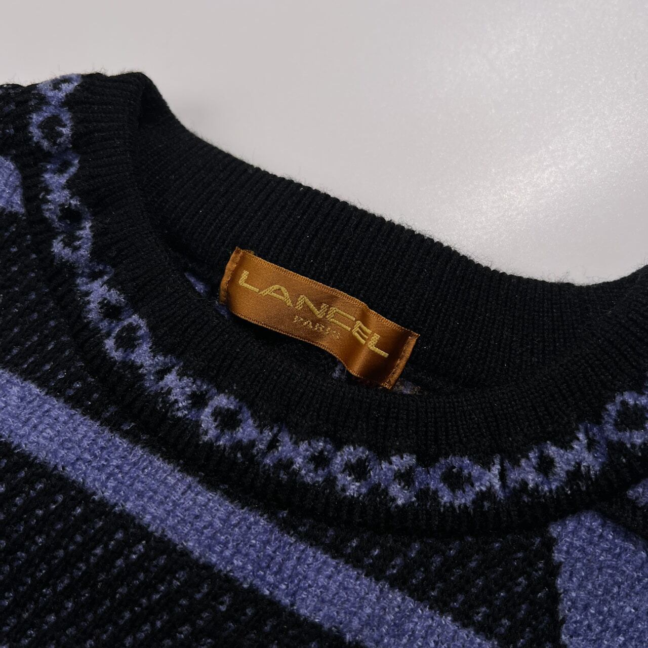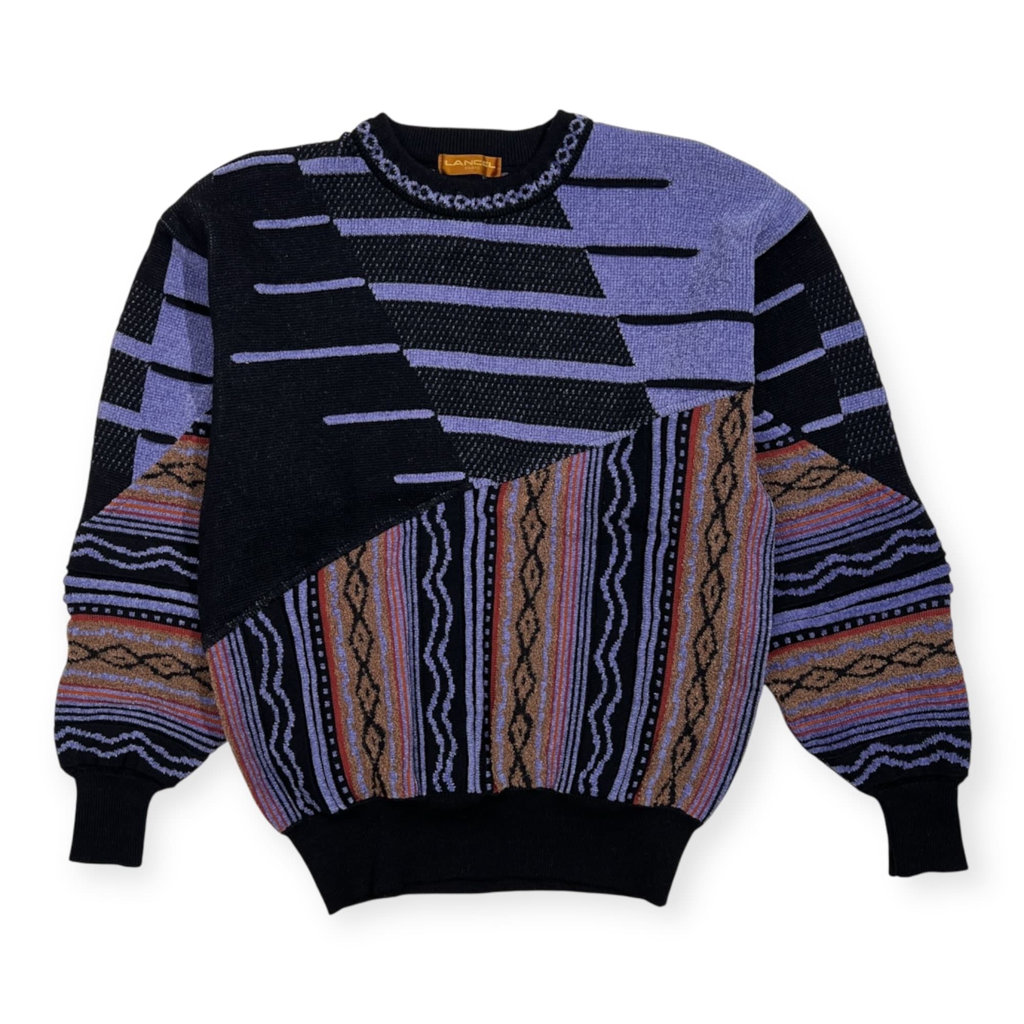 LANCEL ランセル デザイン編み 3Dニット ウール モール セーター サイズ M /パープル系/メンズ/日本製