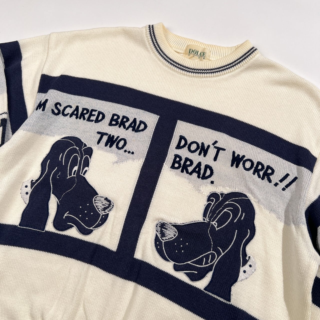 DOLCE CLUB ドルチェ ドッグデザイン コットンニット セーター サイズ 46 /ワールド/日本製/ホワイト×ネイビー