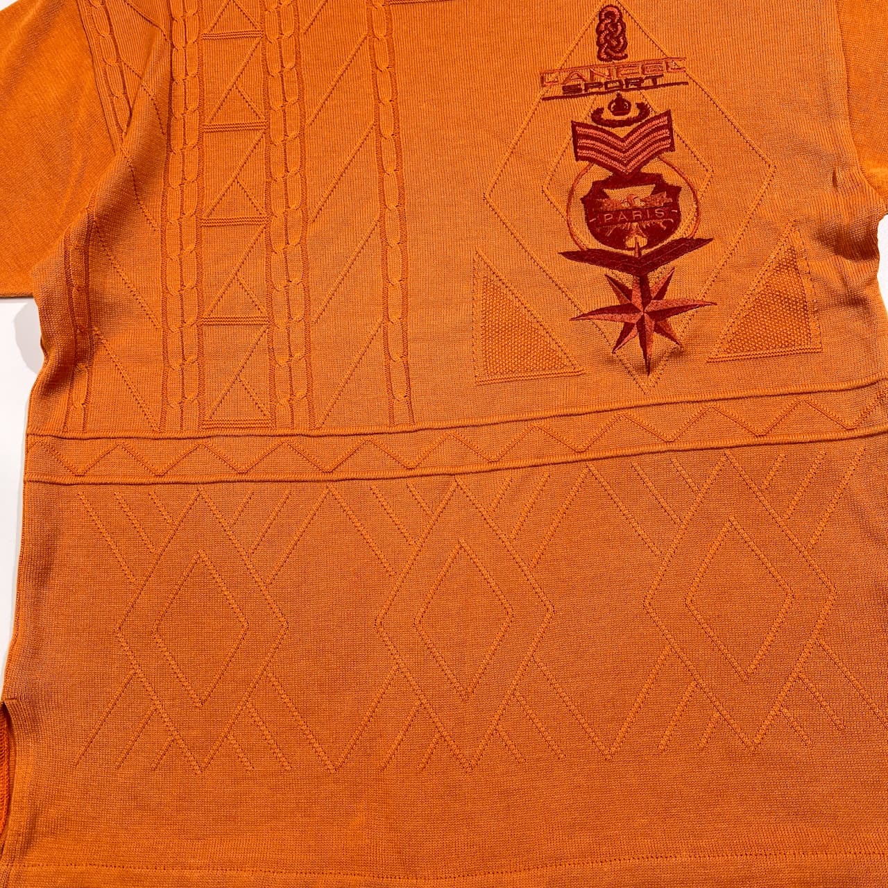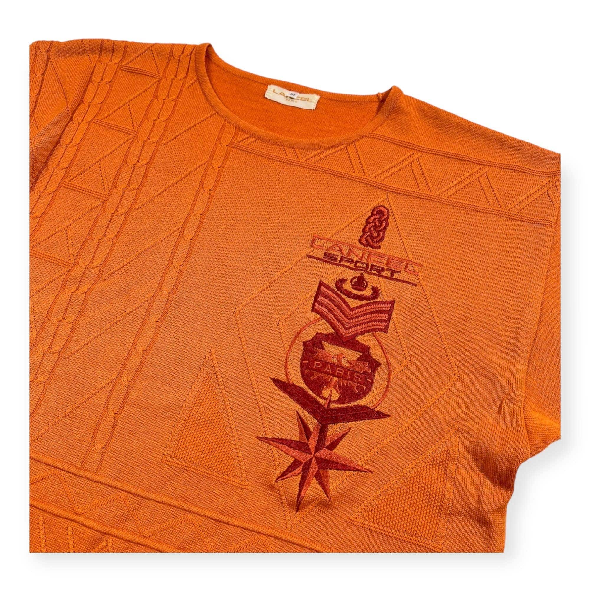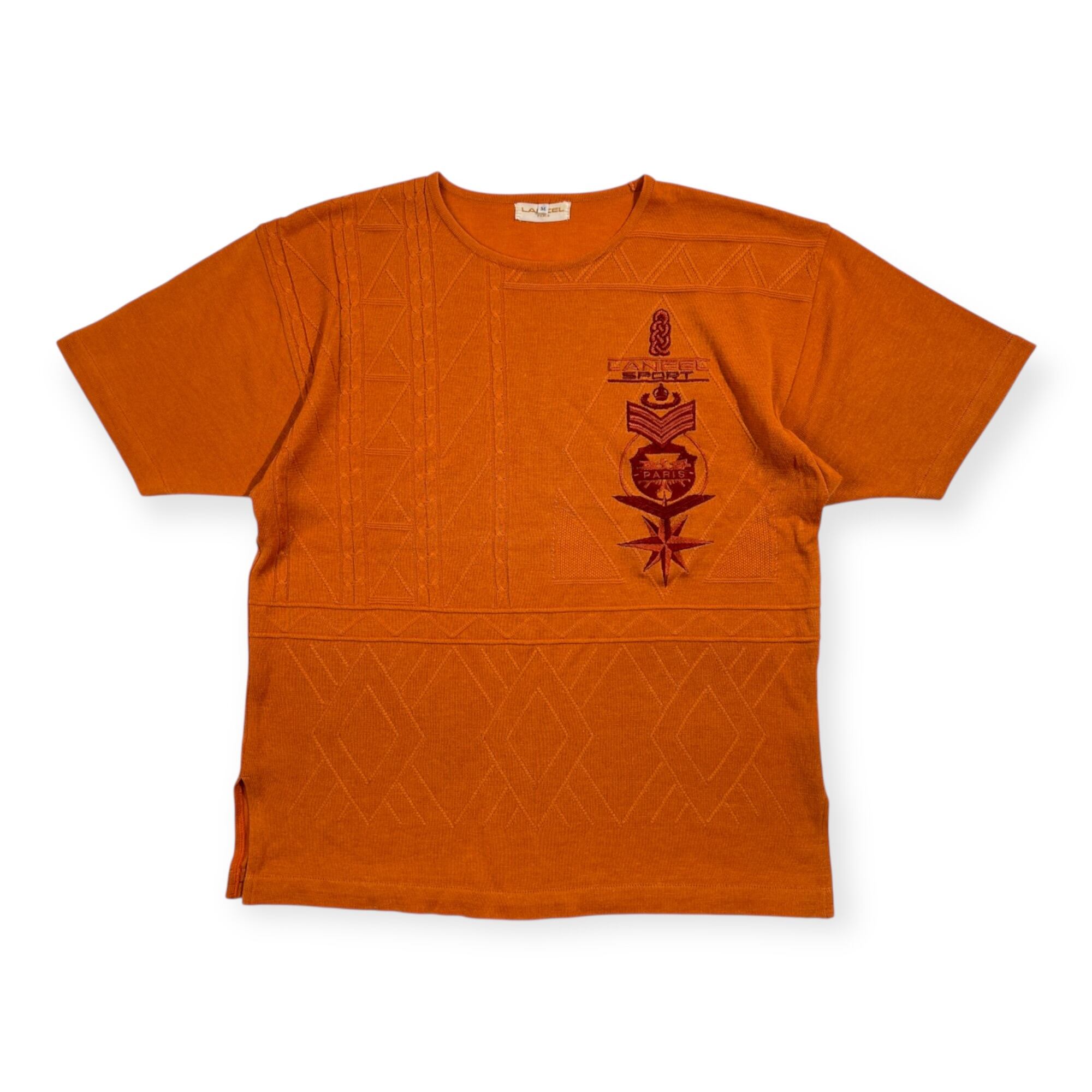 LANCEL ランセル ロゴ刺繍 ケーブル編み リネン混 半袖 サマーニット セーター サイズ M /オレンジ/日本製/麻素材