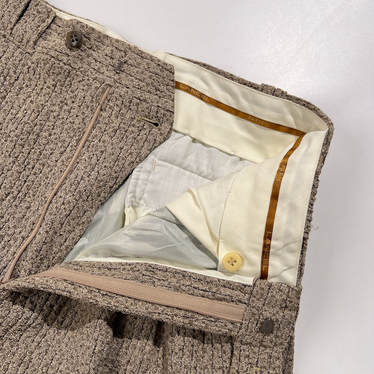 LANCEL ランセル 立体 デザイン タック スラックスパンツ サイズ 79 /ベージュ系/メンズ/日本製