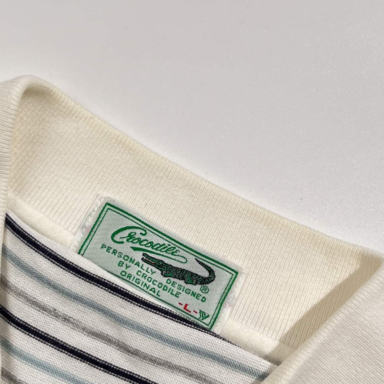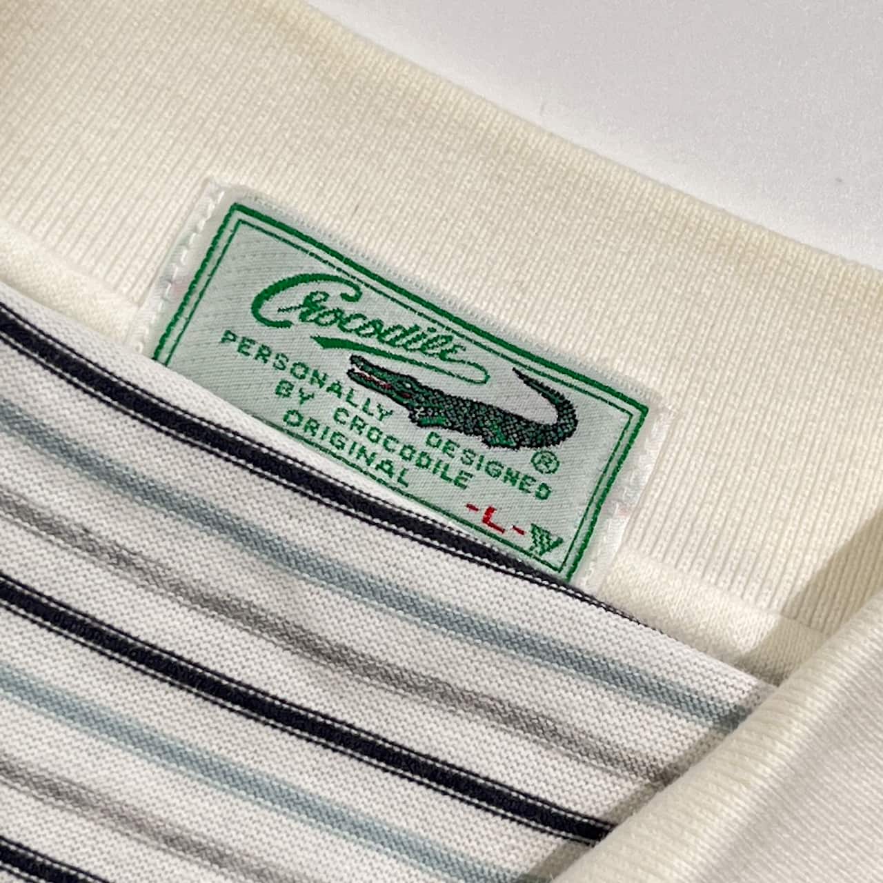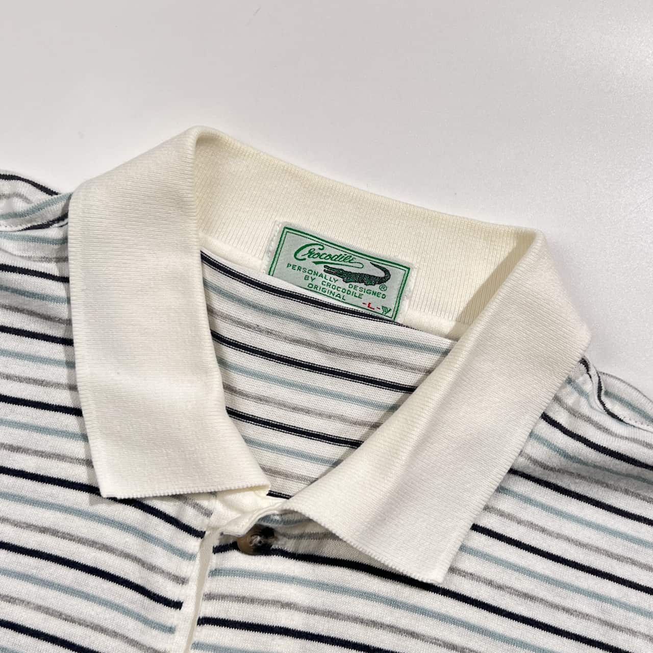 Crocodile クロコダイル ボーダー 天竺 長袖 ポロシャツ L /メンズ