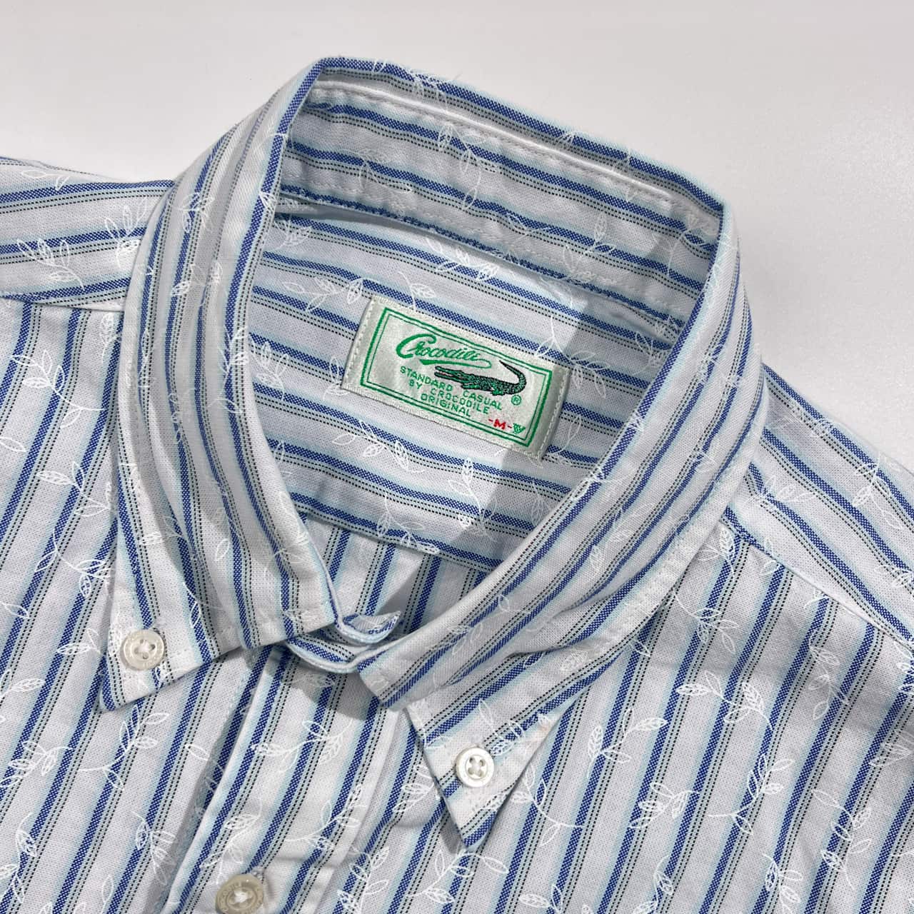 新品 タグ付き Crocodile クロコダイル 総柄 BD ボタンダウン 長袖 シャツ M/ブルー系 メンズ