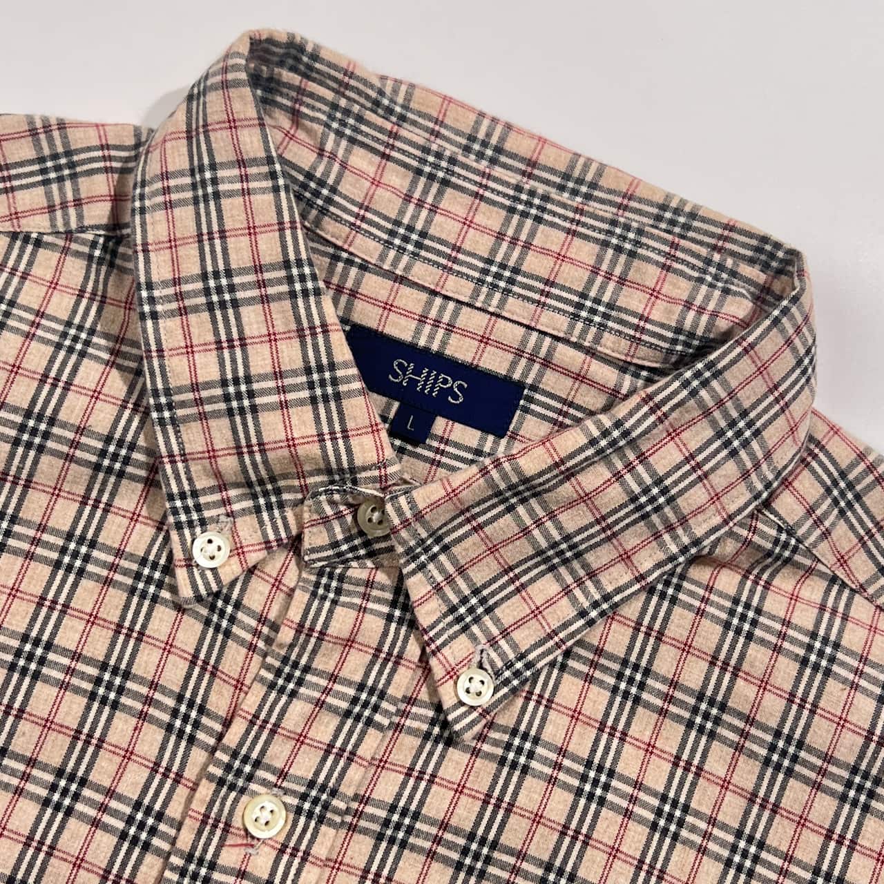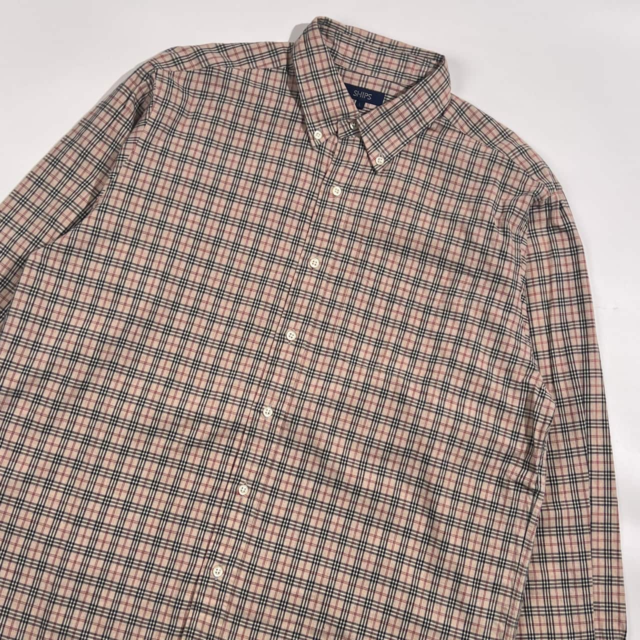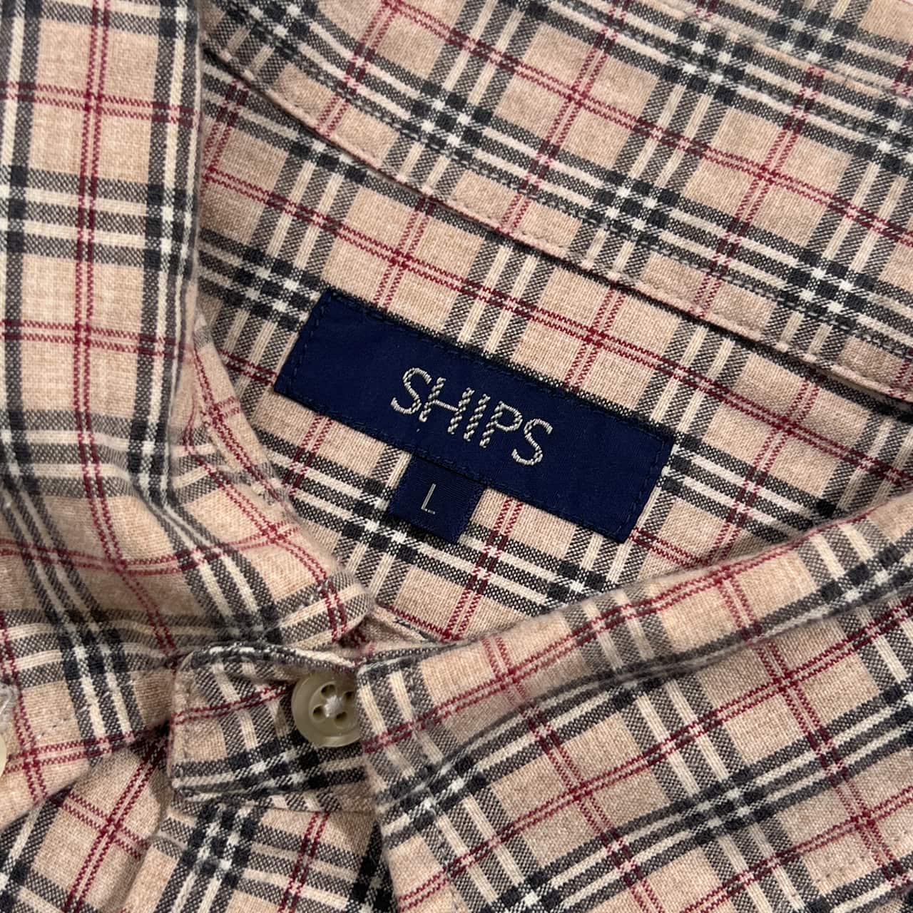 SHIPS シップス チェック BD ボタンダウン 長袖 シャツ L/ベージュ系 メンズ