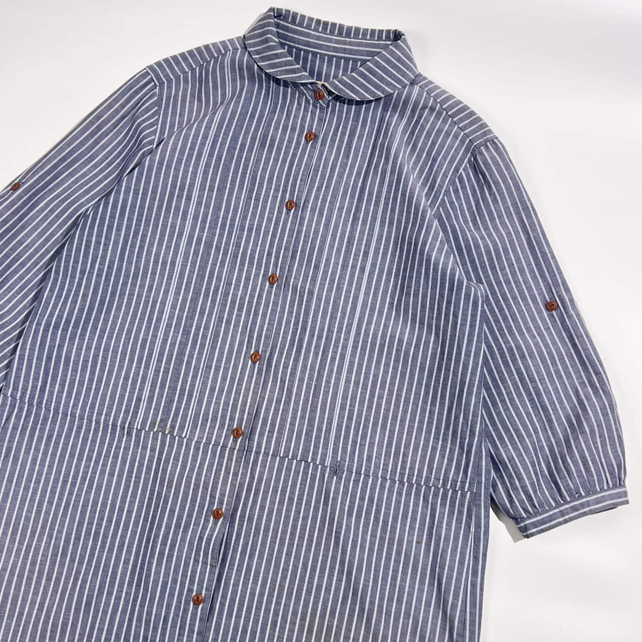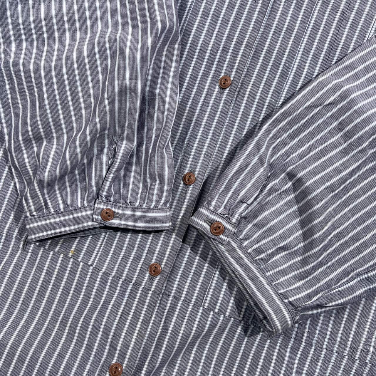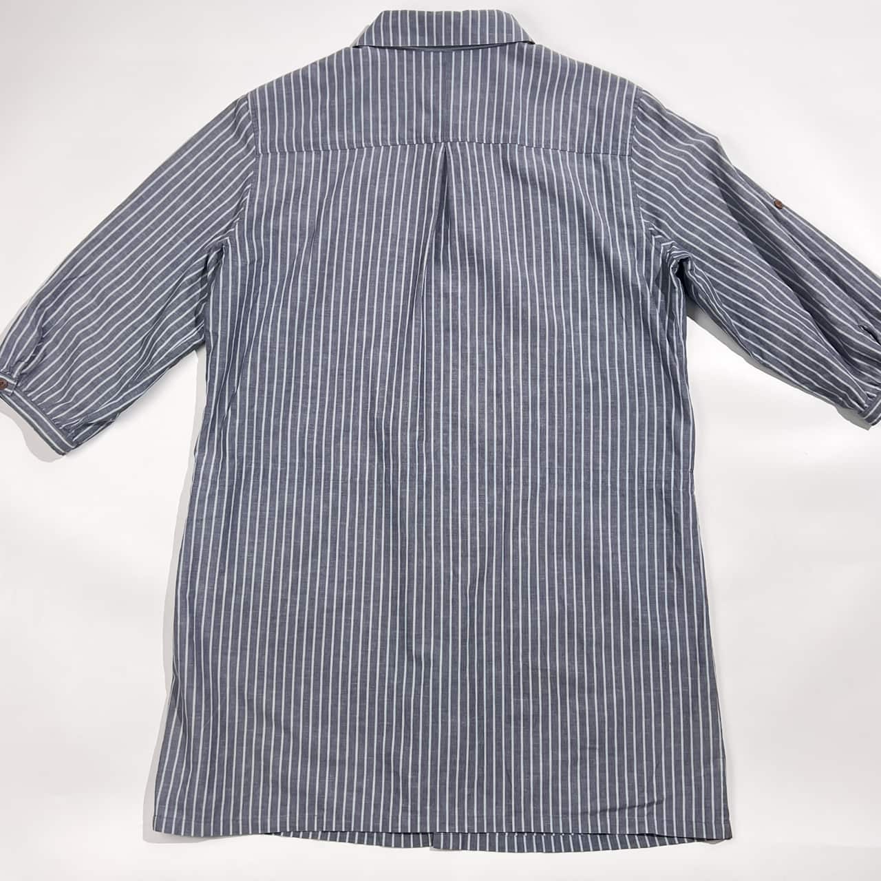 リネン混 Crocodile クロコダイル ストライプ 7分袖 チュニック シャツ LL/レディース