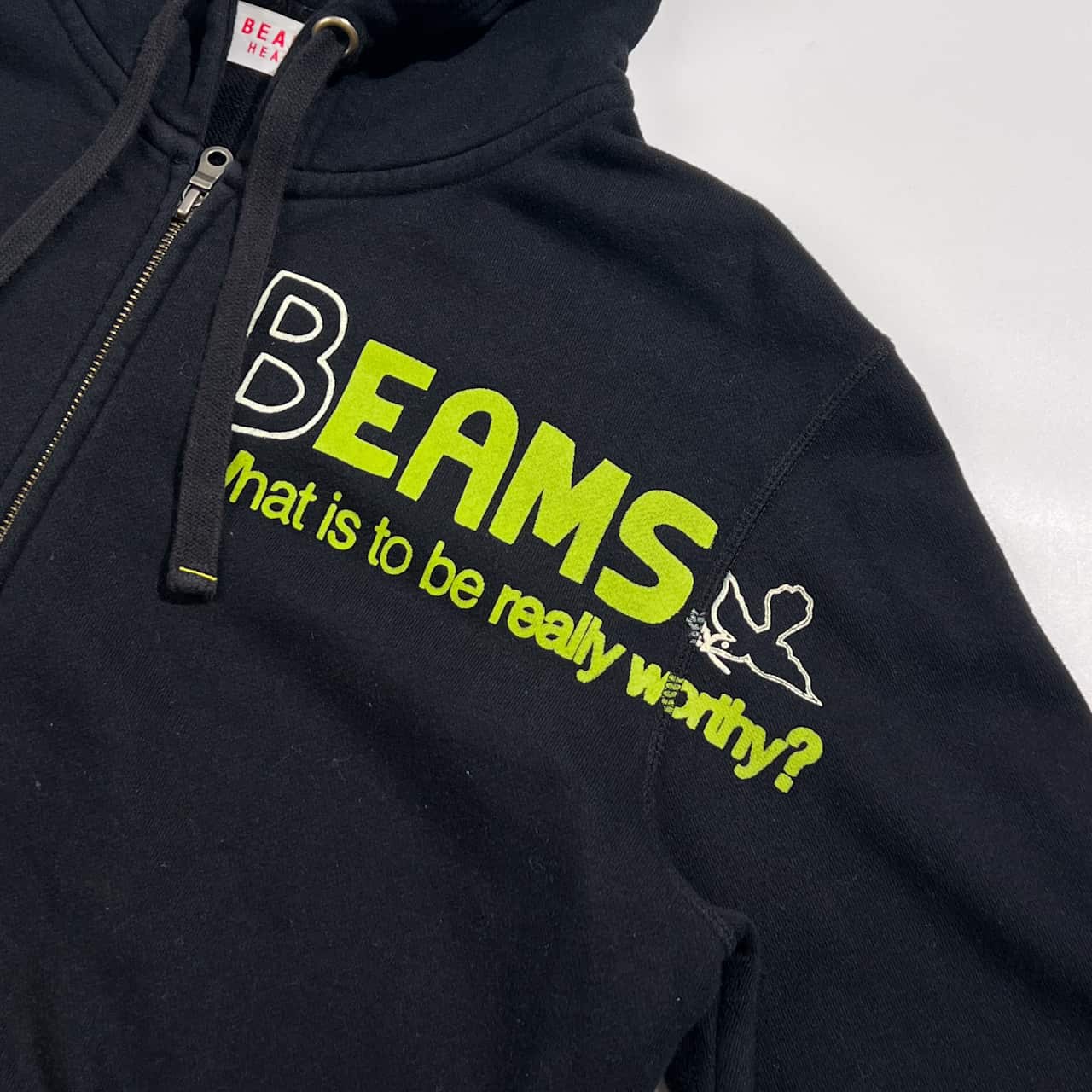 BEAMS HEART ビームスハート プリントデザイン ジップアップ パーカー L/ブラック系 メンズ