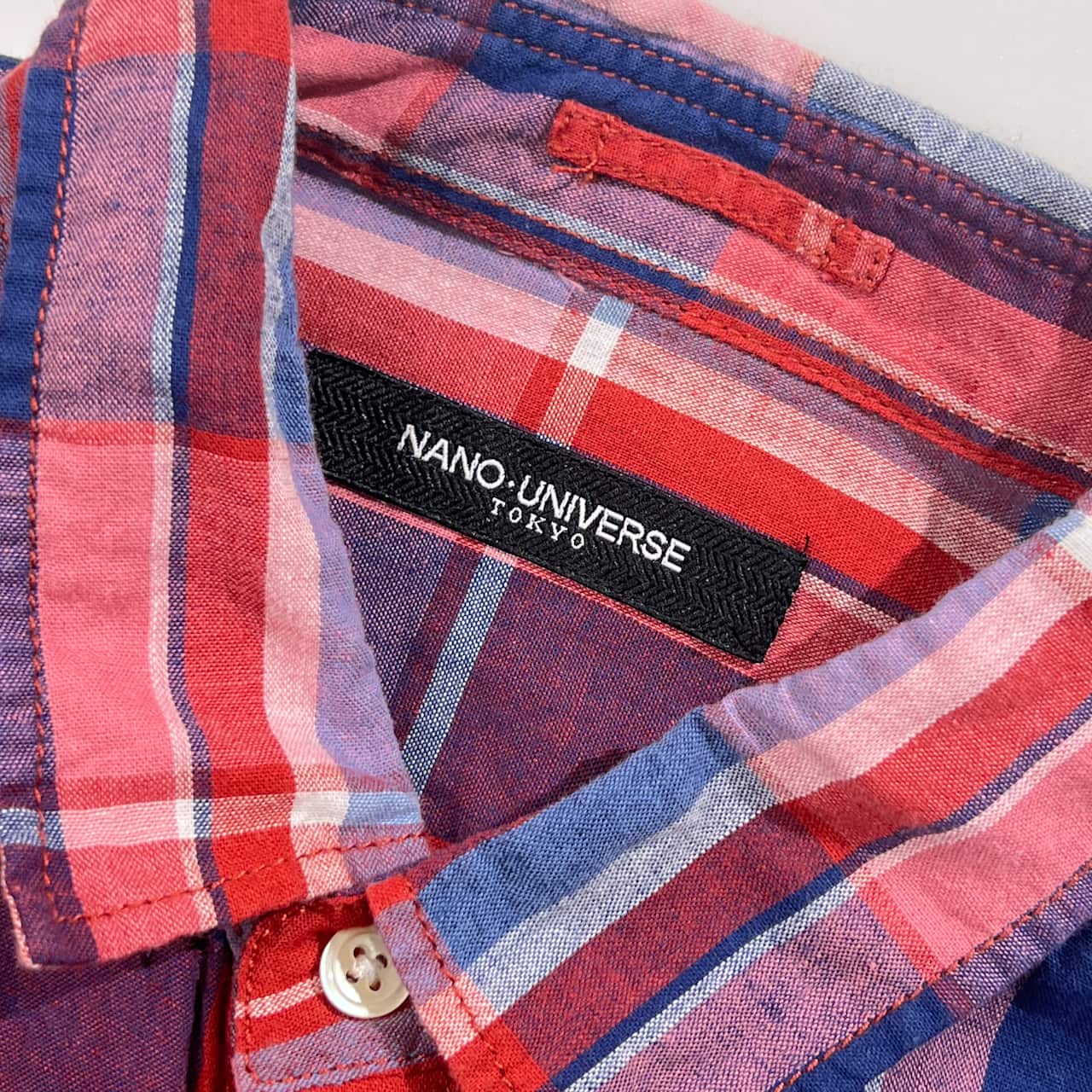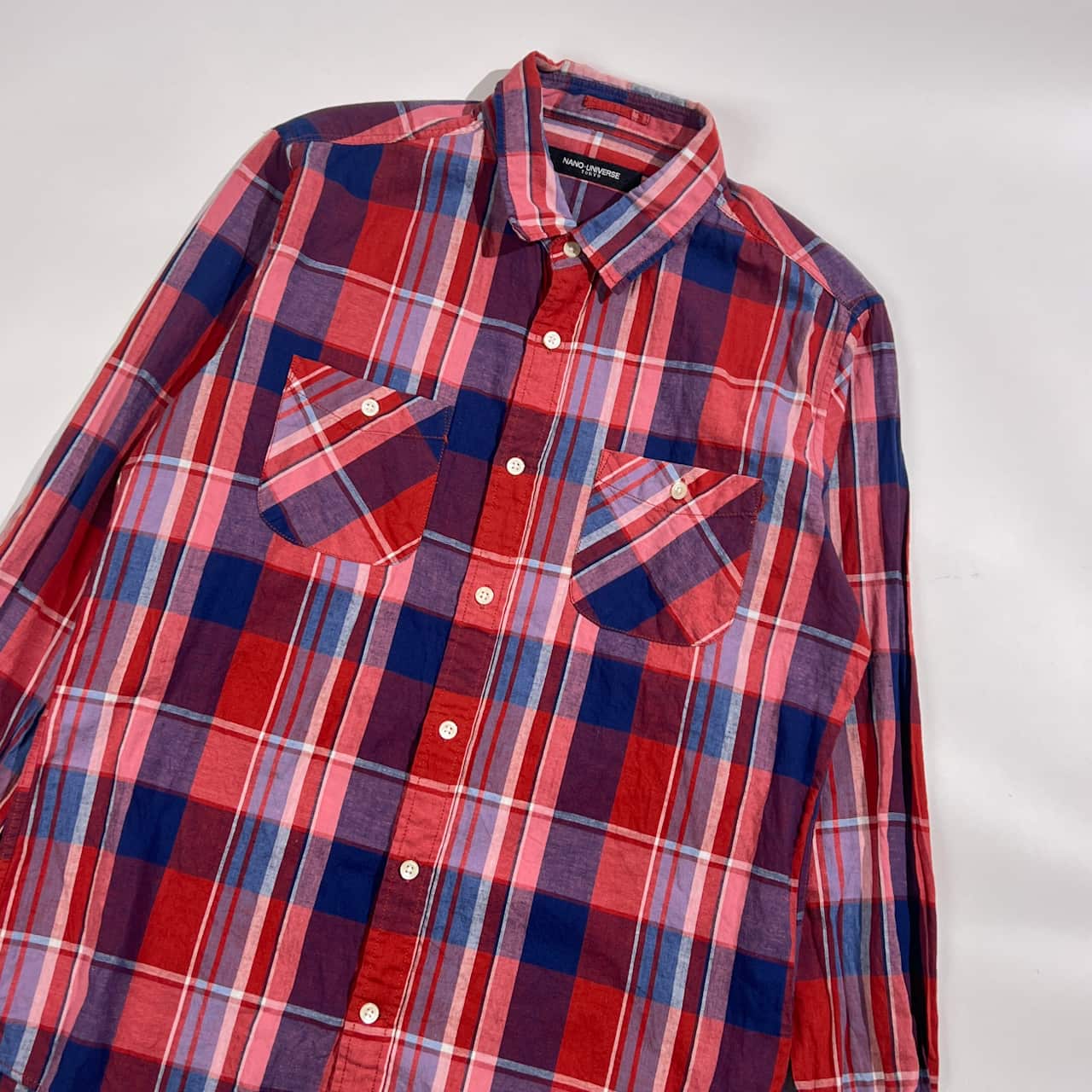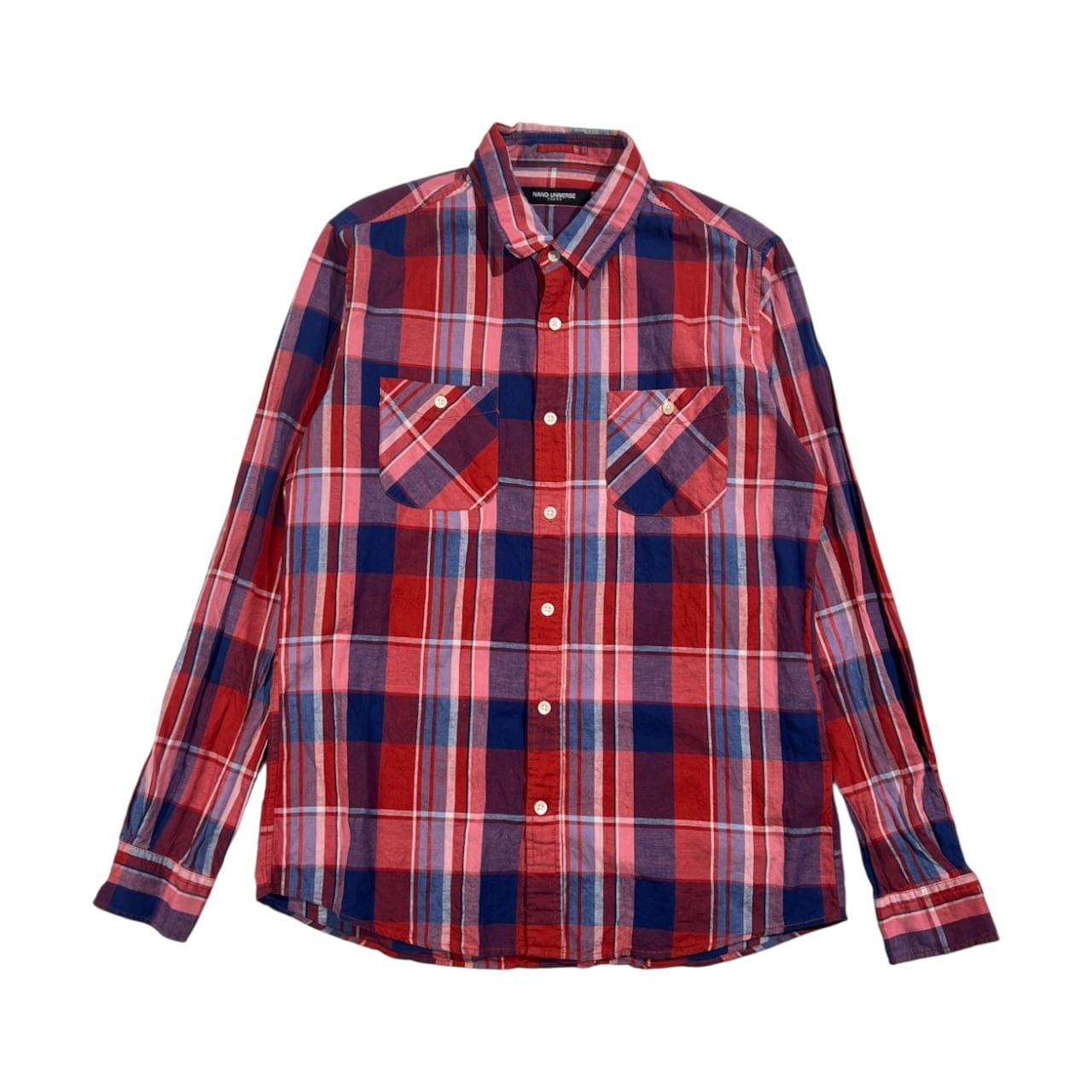リネン混 NANO UNIVERSE ナノユニバース チェック柄 長袖シャツ L/レッド×ネイビー系 レディース