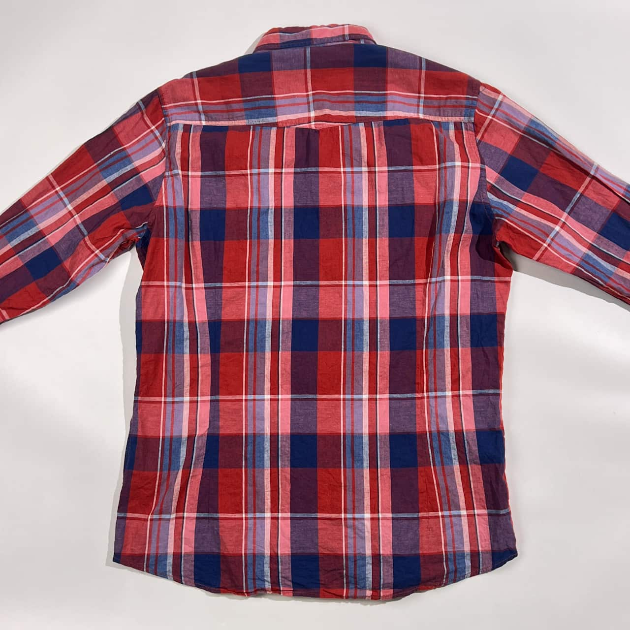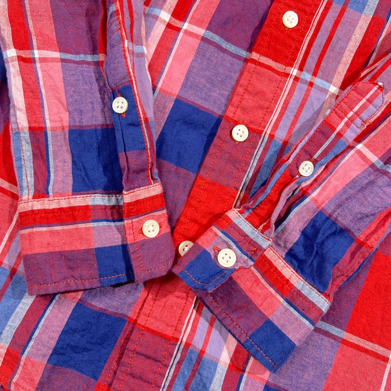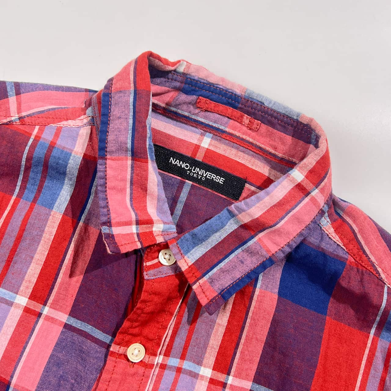 リネン混 NANO UNIVERSE ナノユニバース チェック柄 長袖シャツ L/レッド×ネイビー系 レディース