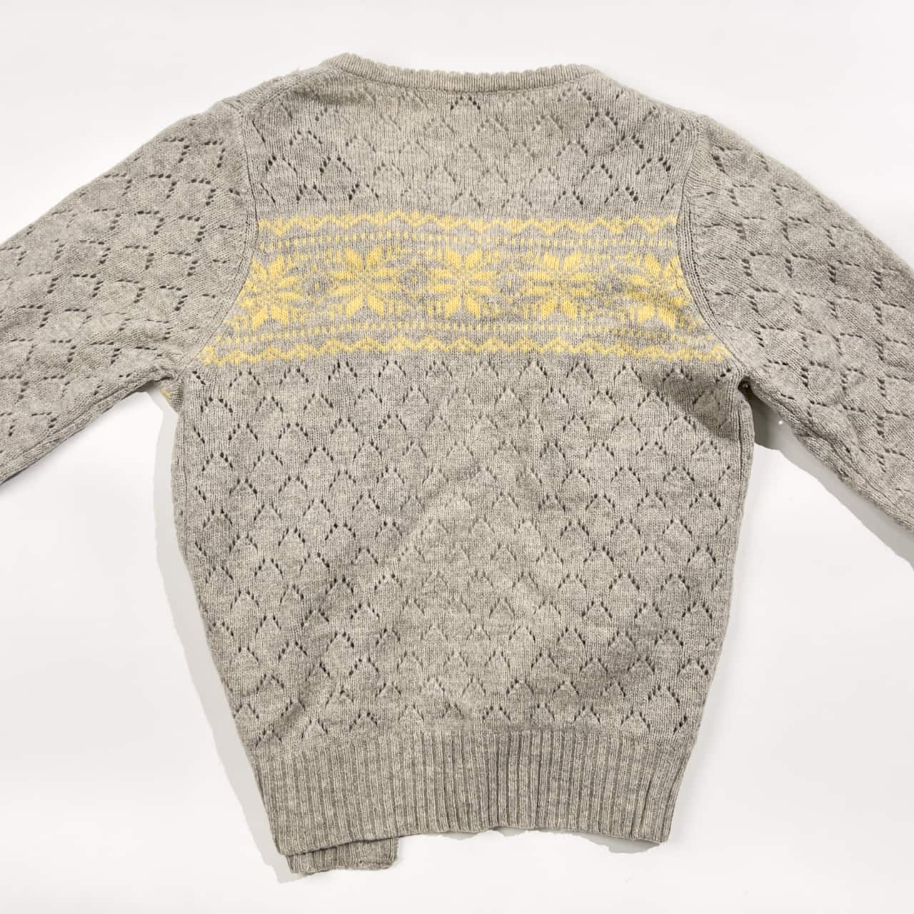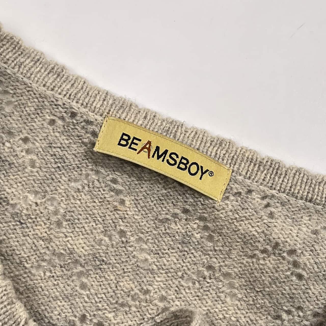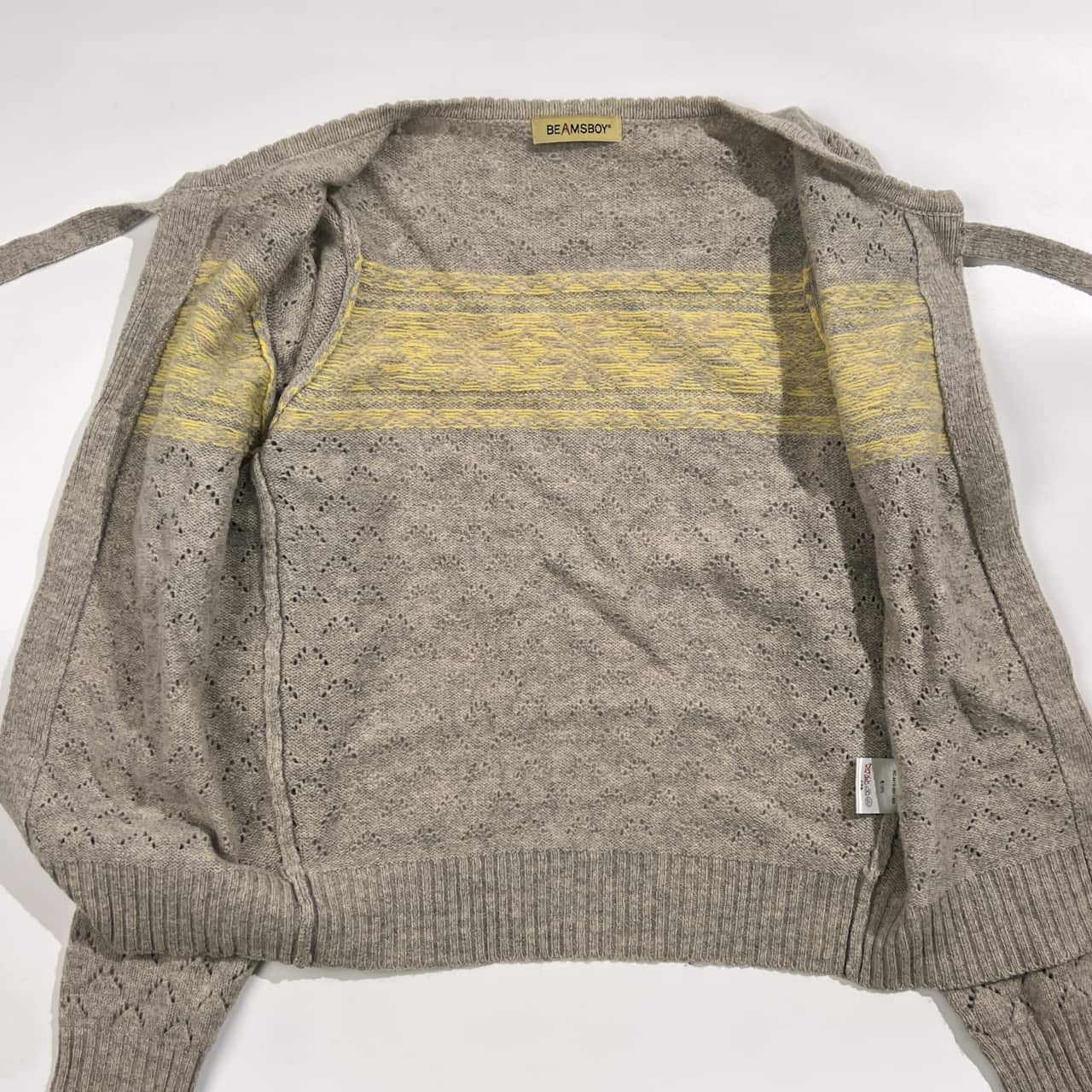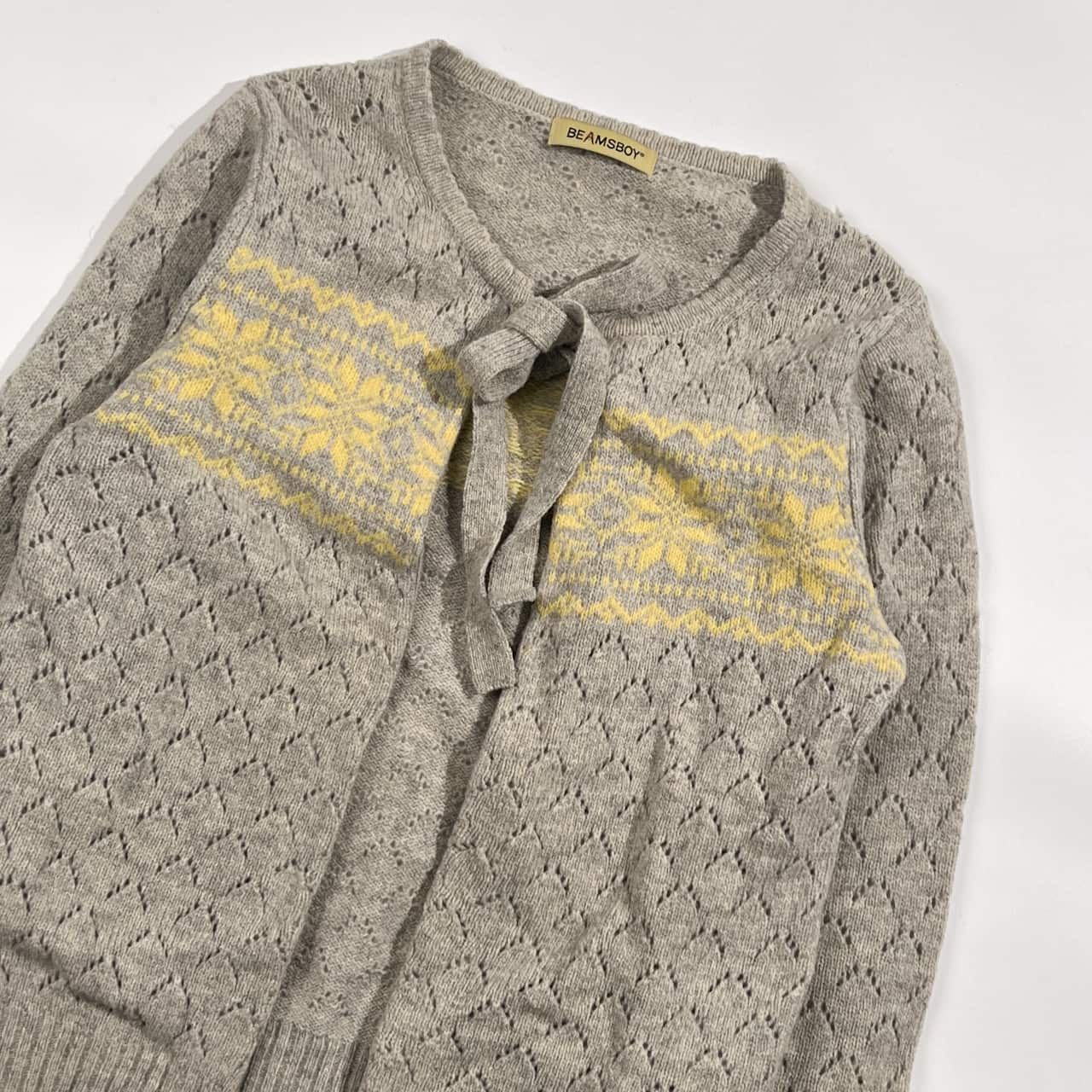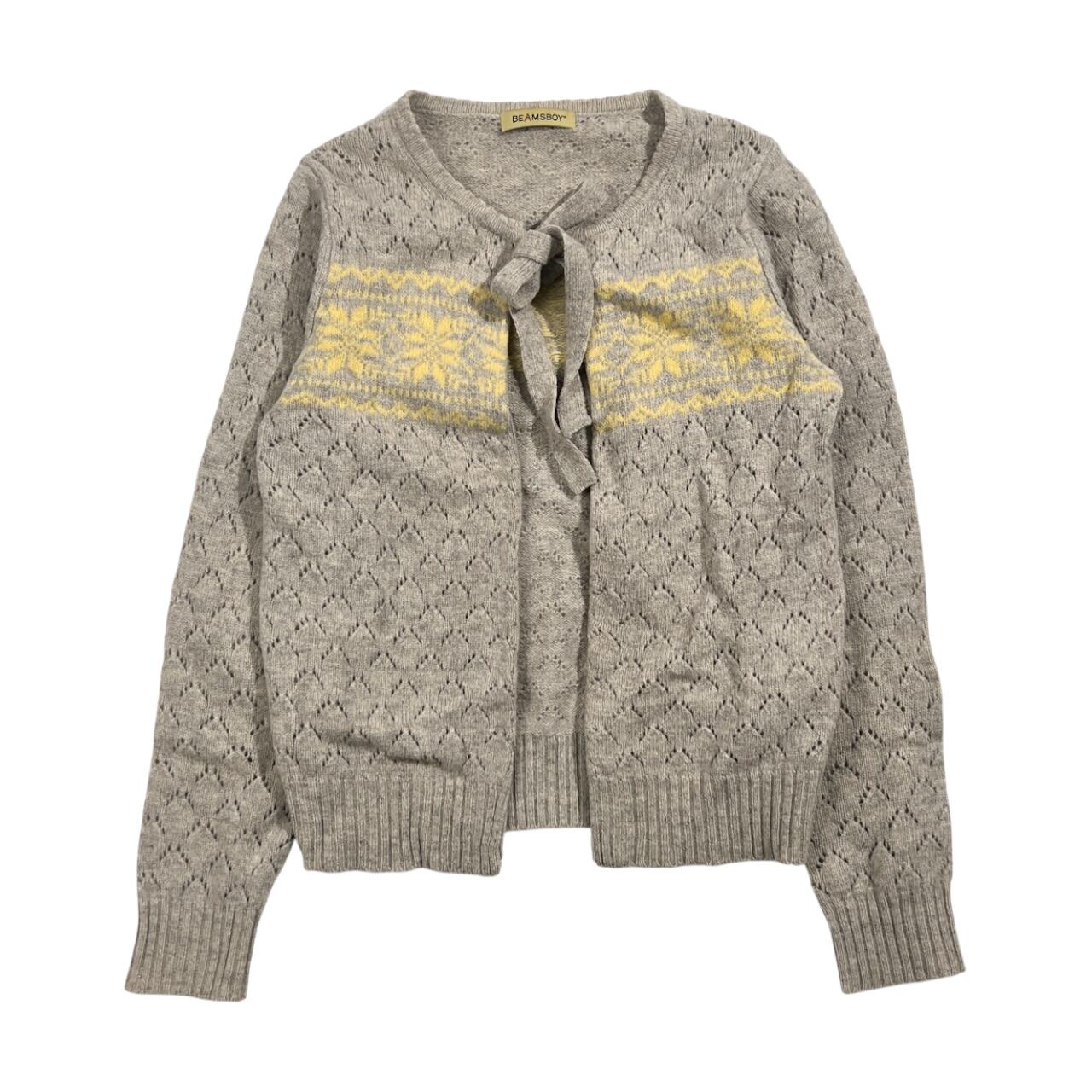 BEAMS BOY ビームスボーイ ウール100% ノルディック柄 リボン ウール ニット カーディガン /グレー系 レディース