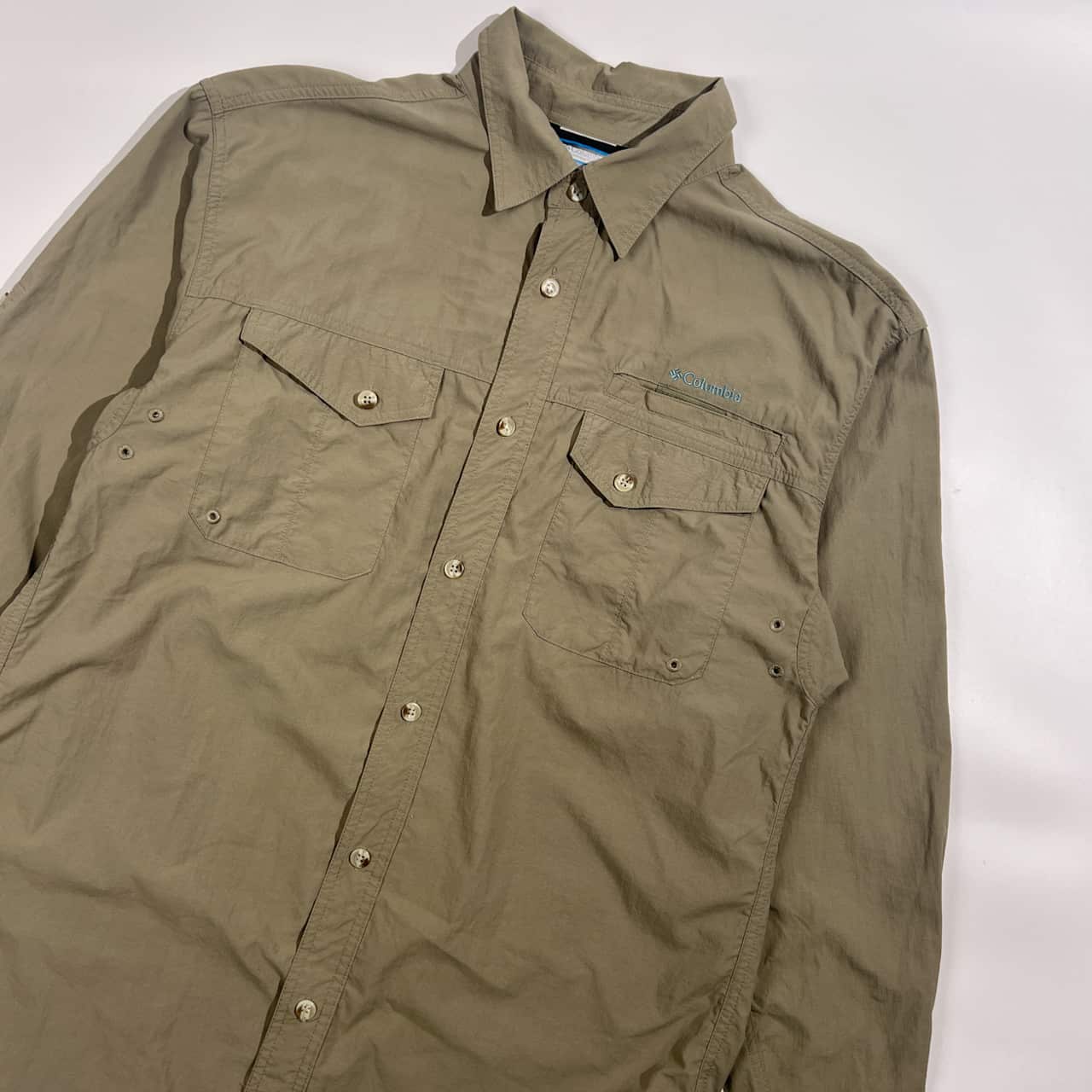 Columbia コロンビア OMNI-WICK ナイロン 長袖 ワークシャツ XL/カーキ ベージュ系 メンズ アウトドア フィッシング キャンプ 登山
