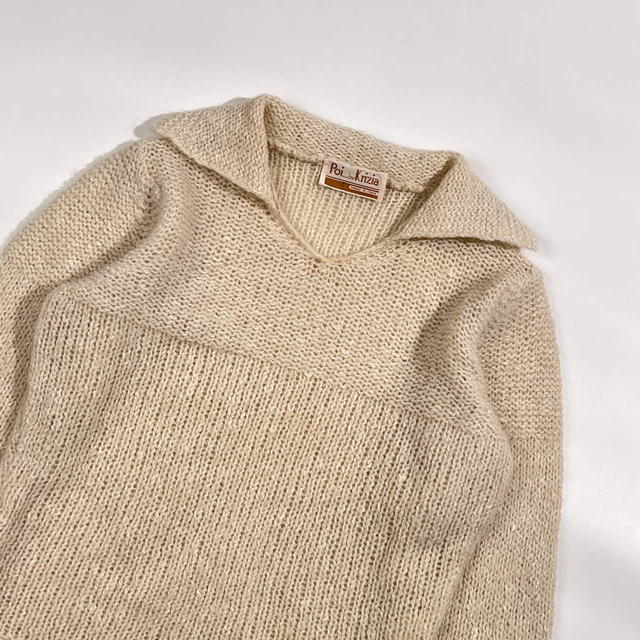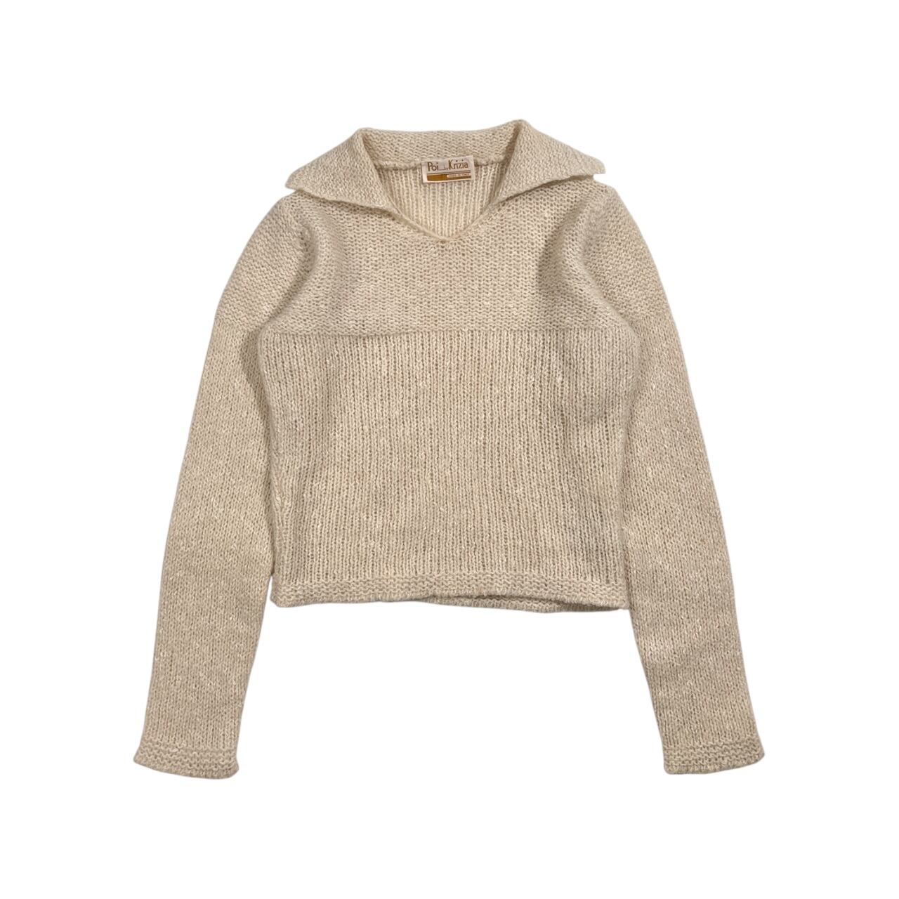 シルク モヘヤ混 イタリア製 Poi by Krizia クリツィア 襟付き ニット プルオーバー 42/アイボリー系 レディース