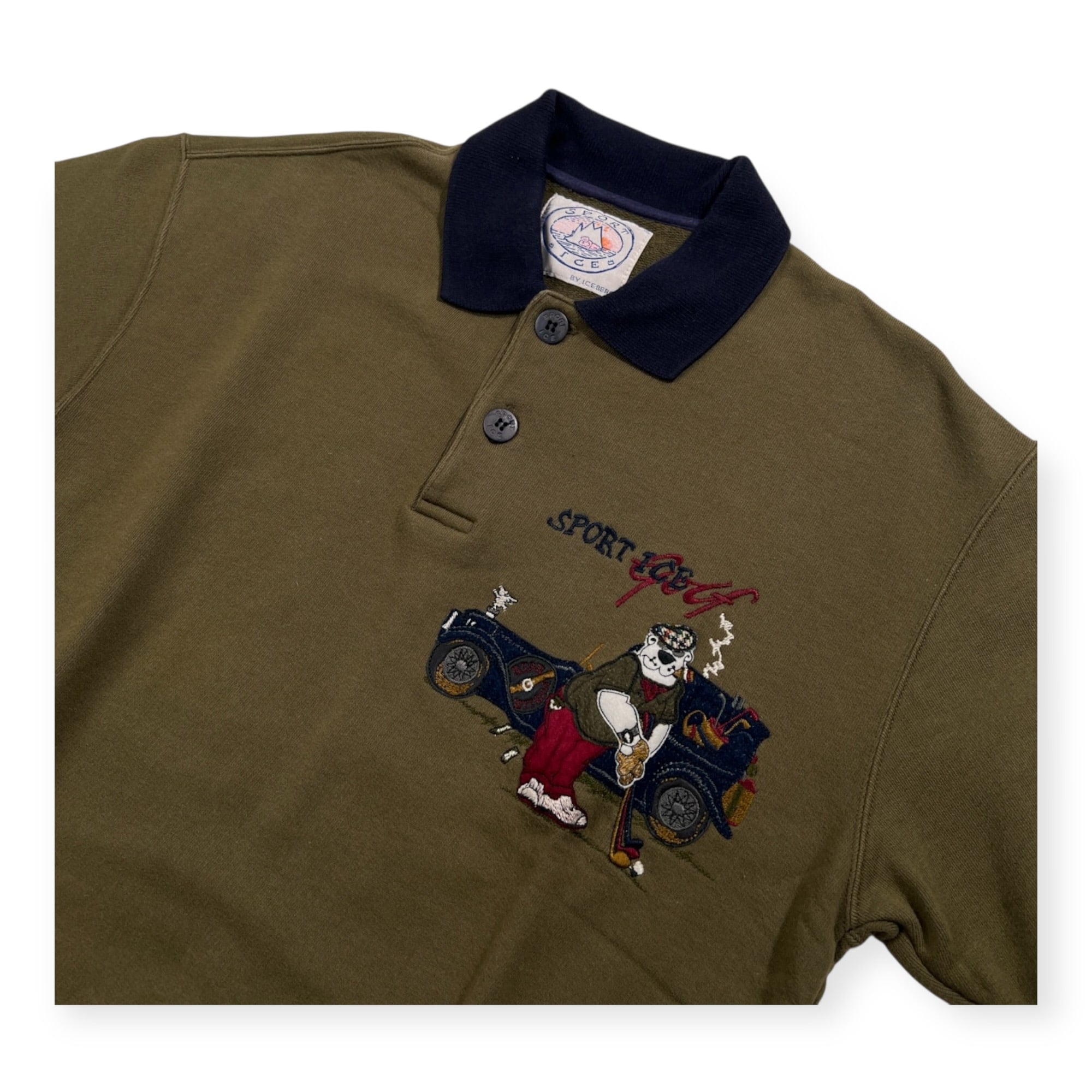 イタリア製 ICEBERG アイスバーグ 半袖 スウェット ポロシャツ サイズ S /カーキ系/ビンテージ