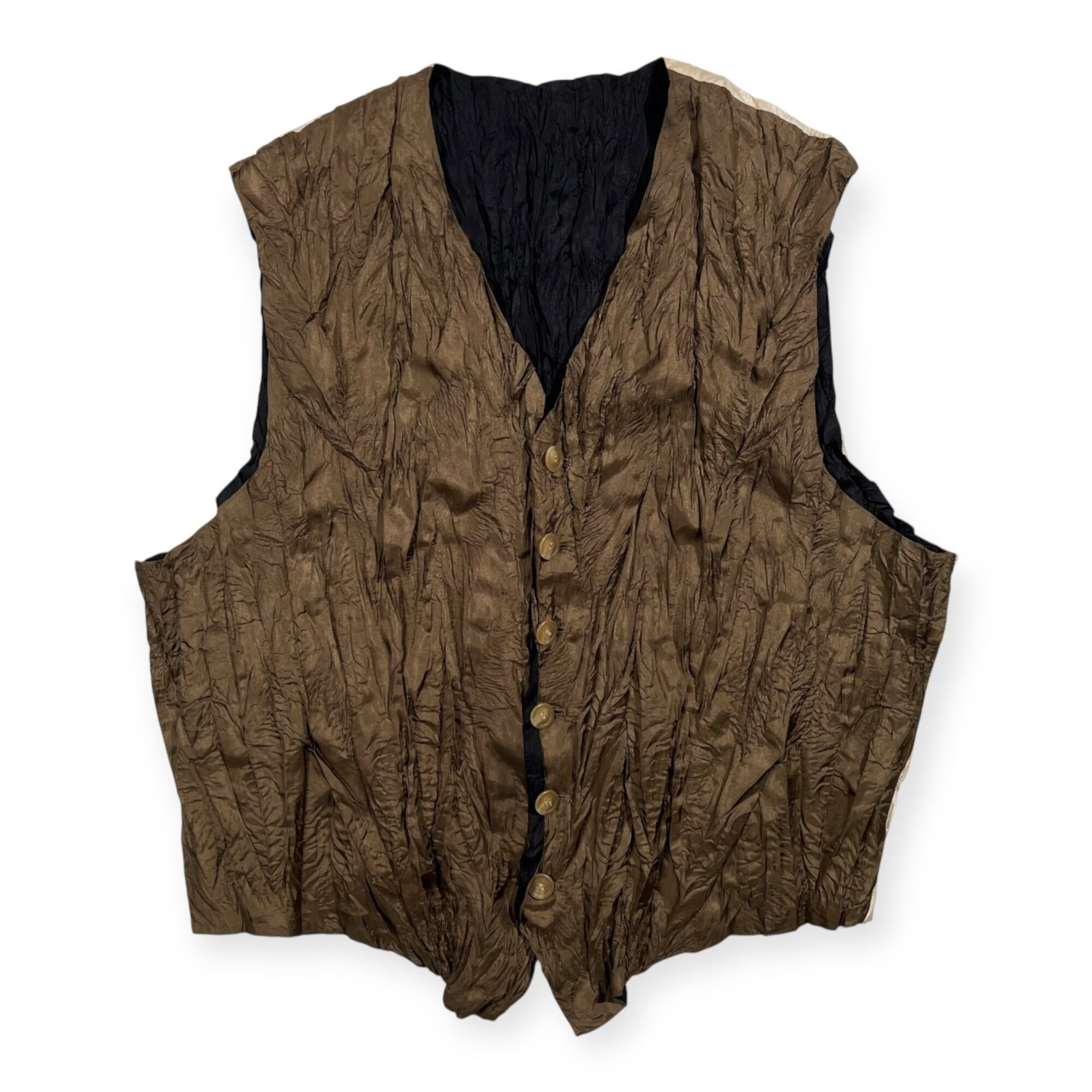 希少 レア ISSEY MIYAKE MEN イッセイミヤケ メン シワ加工 ジレ ベスト /カーキブラウン系/アーカイブ/ビンテージ