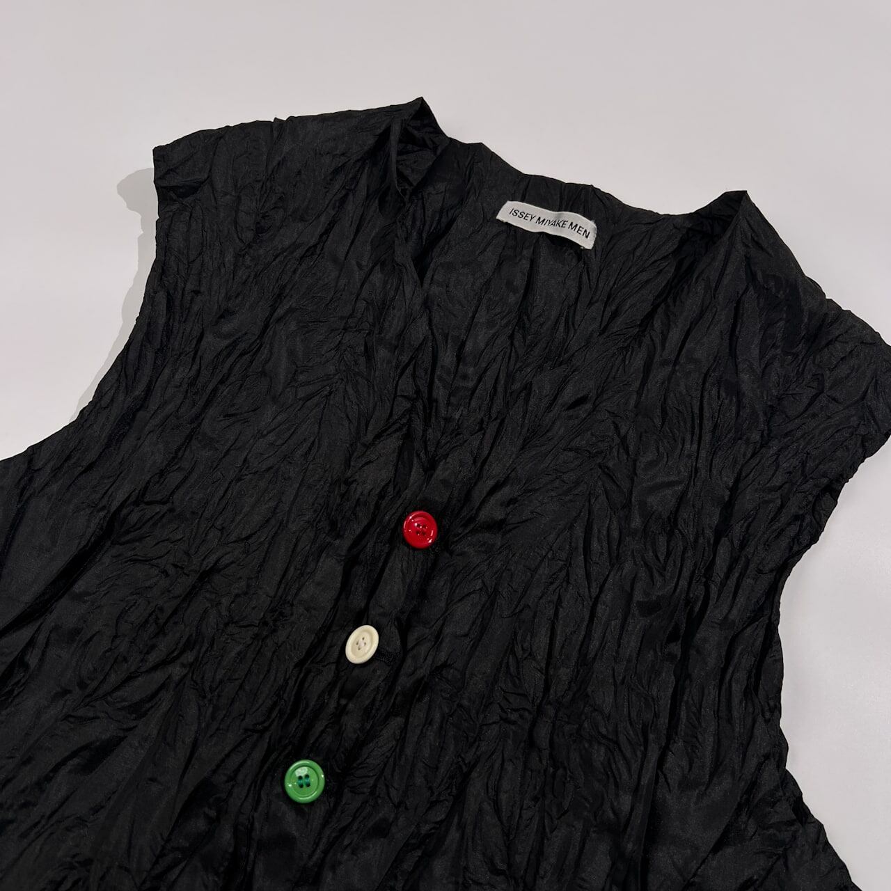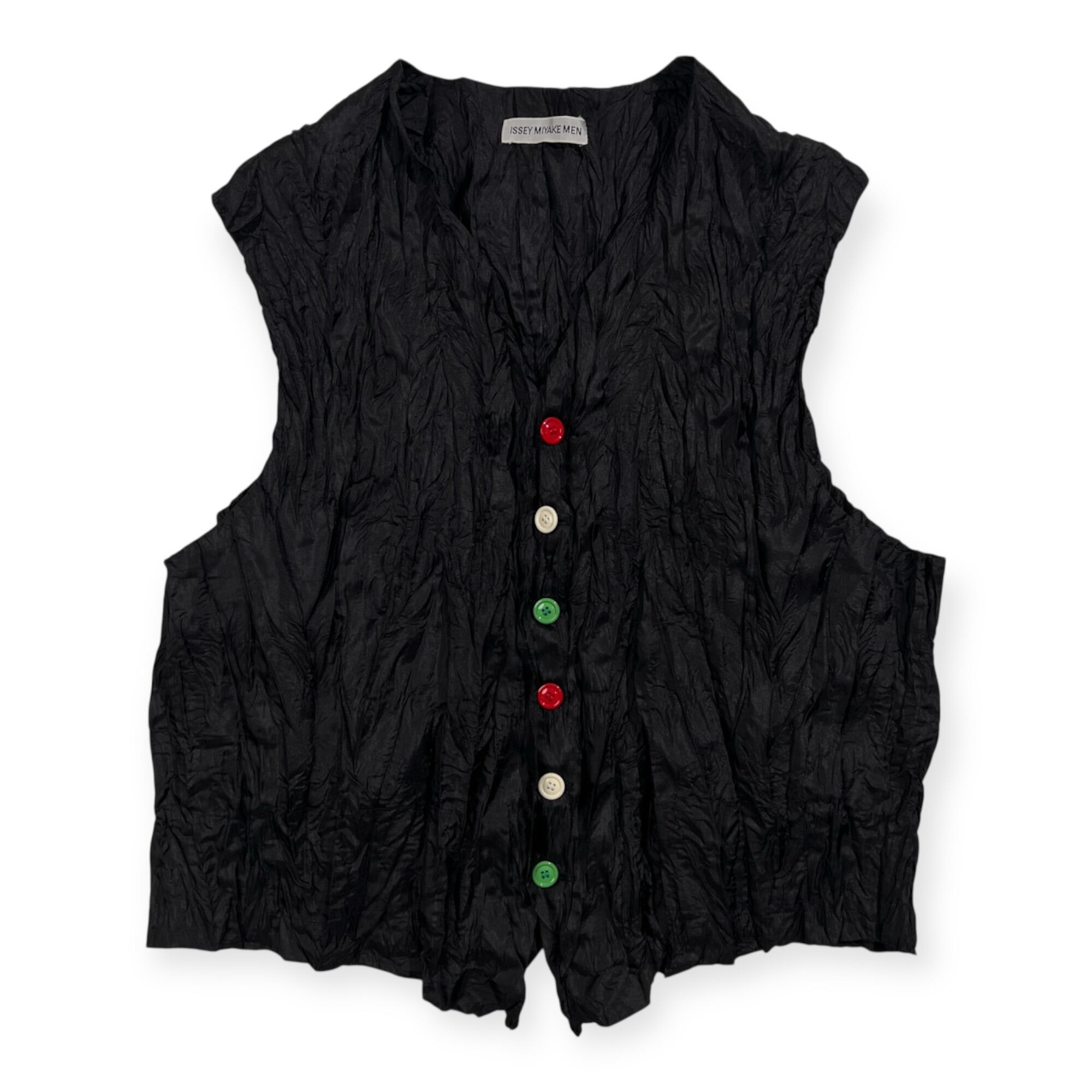 希少 レア ISSEY MIYAKE MEN イッセイミヤケ メン シワ加工 カラフルボタン ジレ ベスト サイズ M /ブラック/ビンテージ
