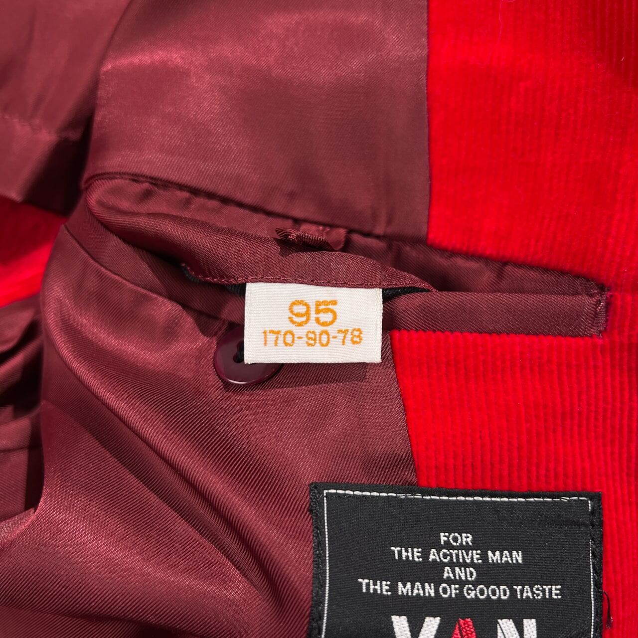 当時物 VAN JAC ヴァンヂャケット コーデュロイ ピケ 段返3B テーラードジャケット サイズ 95(170-90-78) /レッド/ビンテージ