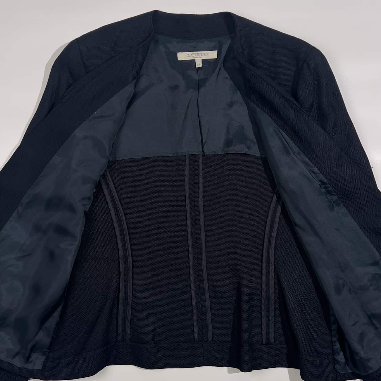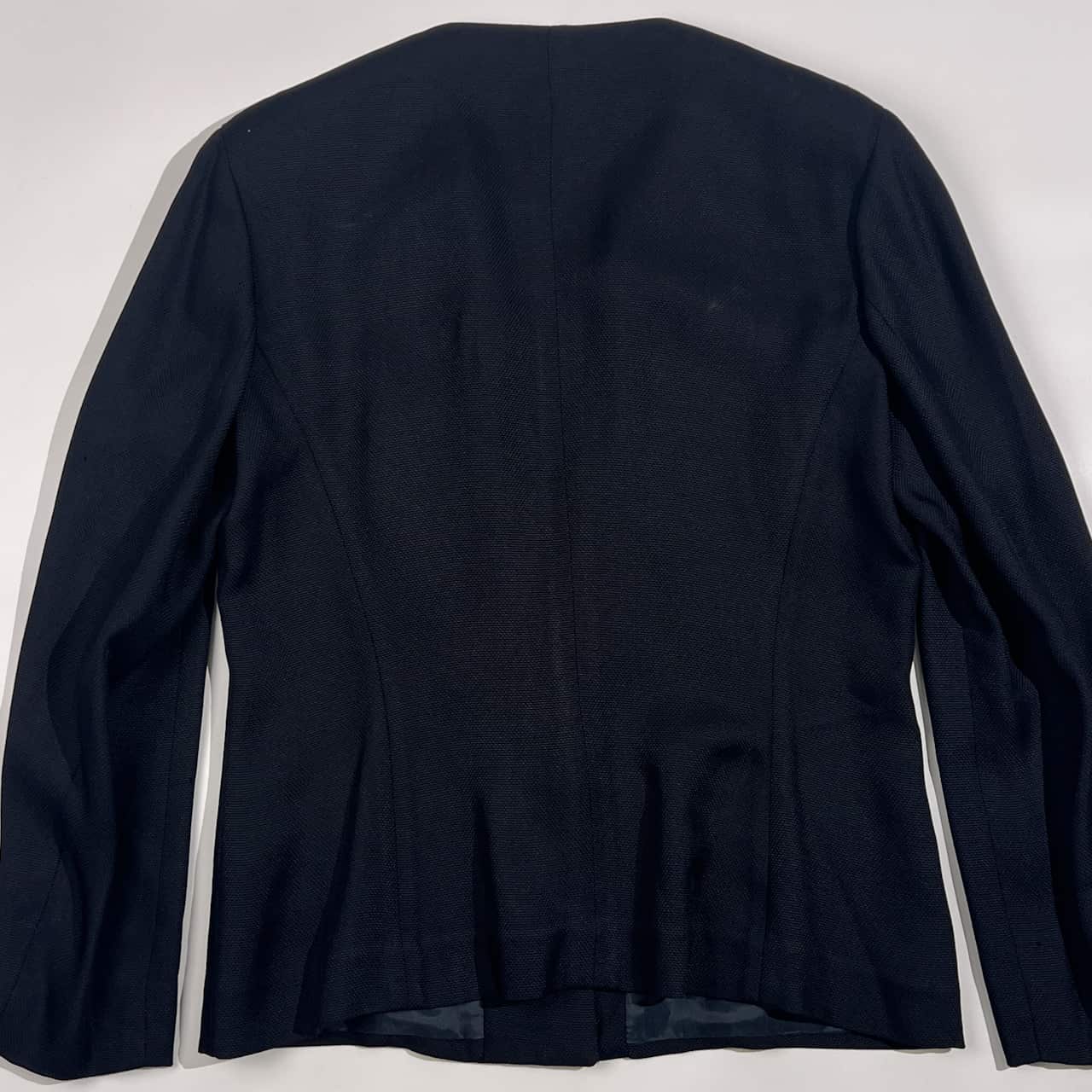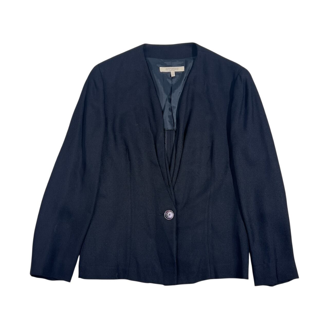 イタリア製 ERREUNO エレウノ ノーカラー Vネック ジャケット 44/ネイビー系 レディース