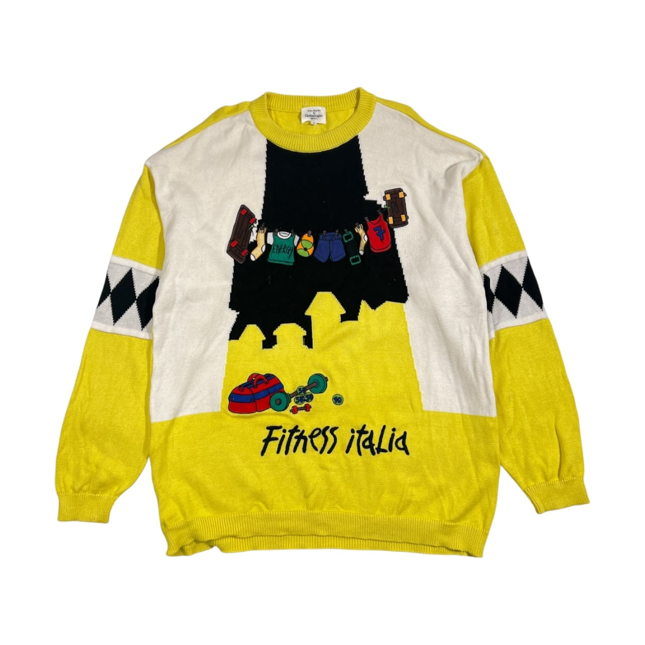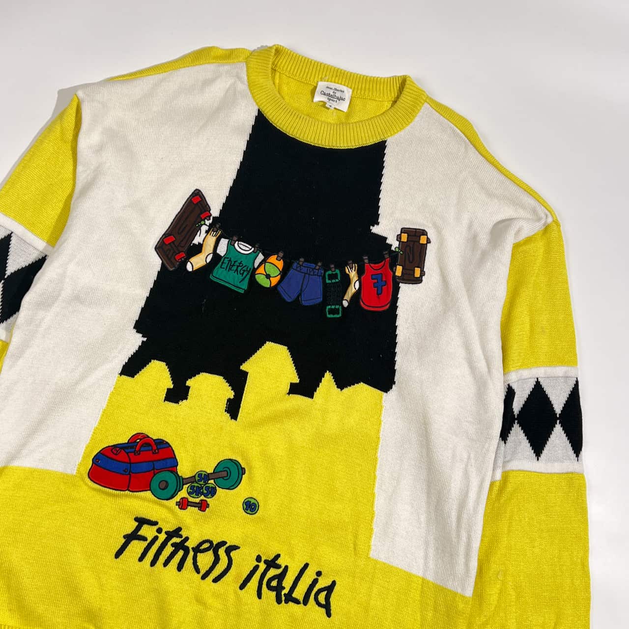 Jean Charles de Castelbajac カステルバジャック デザイン コットン ニット セーター 4/イエロー系 メンズ ゴルフ