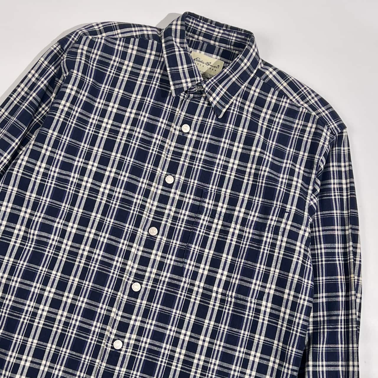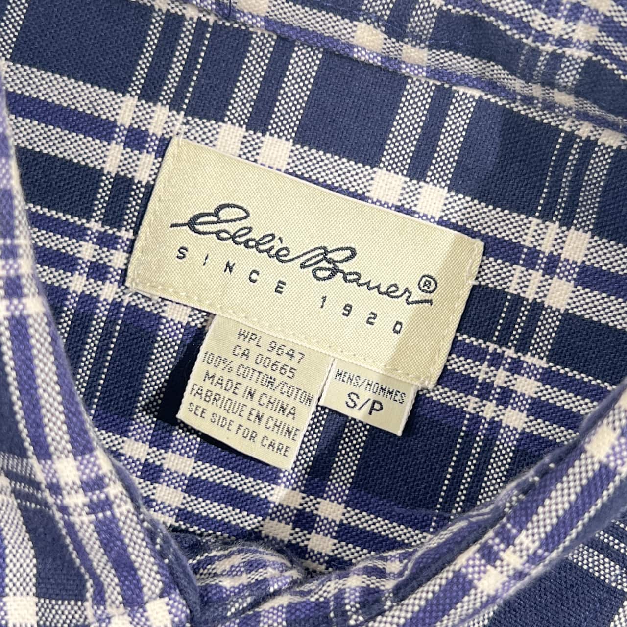 Eddie Bauer エディーバウアー チェック柄 オックスフォード 長袖シャツ S/ネイビー系 メンズ