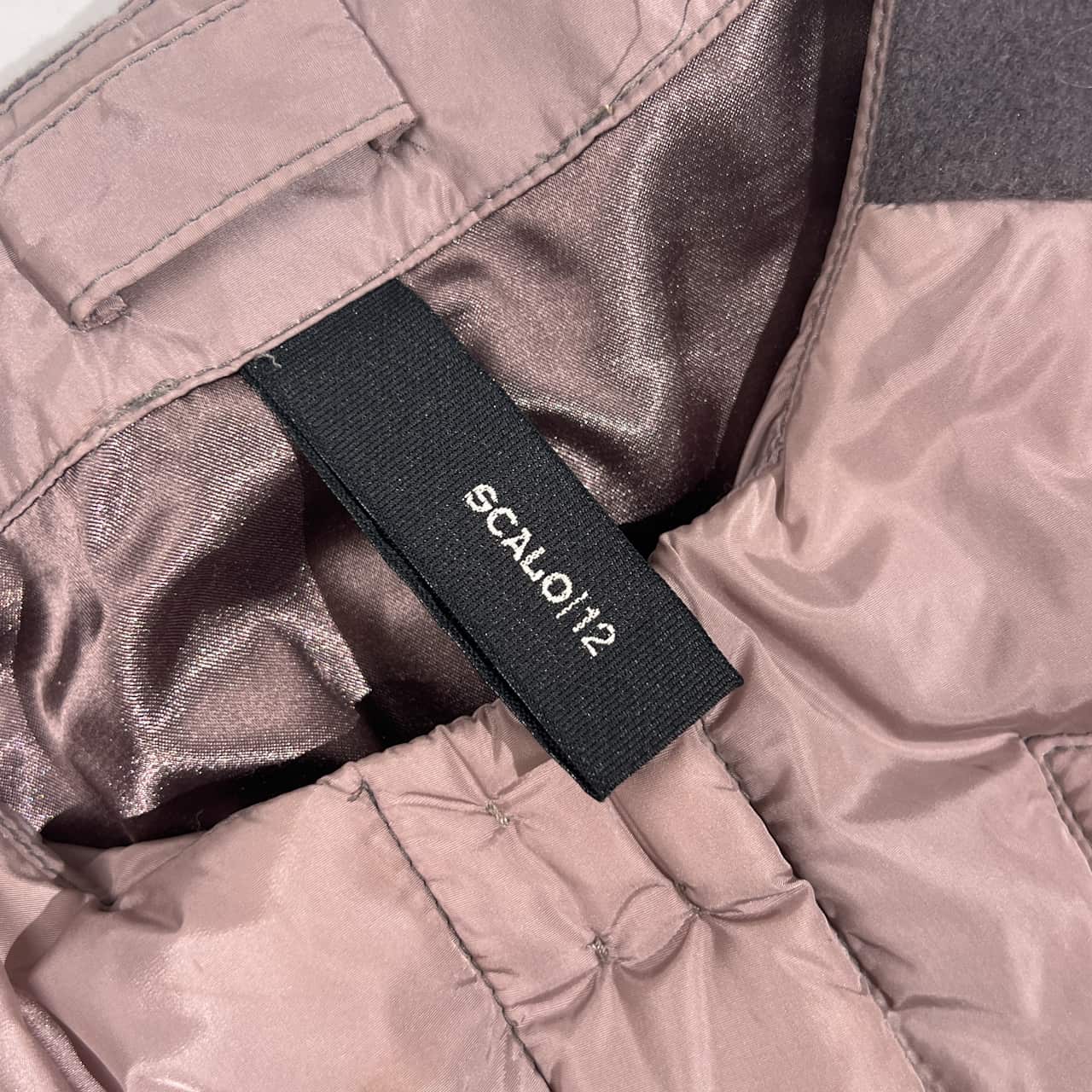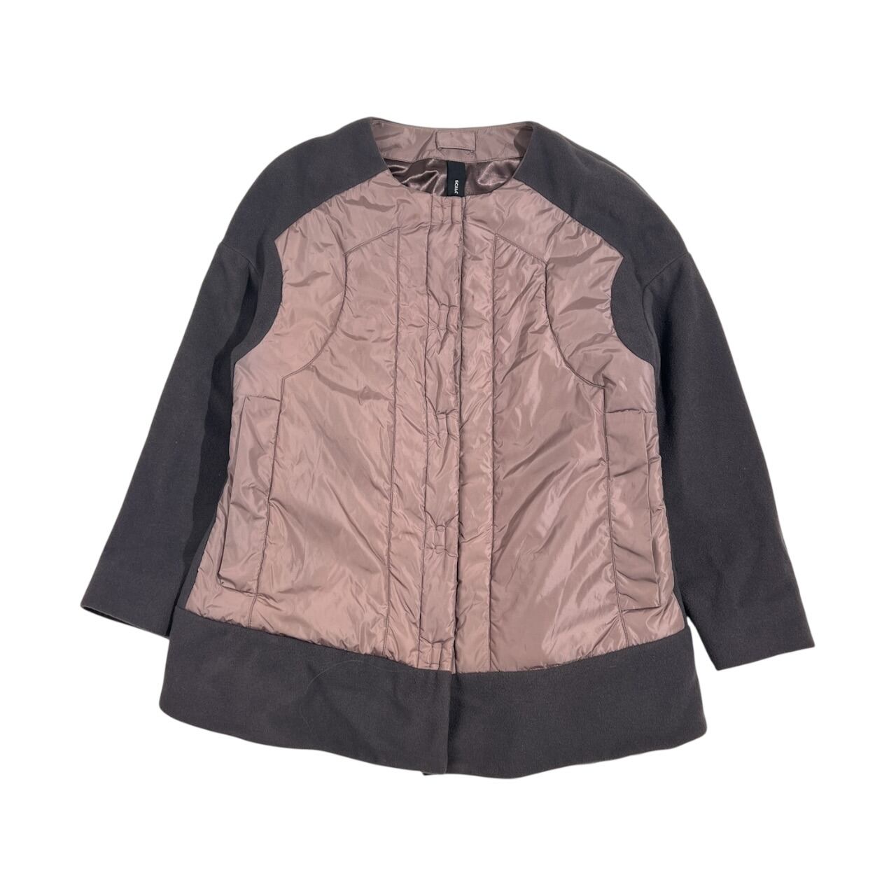 イタリア製 SCALO 12 スカーロ 中綿 切替 ノーカラー ジャケット 42/くすみピンク パープル系×グレー レディース エレガント