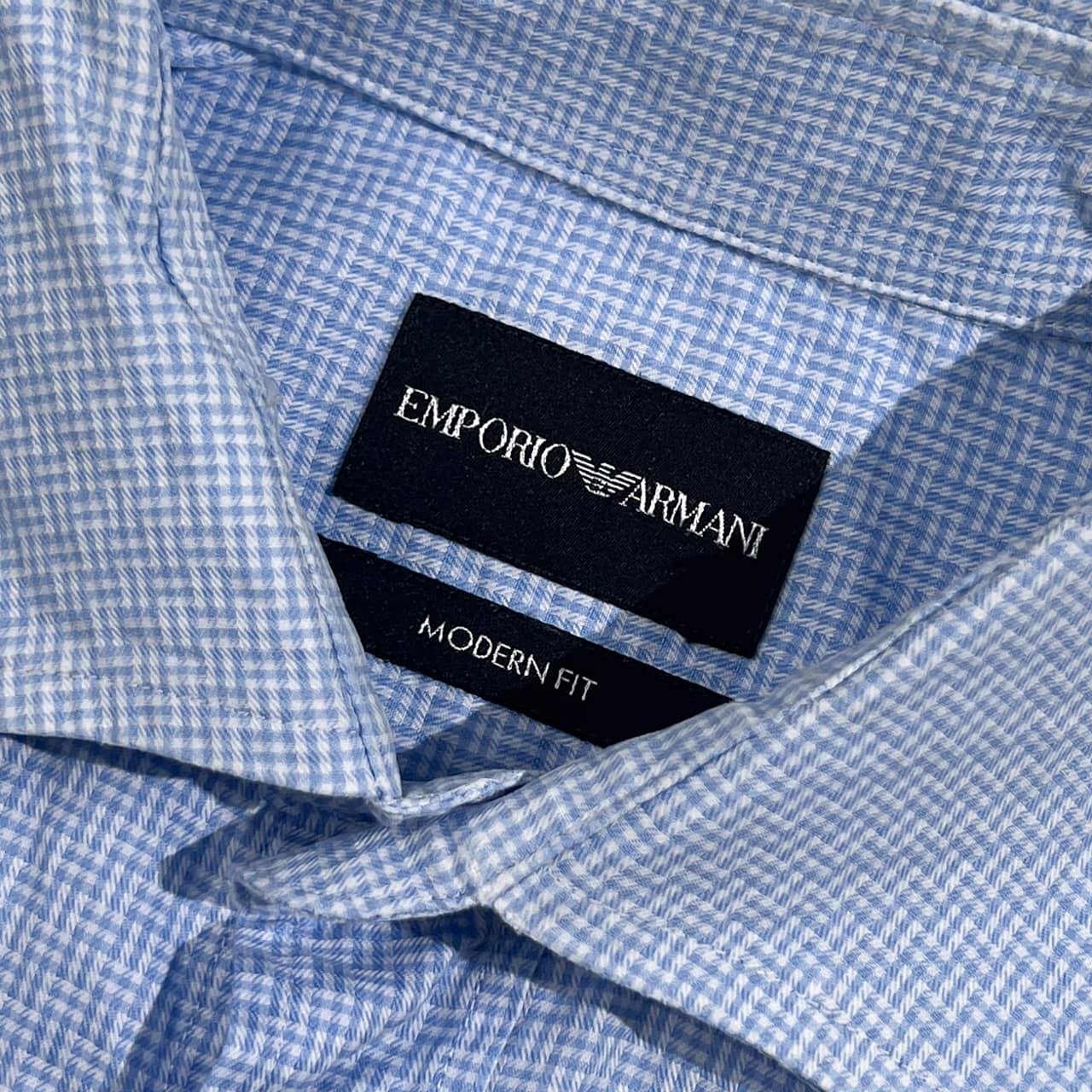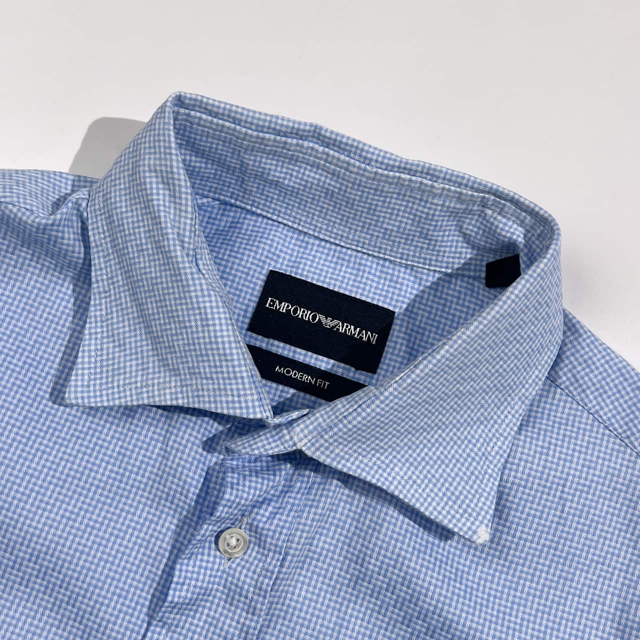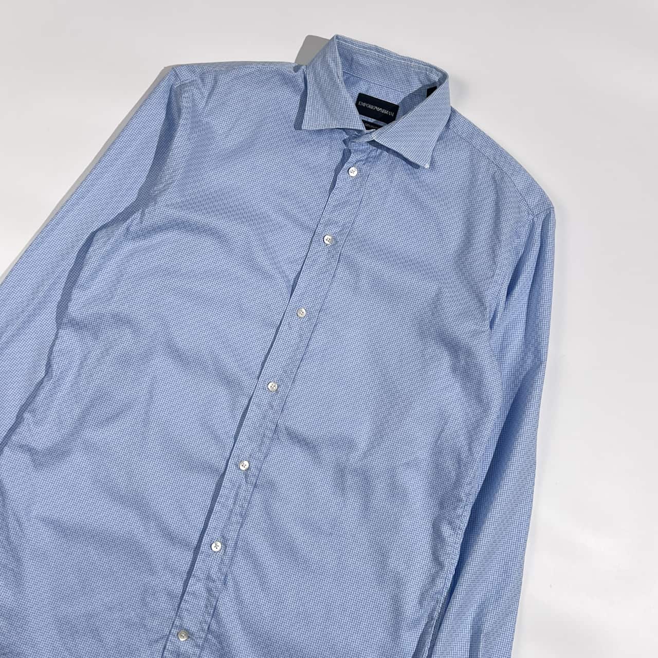 EMPORIO ARMANI エンポリオアルマーニ MODERN FIT 織柄 長袖 ワイシャツ ドレスシャツ 39/15/ 1/2 /ブルー系 メンズ ビジネス