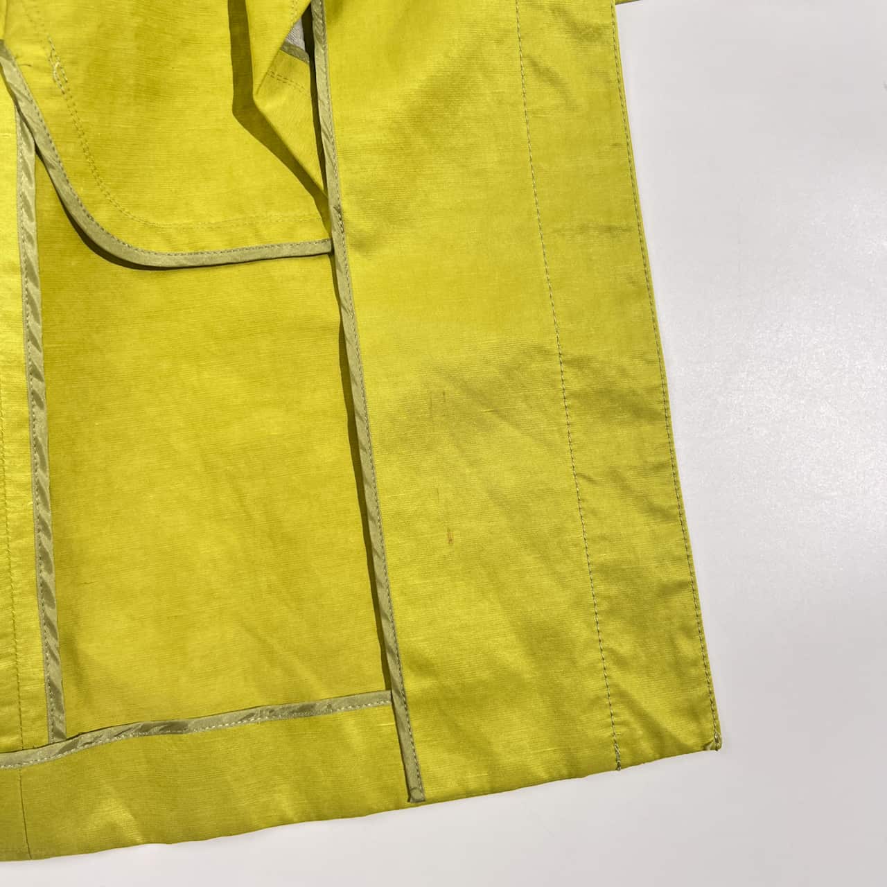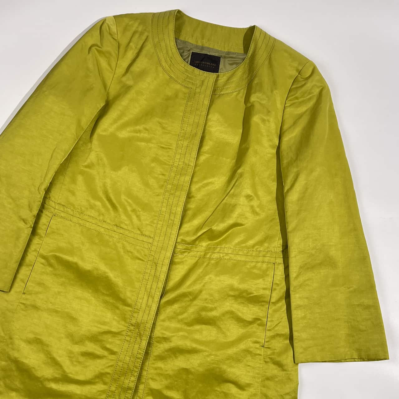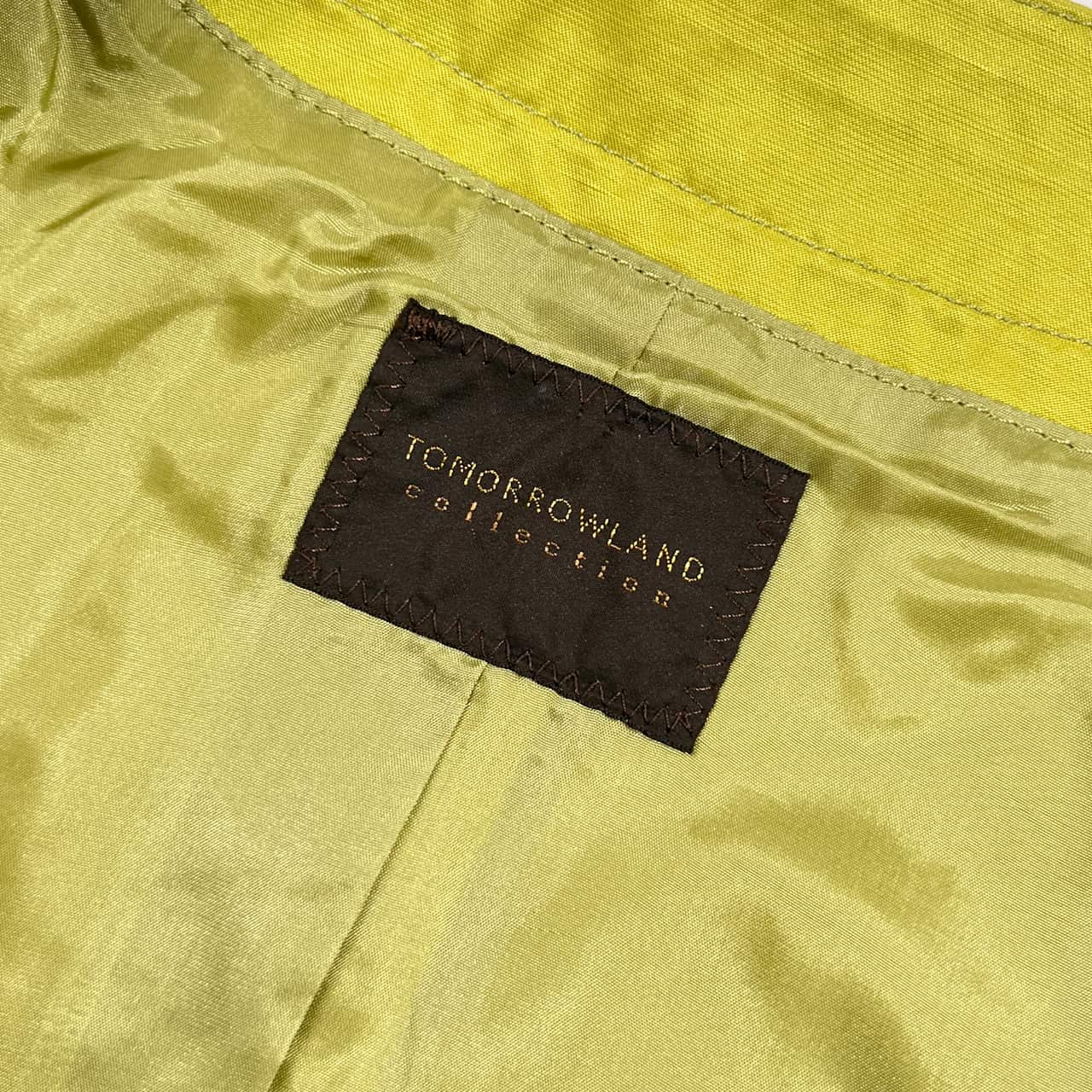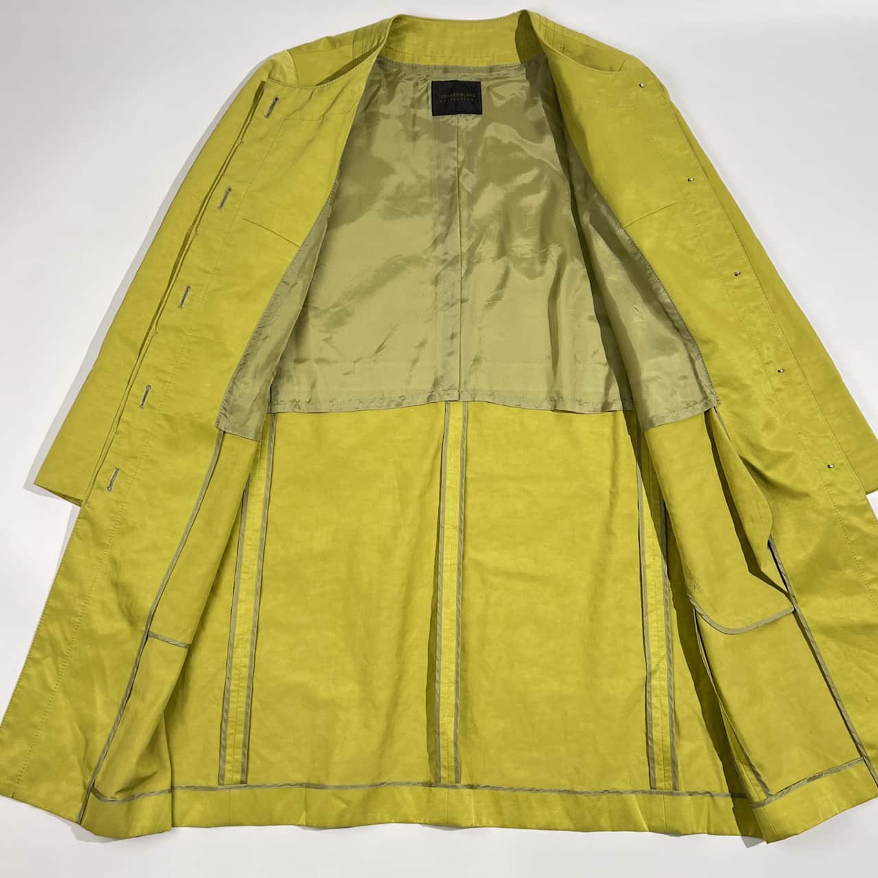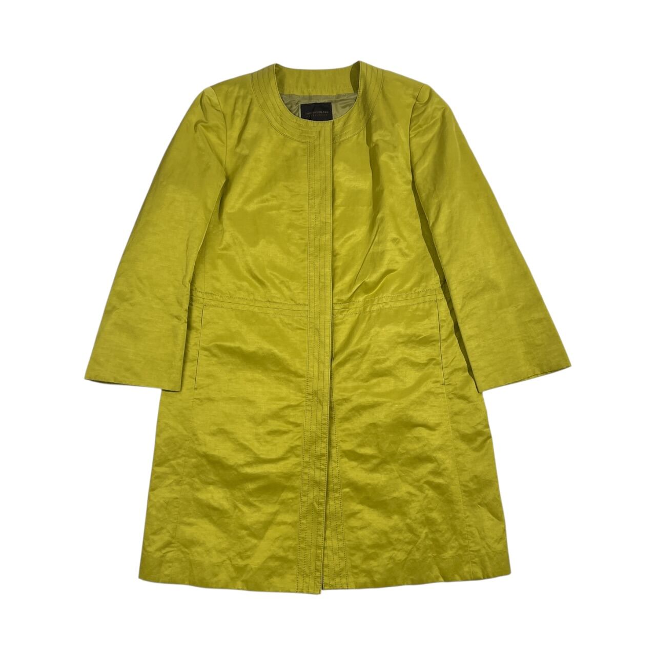 リネン混 TOMORROWLAND collection トゥモローランド 背抜き ノーカラー コート 38/黄緑系 レディース 光沢感