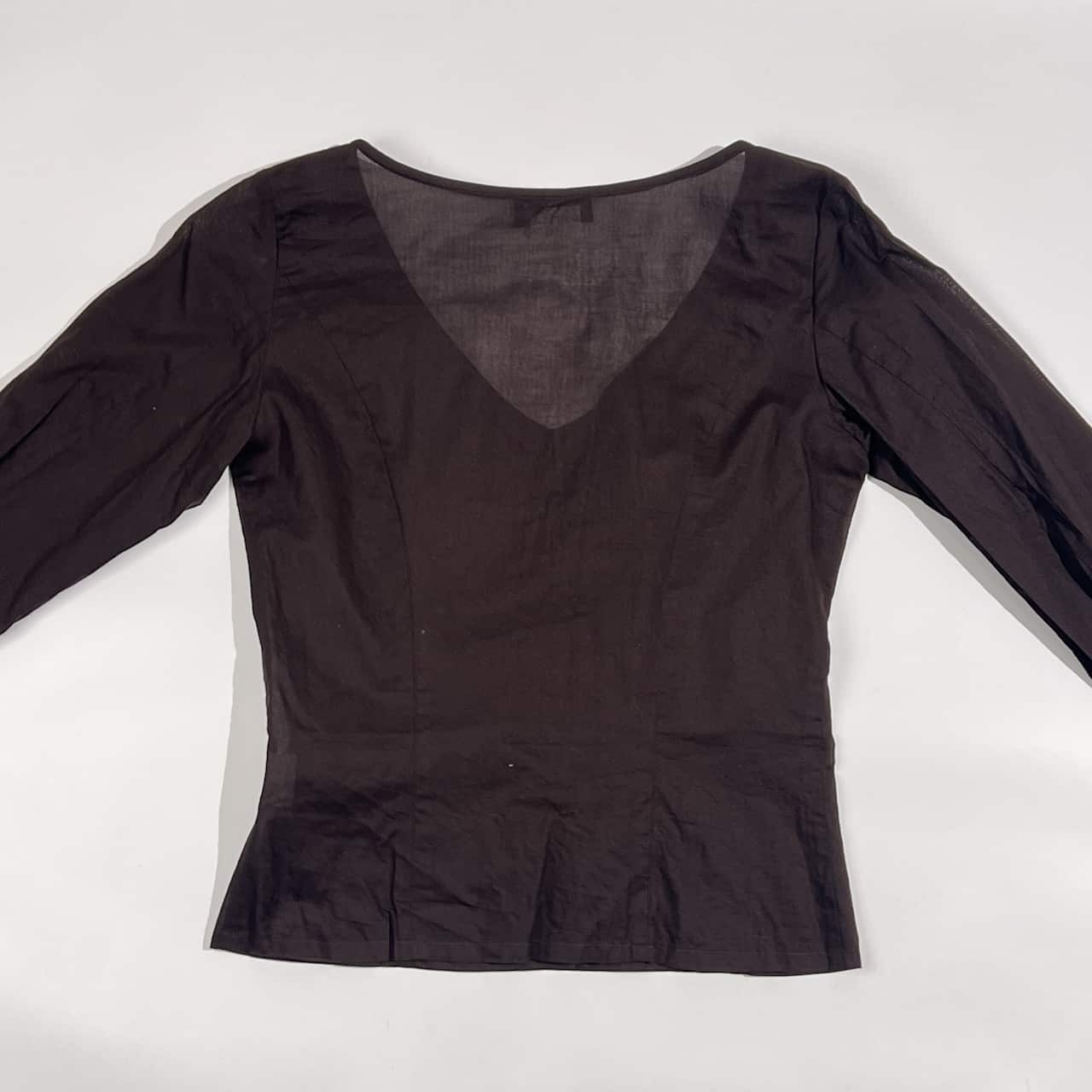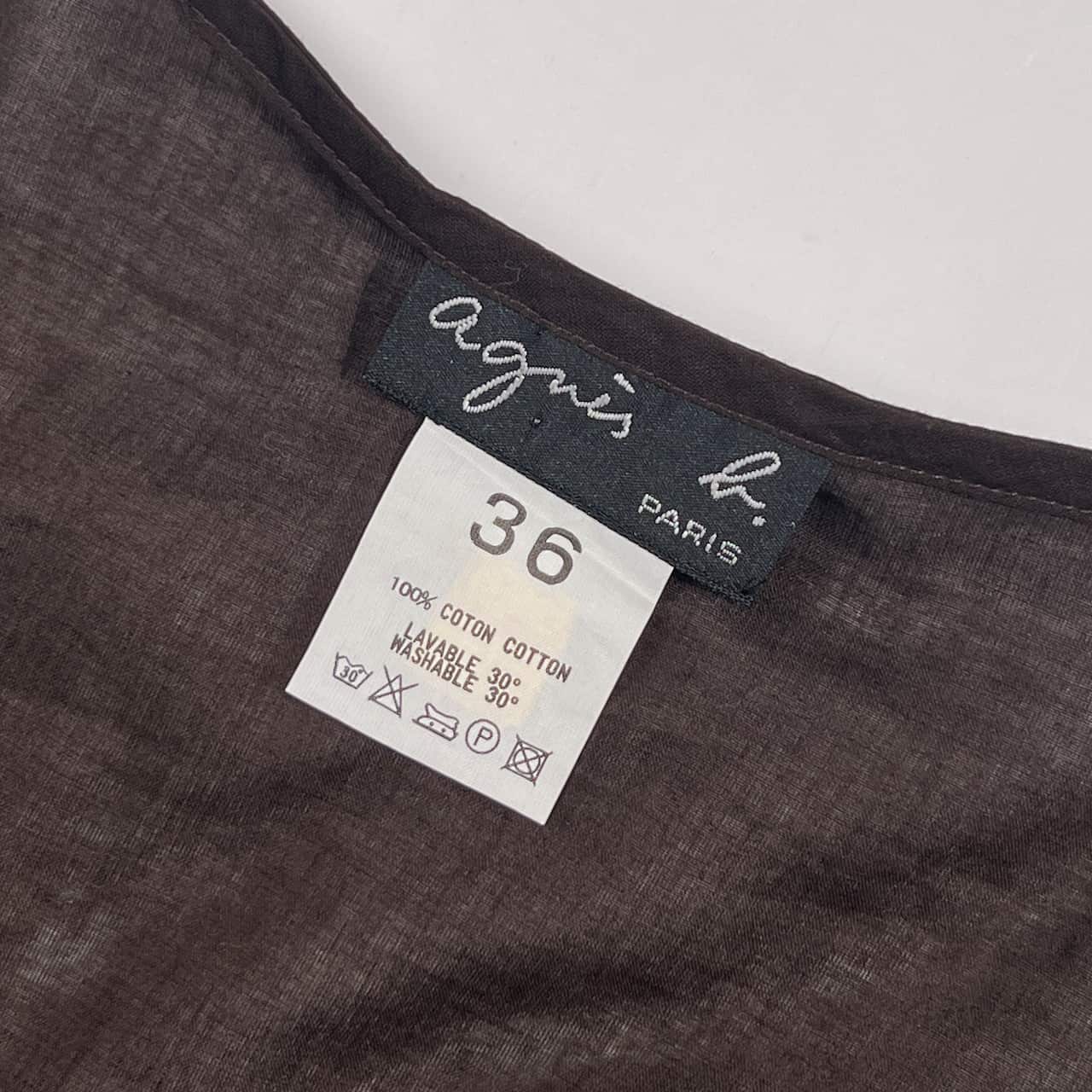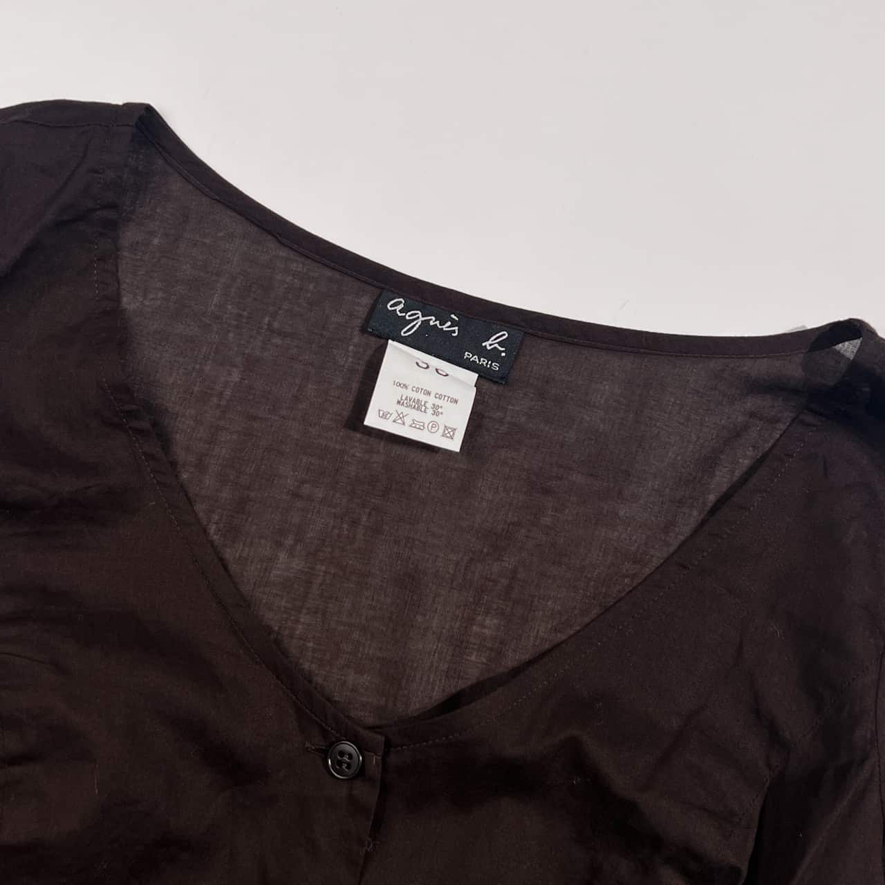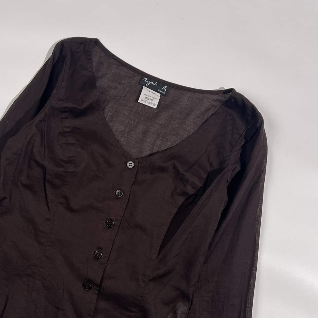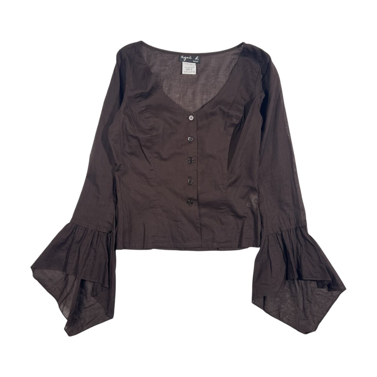 agnes b. アニエスベー フレアスリーブ シアー Vネック 長袖 ブラウス 36/ブラウン系 レディース
