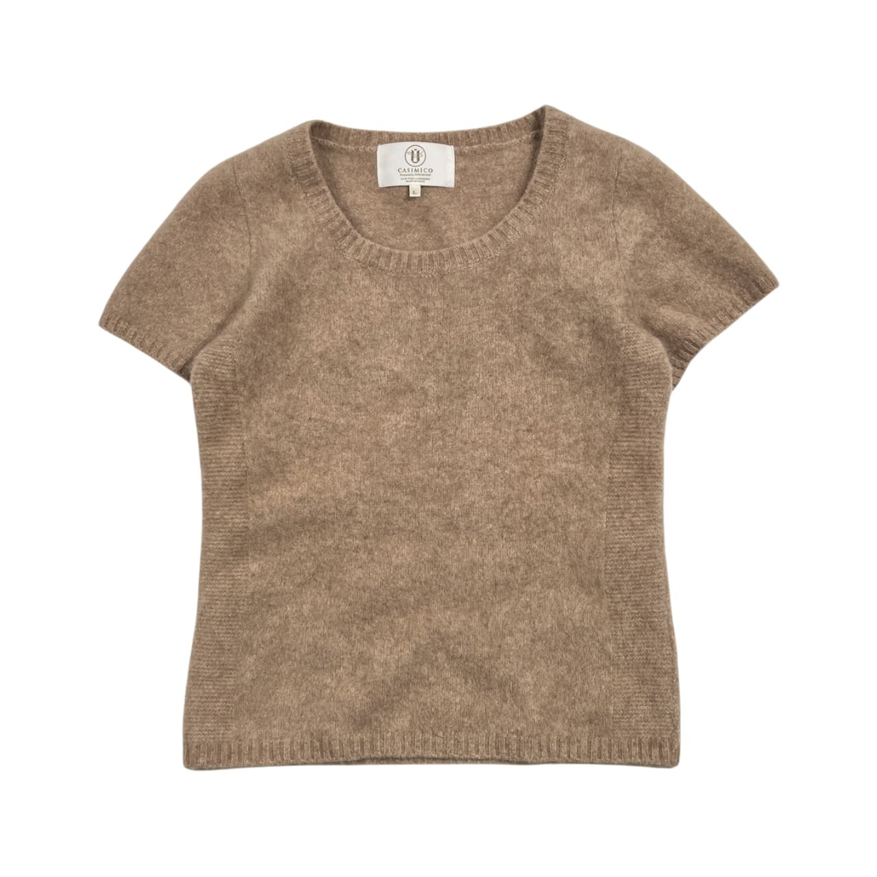 カシミヤ100% CASIMICO カシミコ 半袖 ジャギー ニット セーター L/ベージュ系 レディース