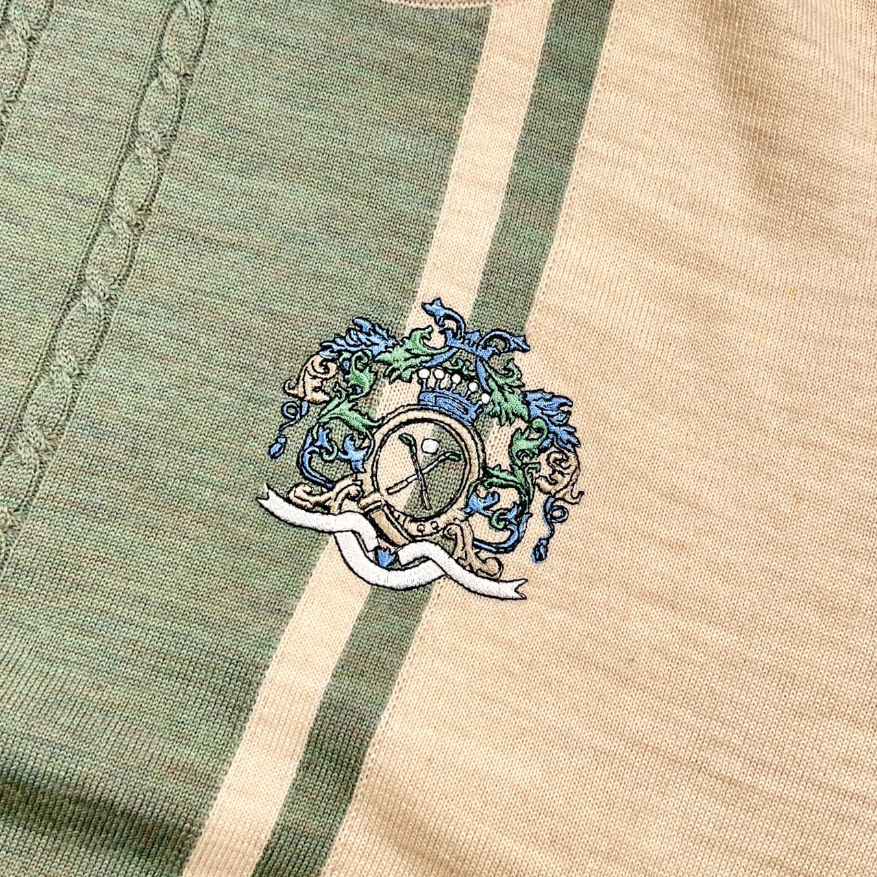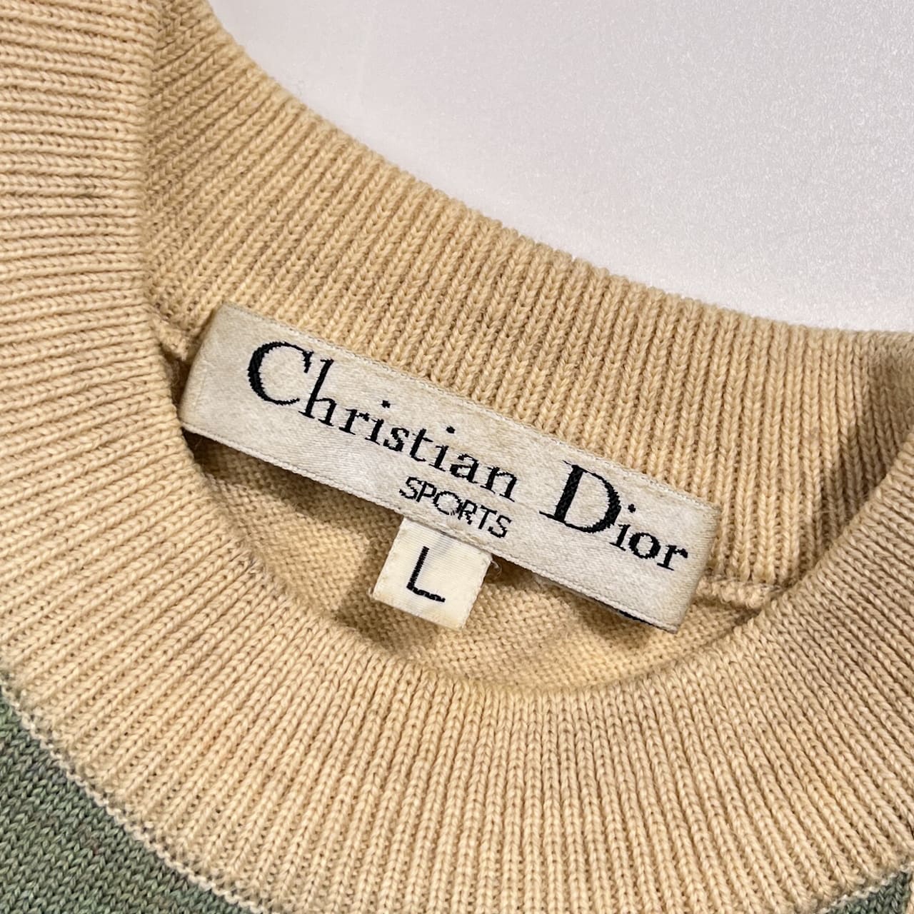 90s Christian Dior Sports クリスチャンディオール 刺繍 ケーブル編み ウール ニット セーター L/バイカラー レディース ゴルフ ビンテージ