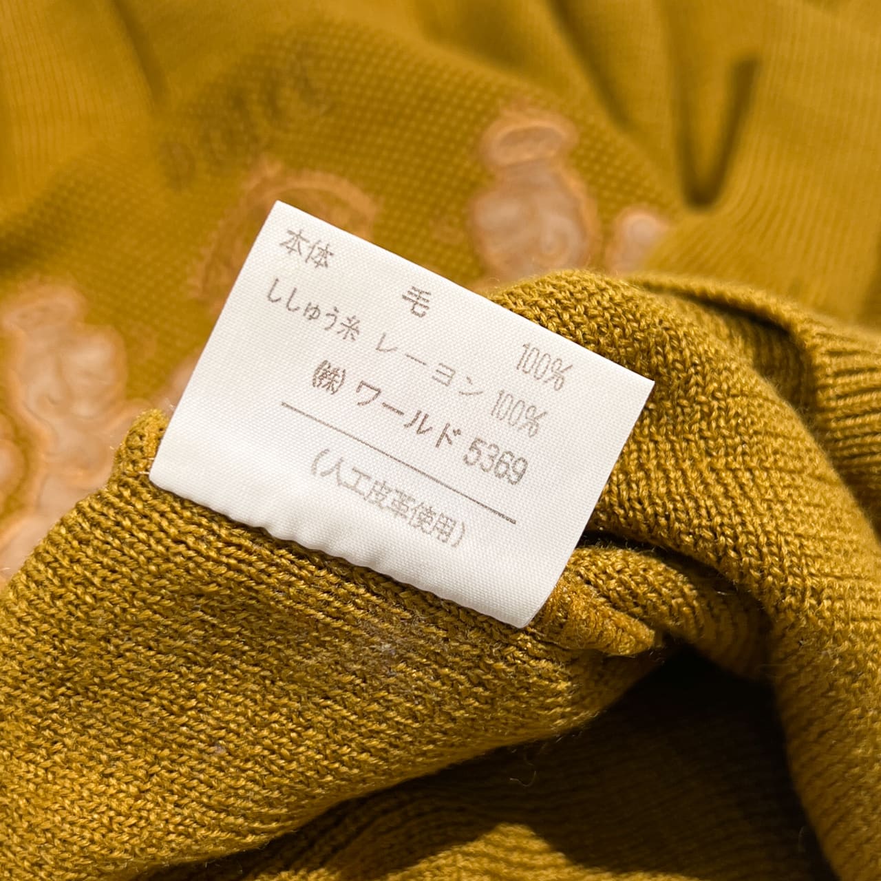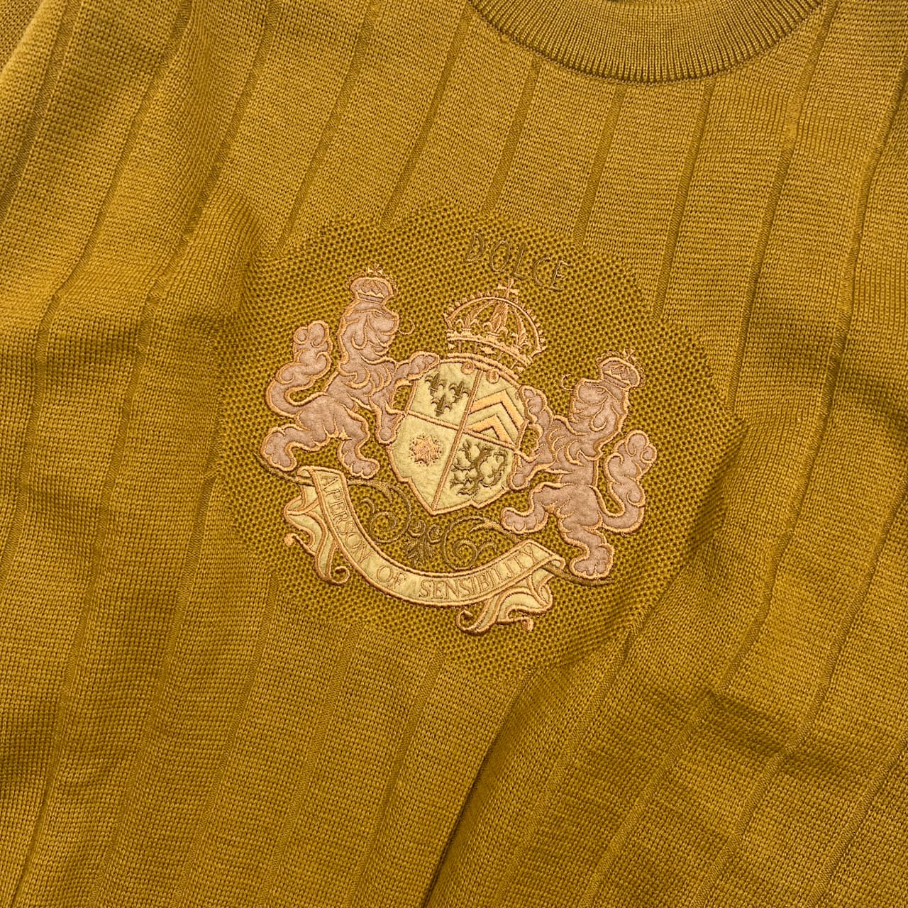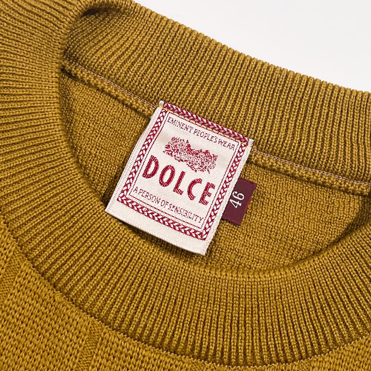 DOLCE ドルチェ エンブレム刺繍 リブ編み クルーネック ニット セーター 46/マスタード系 メンズ レトロ