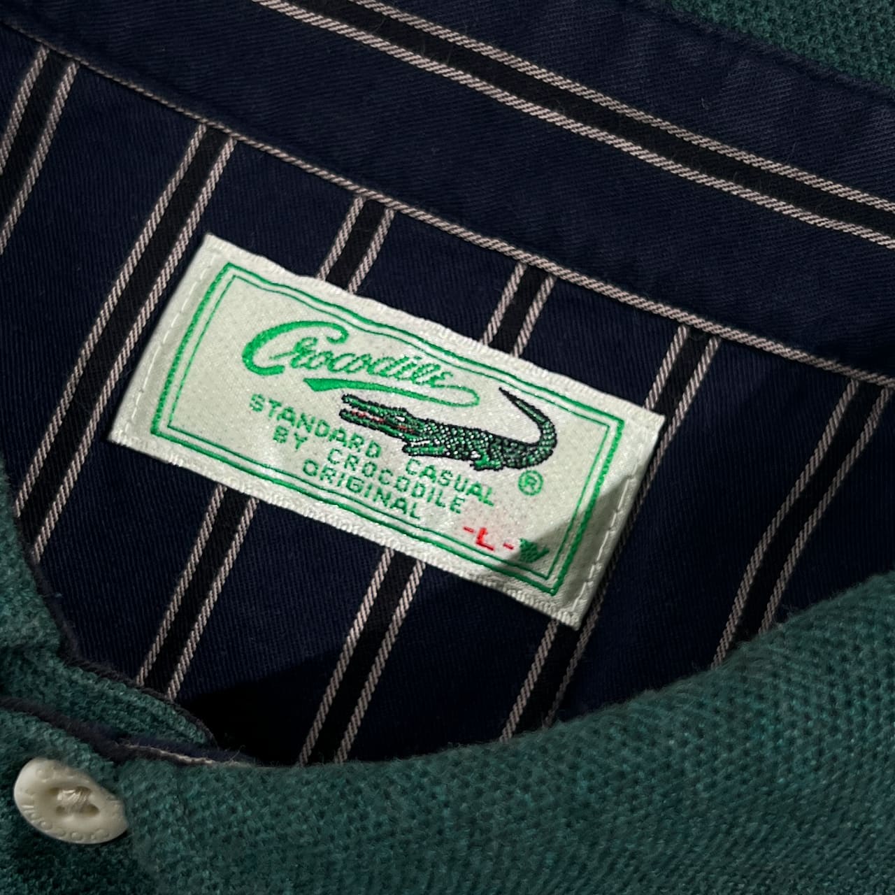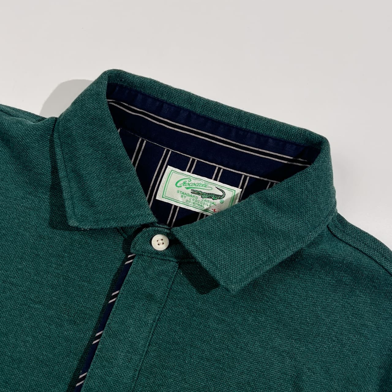 Crocodile クロコダイル 鹿の子 長袖 ポロシャツ L/ダークグリーン系 メンズ